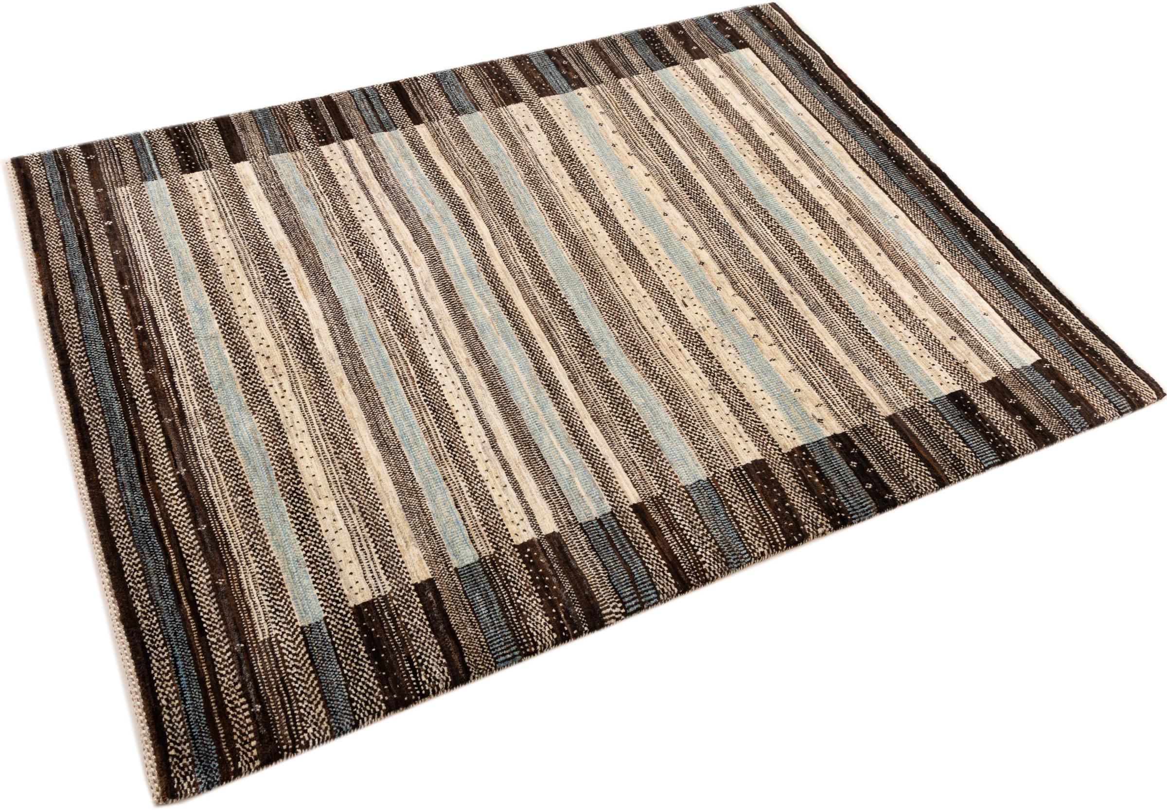 Ten piękny dywan jest perskim Gabbeh i dlatego należy do najwyższej jakości dywanów Gabbeh. Dywany są wiązane przez nomadów lub pół-nomadzi w Iranie zgodnie z tradycyjnym rzemiosłem. Proste motywy i wzory są w większości inspirowane bezpośrednim otoczeniem nomadów. Na przykład wielbłądy, drzewa lub krzewy można znaleźć na tradycyjnych dywanach. Perskie dywany Gabbeh wykonane są z wełny pochodzącej z lokalnie hodowanych stad owiec. Wełna jest więc w większości przypadków nadal obracana ręcznie. Tak więc każdy z tych orientalnych dywanów uosabia unikalny charakter wielowiekowej kultury.