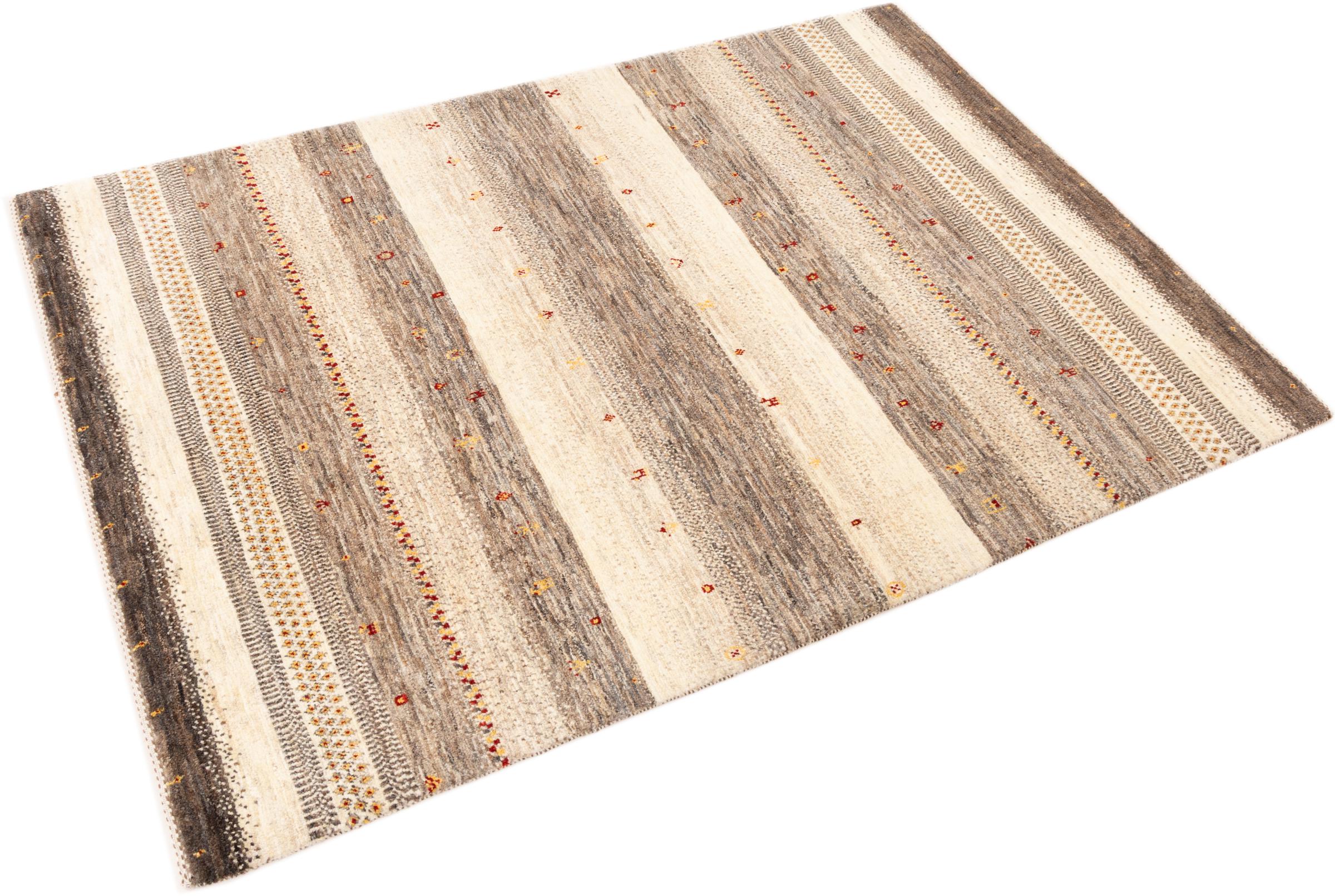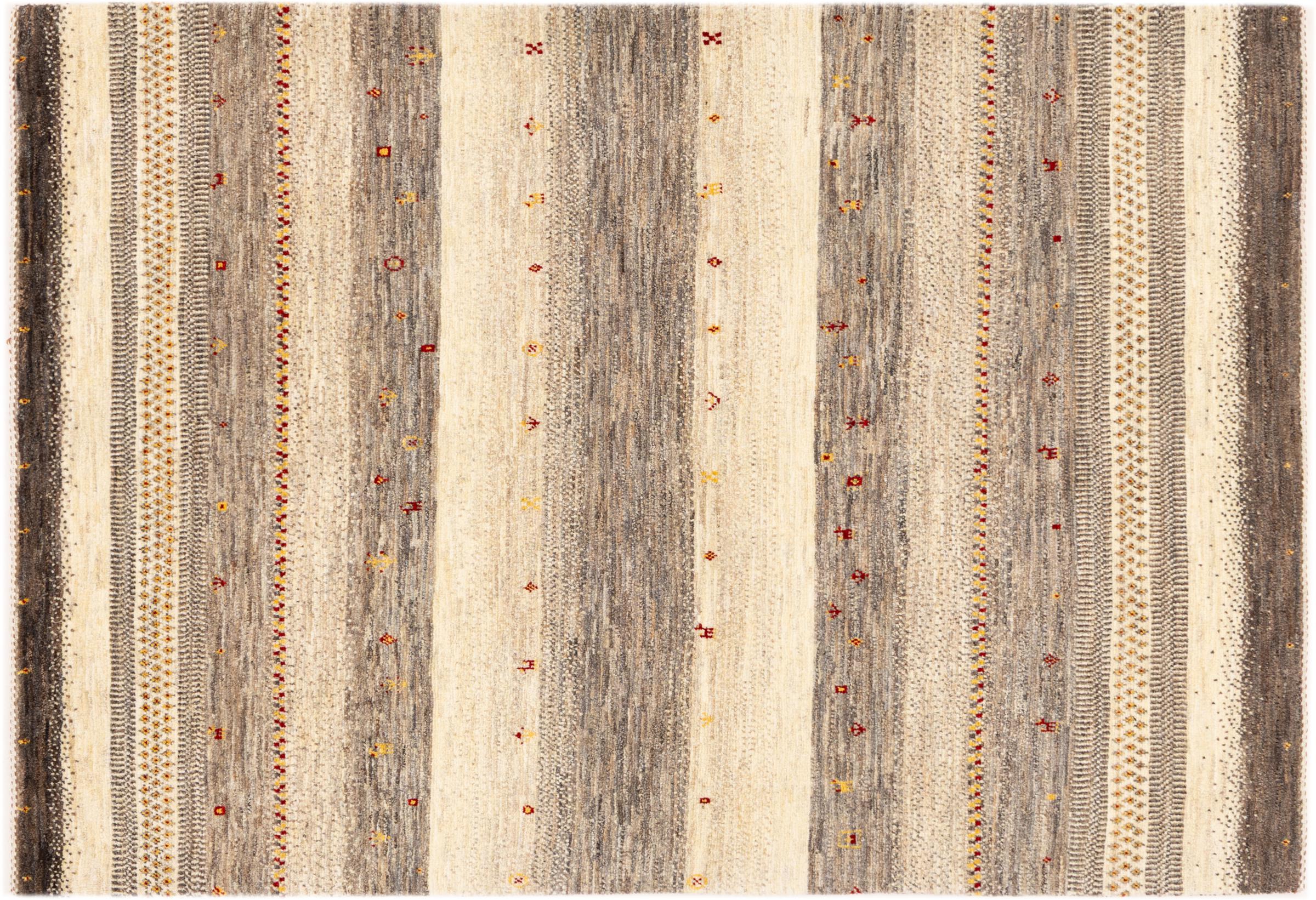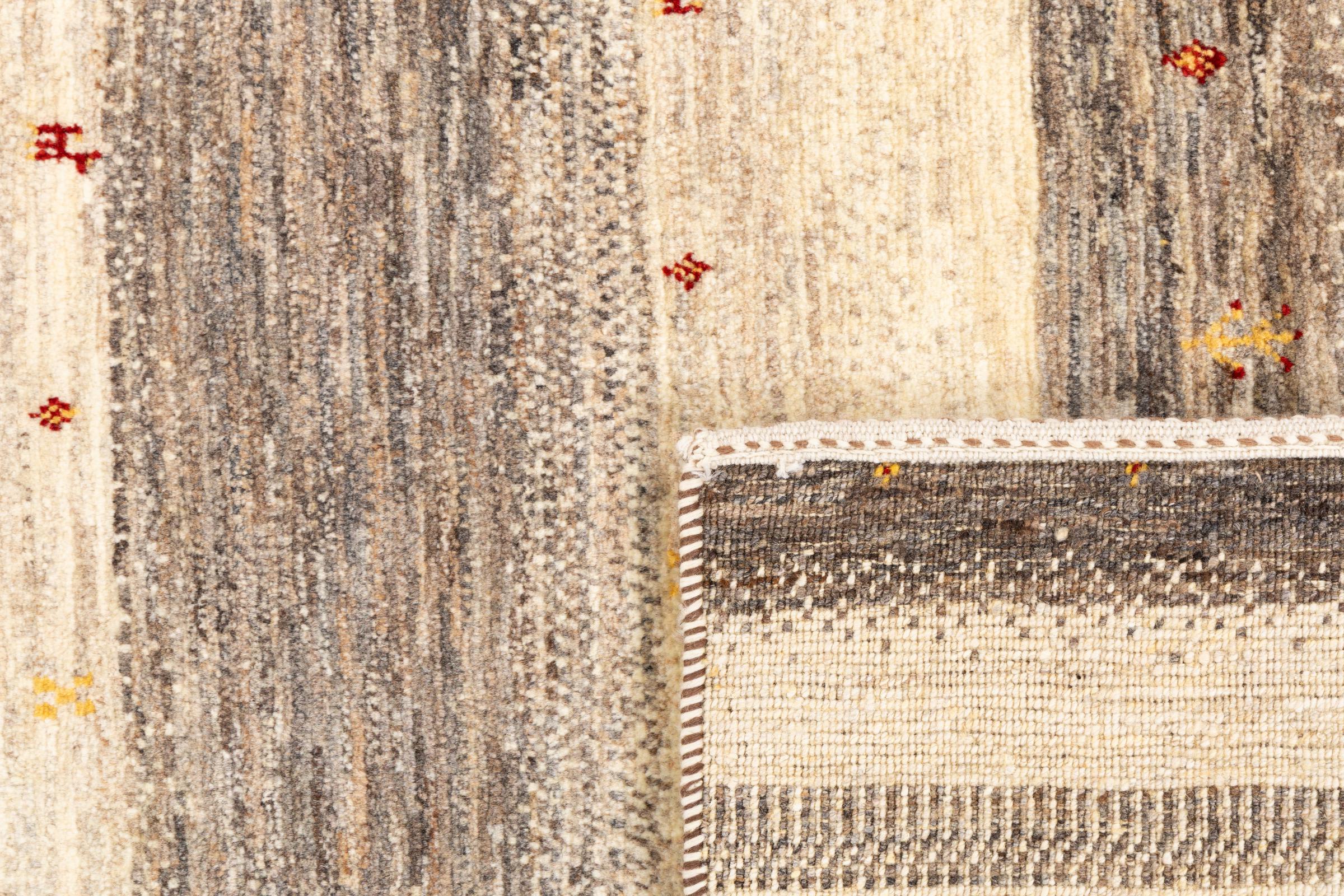 Ten piękny dywan jest perskim Gabbeh i dlatego należy do najwyższej jakości dywanów Gabbeh. Dywany są wiązane przez nomadów lub pół-nomadzi w Iranie zgodnie z tradycyjnym rzemiosłem. Proste motywy i wzory są w większości inspirowane bezpośrednim otoczeniem nomadów. Na przykład wielbłądy, drzewa lub krzewy można znaleźć na tradycyjnych dywanach. Perskie dywany Gabbeh wykonane są z wełny pochodzącej z lokalnie hodowanych stad owiec. Wełna jest więc w większości przypadków nadal obracana ręcznie. Tak więc każdy z tych orientalnych dywanów uosabia unikalny charakter wielowiekowej kultury.