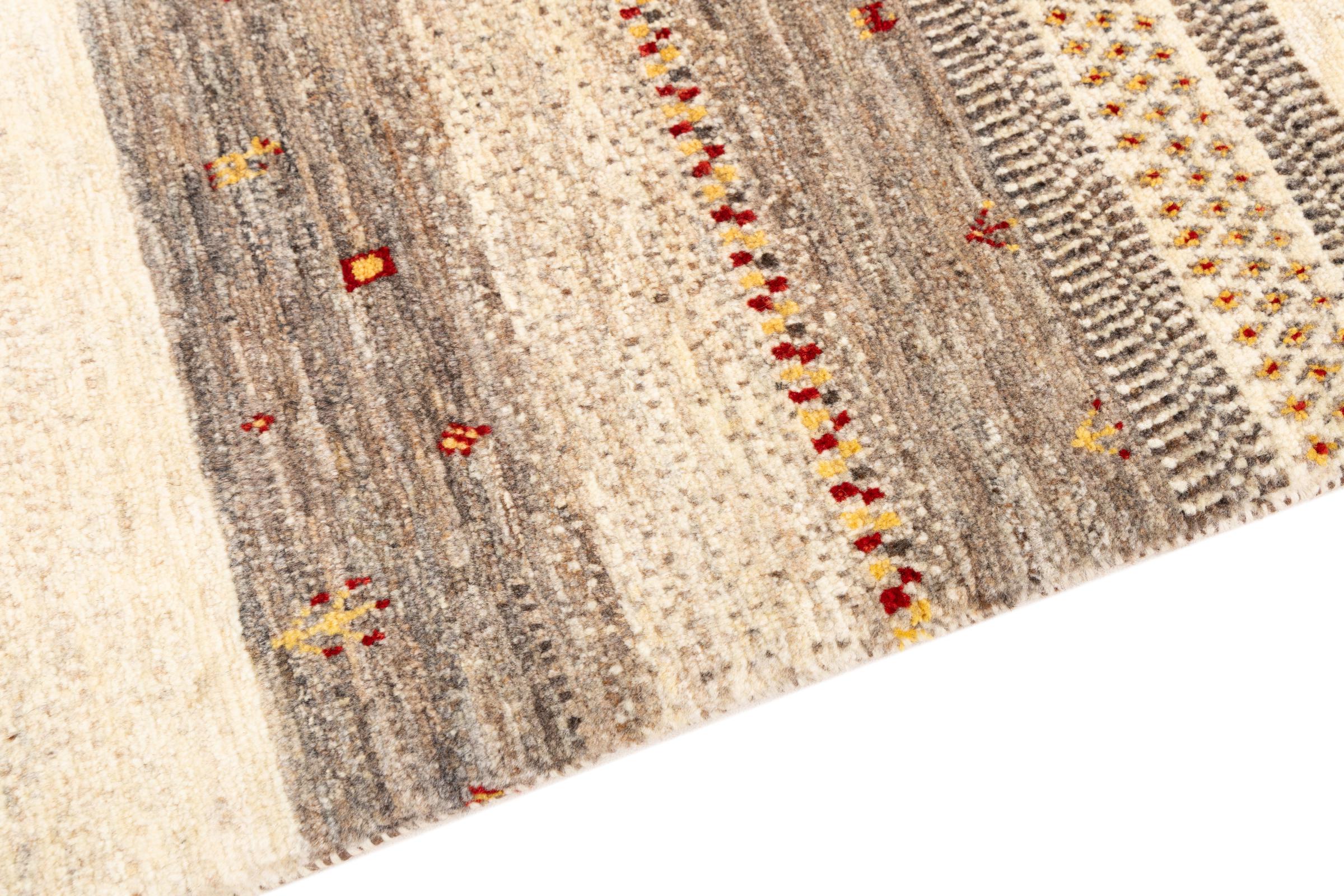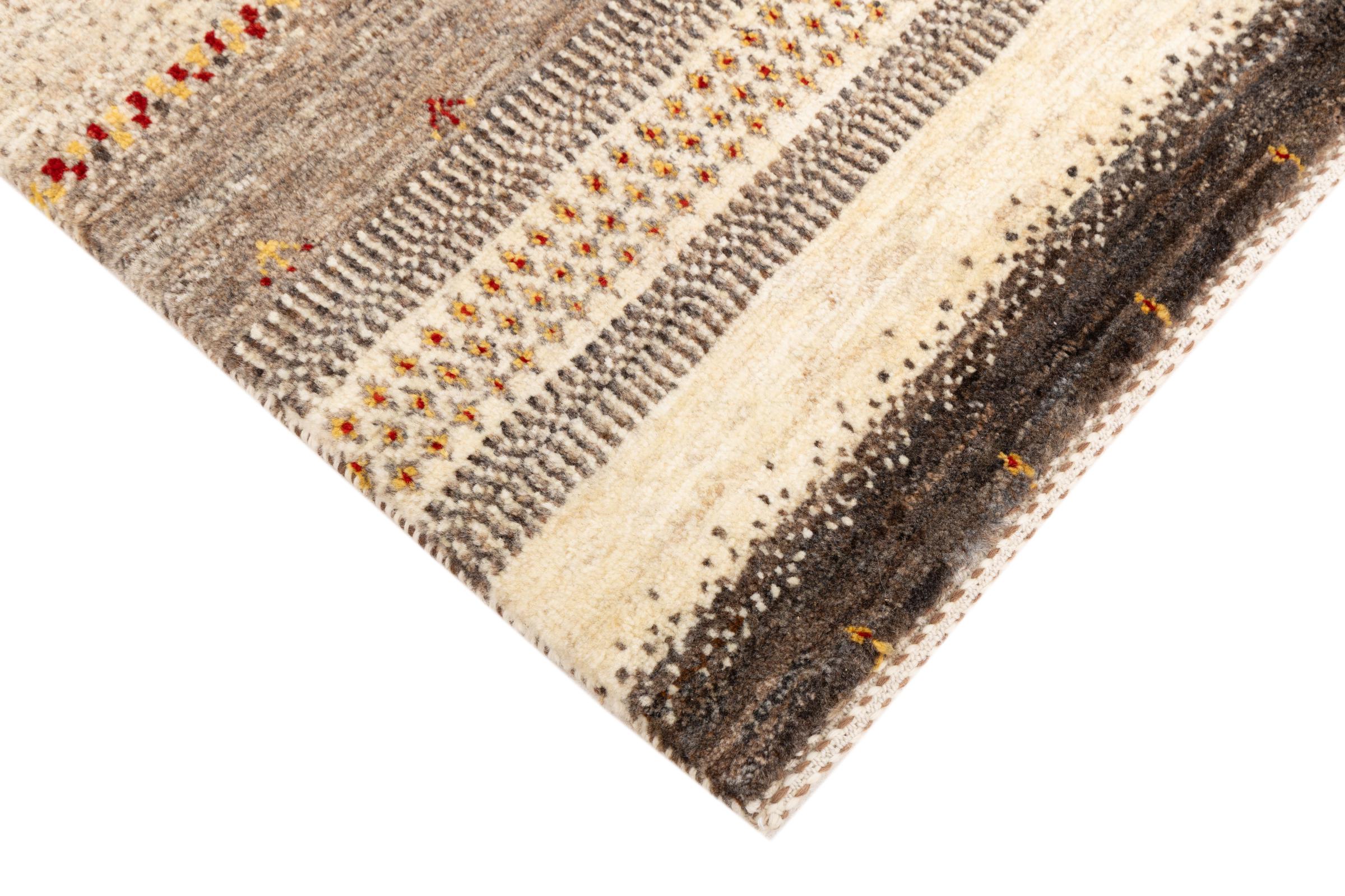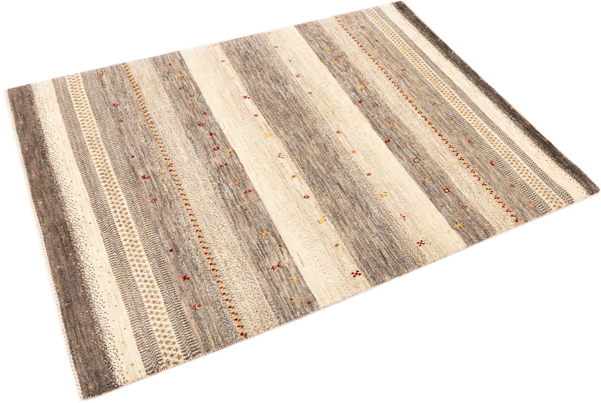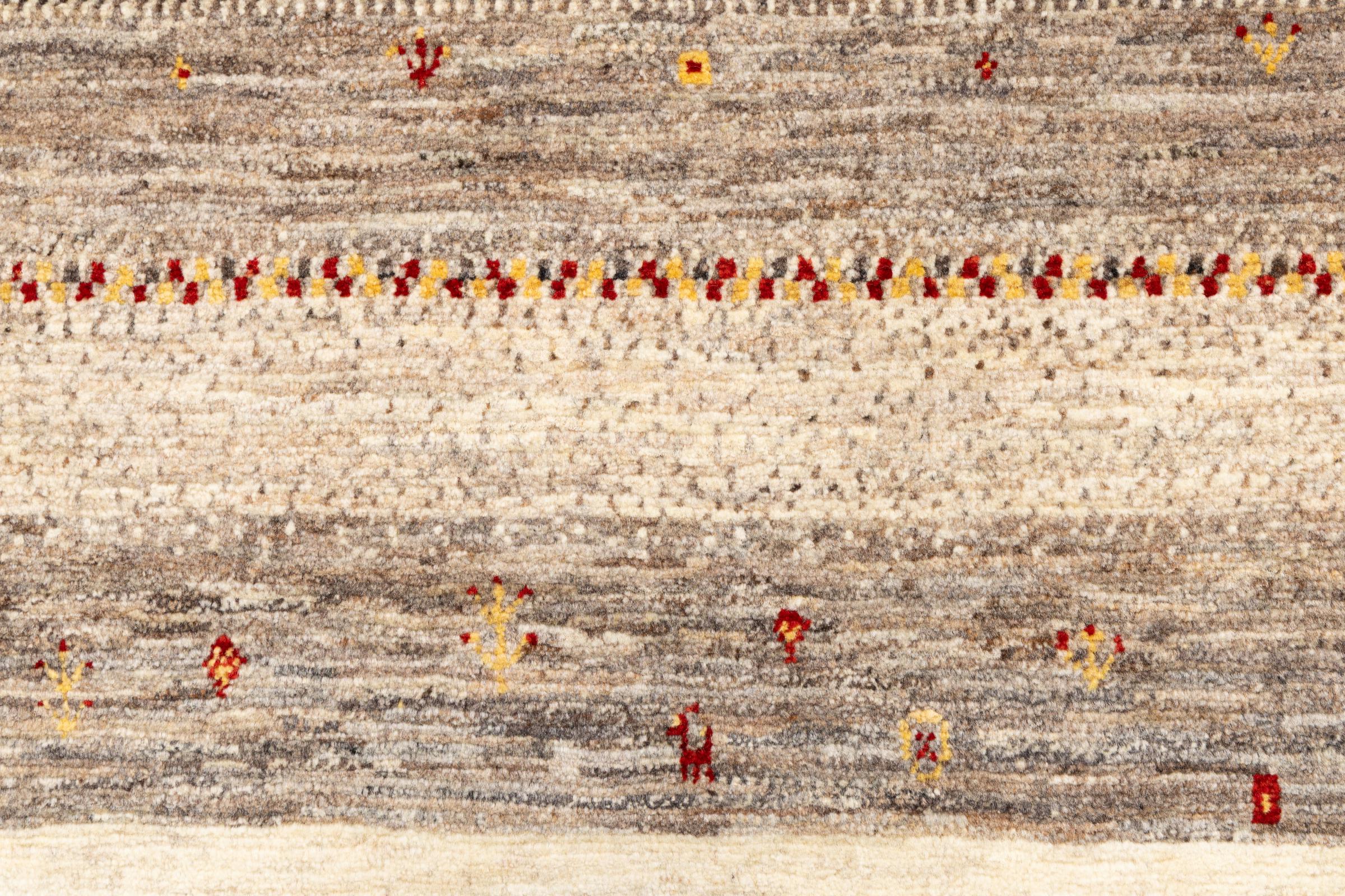 Ten piękny dywan jest perskim Gabbeh i dlatego należy do najwyższej jakości dywanów Gabbeh. Dywany są wiązane przez nomadów lub pół-nomadzi w Iranie zgodnie z tradycyjnym rzemiosłem. Proste motywy i wzory są w większości inspirowane bezpośrednim otoczeniem nomadów. Na przykład wielbłądy, drzewa lub krzewy można znaleźć na tradycyjnych dywanach. Perskie dywany Gabbeh wykonane są z wełny pochodzącej z lokalnie hodowanych stad owiec. Wełna jest więc w większości przypadków nadal obracana ręcznie. Tak więc każdy z tych orientalnych dywanów uosabia unikalny charakter wielowiekowej kultury.