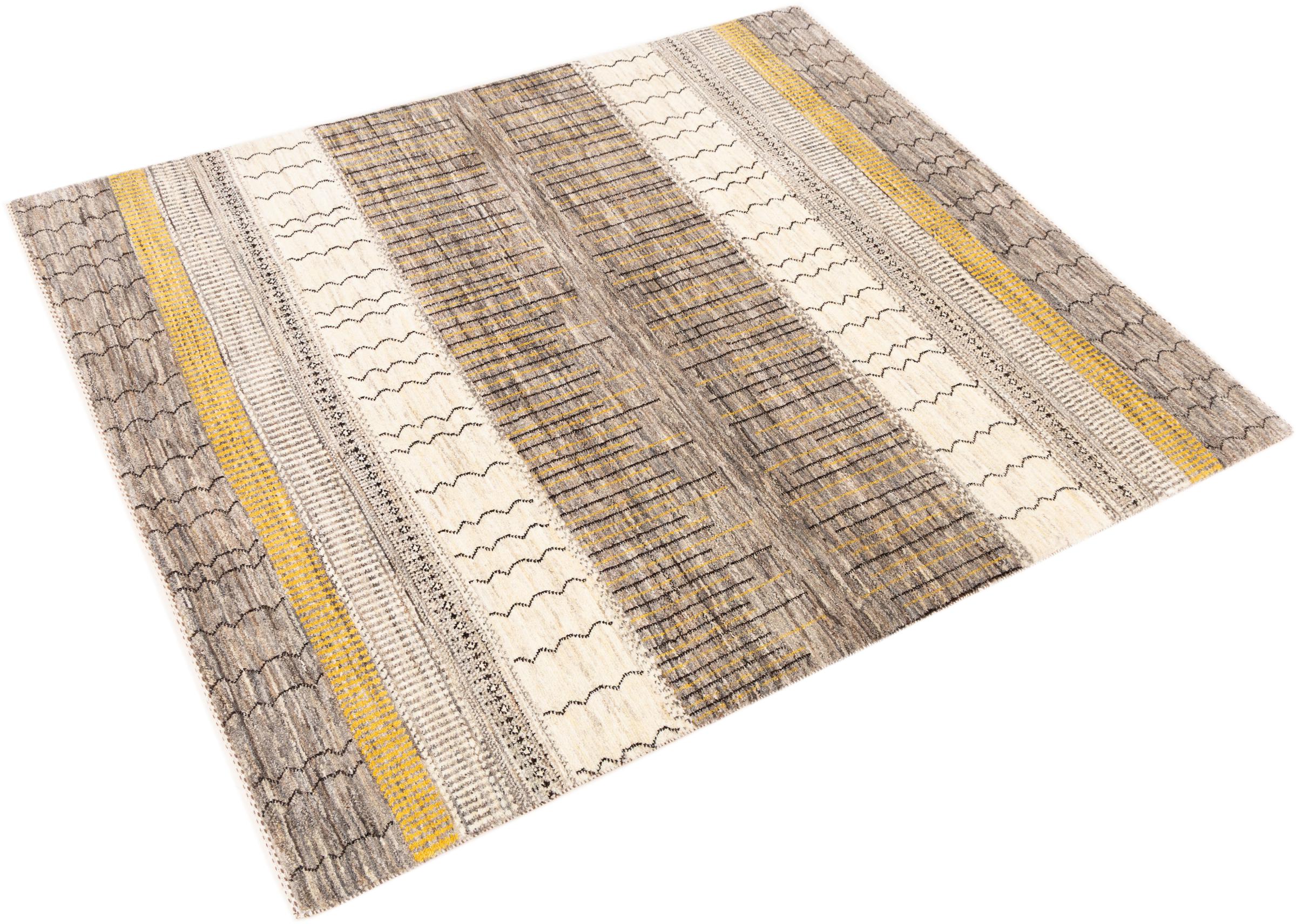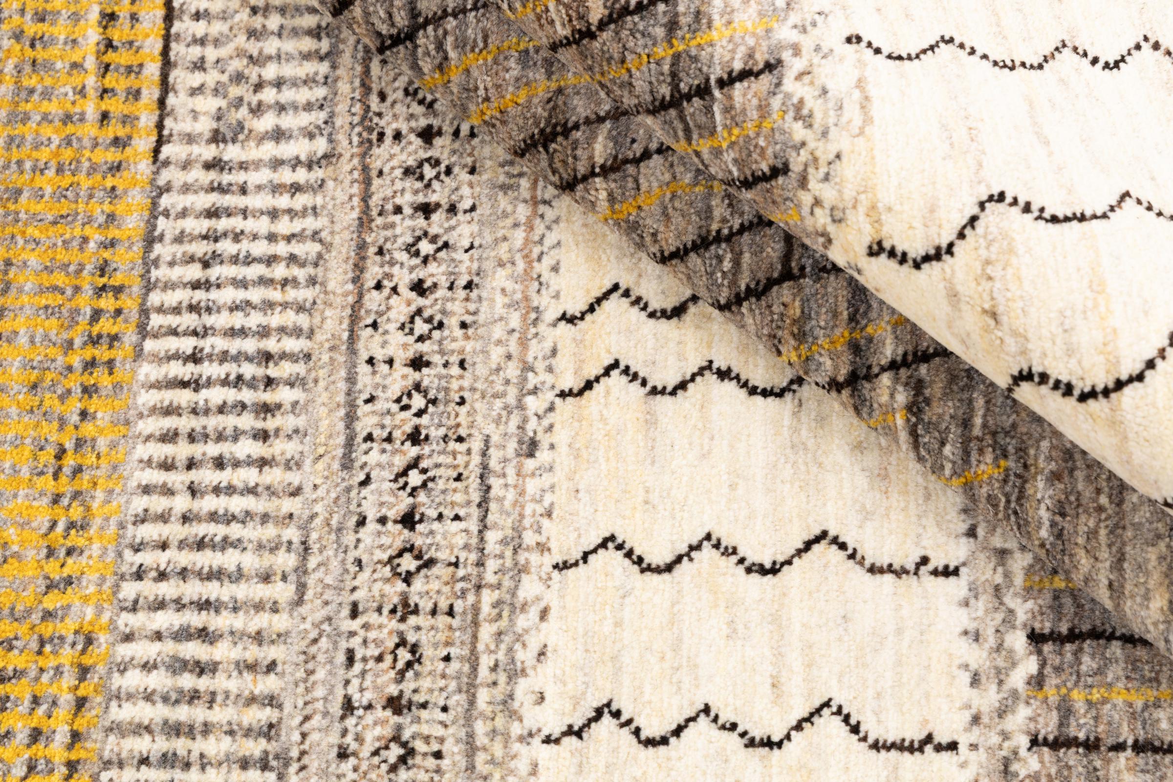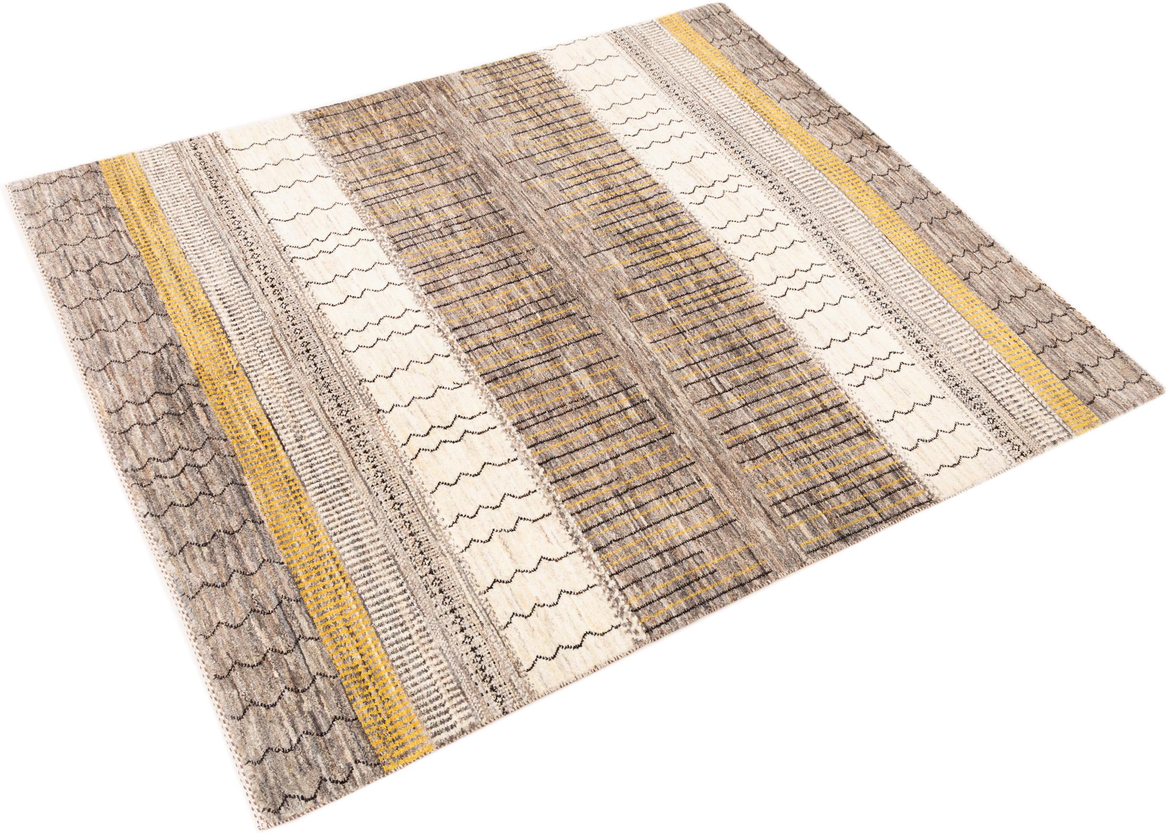 Ten piękny dywan jest perskim Gabbeh i dlatego należy do najwyższej jakości dywanów Gabbeh. Dywany są wiązane przez nomadów lub pół-nomadzi w Iranie zgodnie z tradycyjnym rzemiosłem. Proste motywy i wzory są w większości inspirowane bezpośrednim otoczeniem nomadów. Na przykład wielbłądy, drzewa lub krzewy można znaleźć na tradycyjnych dywanach. Perskie dywany Gabbeh wykonane są z wełny pochodzącej z lokalnie hodowanych stad owiec. Wełna jest więc w większości przypadków nadal obracana ręcznie. Tak więc każdy z tych orientalnych dywanów uosabia unikalny charakter wielowiekowej kultury.