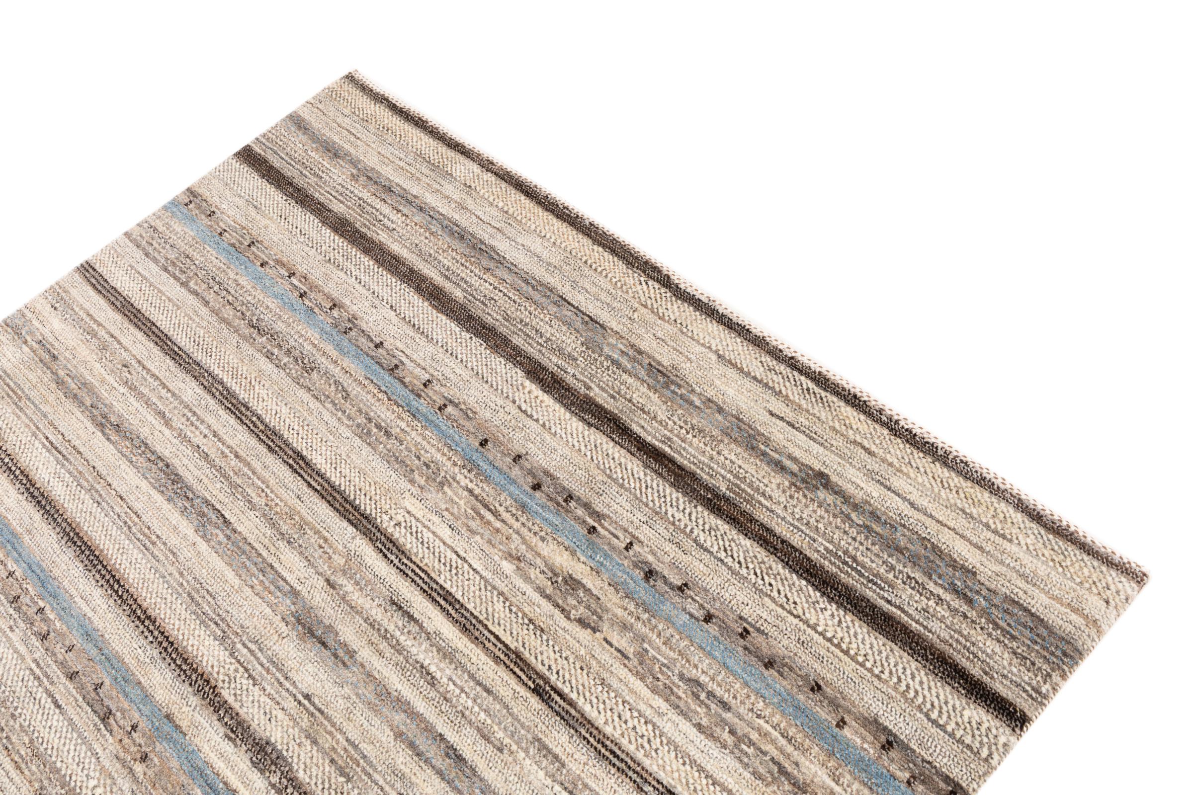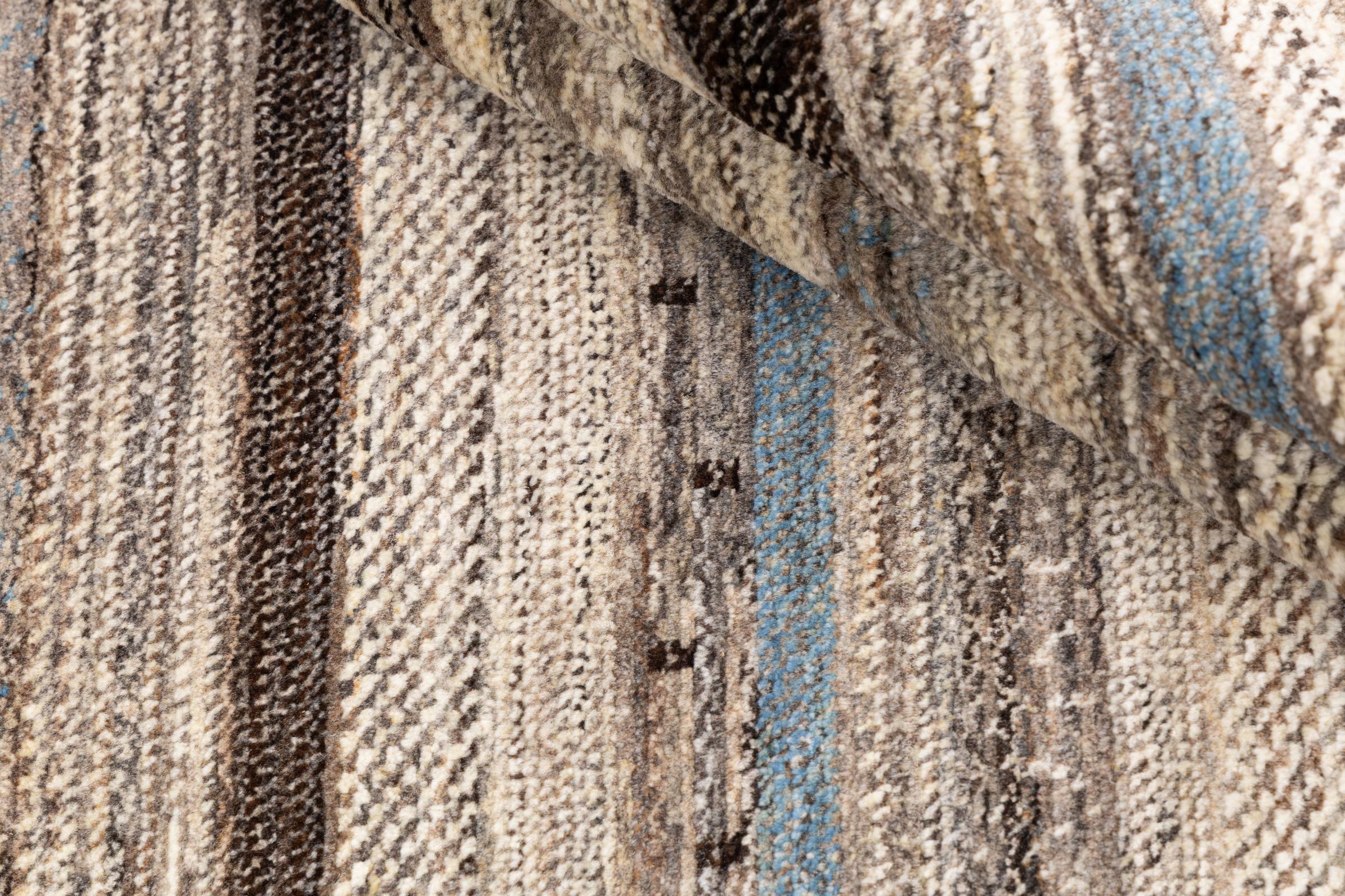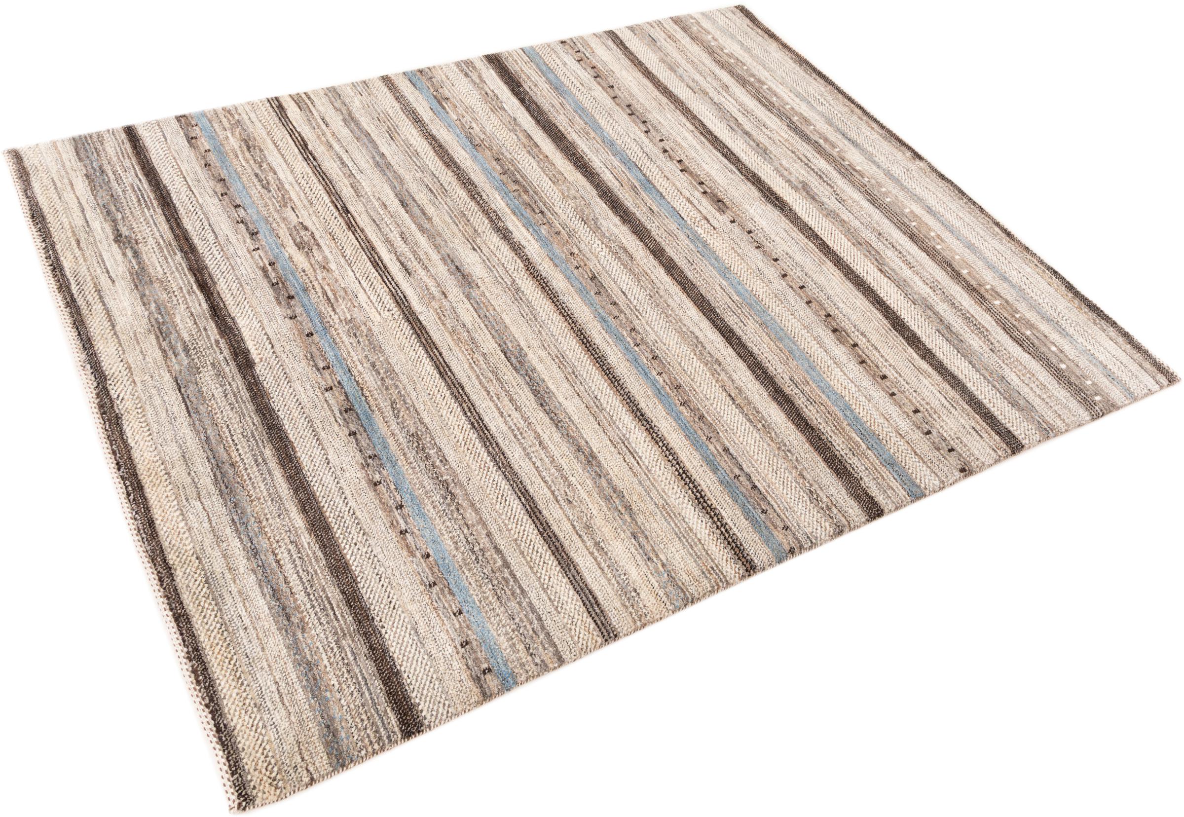 Ten piękny dywan jest perskim Gabbeh i dlatego należy do najwyższej jakości dywanów Gabbeh. Dywany są wiązane przez nomadów lub pół-nomadzi w Iranie zgodnie z tradycyjnym rzemiosłem. Proste motywy i wzory są w większości inspirowane bezpośrednim otoczeniem nomadów. Na przykład wielbłądy, drzewa lub krzewy można znaleźć na tradycyjnych dywanach. Perskie dywany Gabbeh wykonane są z wełny pochodzącej z lokalnie hodowanych stad owiec. Wełna jest więc w większości przypadków nadal obracana ręcznie. Tak więc każdy z tych orientalnych dywanów uosabia unikalny charakter wielowiekowej kultury.