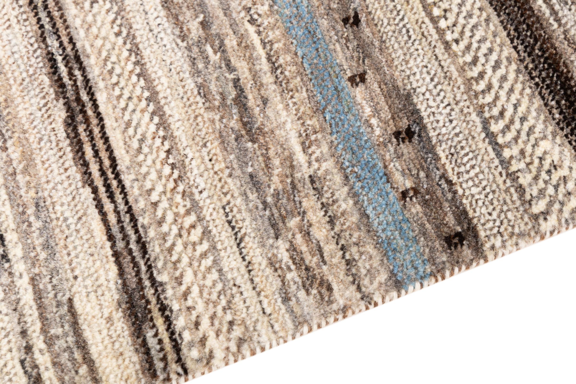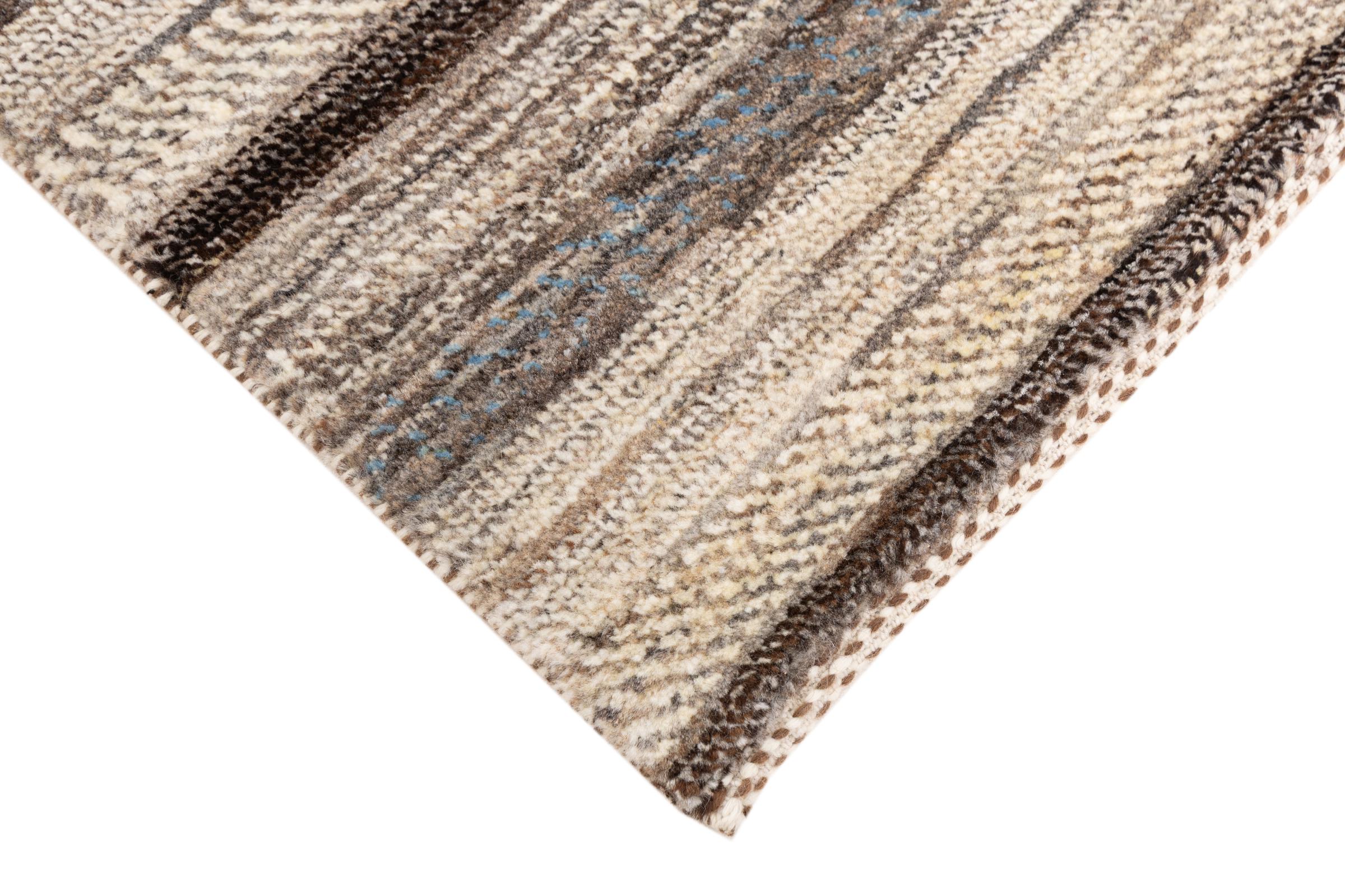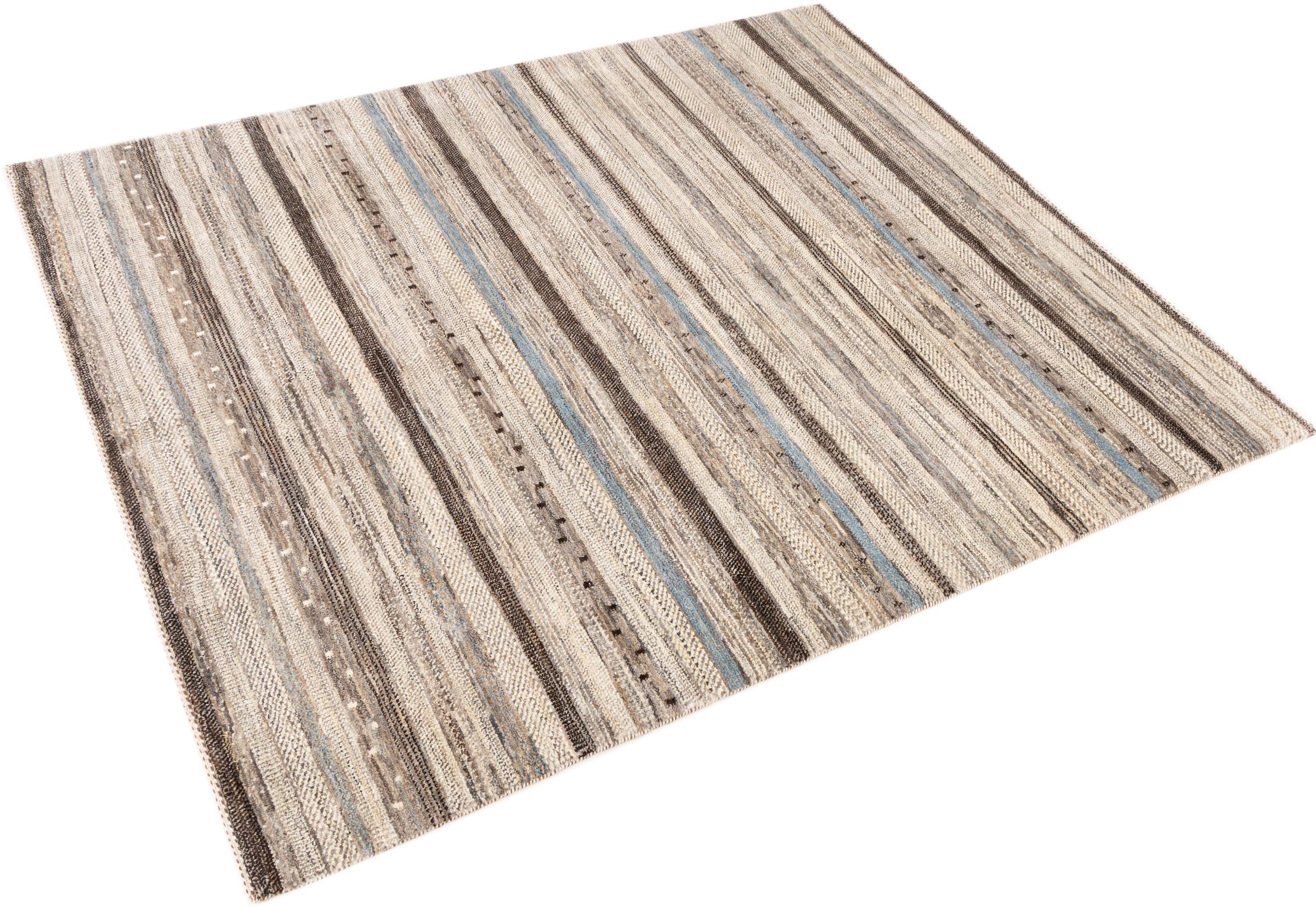 Ten piękny dywan jest perskim Gabbeh i dlatego należy do najwyższej jakości dywanów Gabbeh. Dywany są wiązane przez nomadów lub pół-nomadzi w Iranie zgodnie z tradycyjnym rzemiosłem. Proste motywy i wzory są w większości inspirowane bezpośrednim otoczeniem nomadów. Na przykład wielbłądy, drzewa lub krzewy można znaleźć na tradycyjnych dywanach. Perskie dywany Gabbeh wykonane są z wełny pochodzącej z lokalnie hodowanych stad owiec. Wełna jest więc w większości przypadków nadal obracana ręcznie. Tak więc każdy z tych orientalnych dywanów uosabia unikalny charakter wielowiekowej kultury.