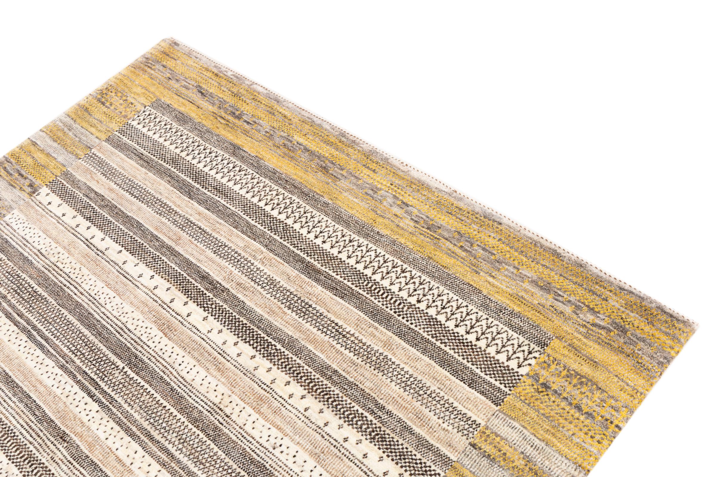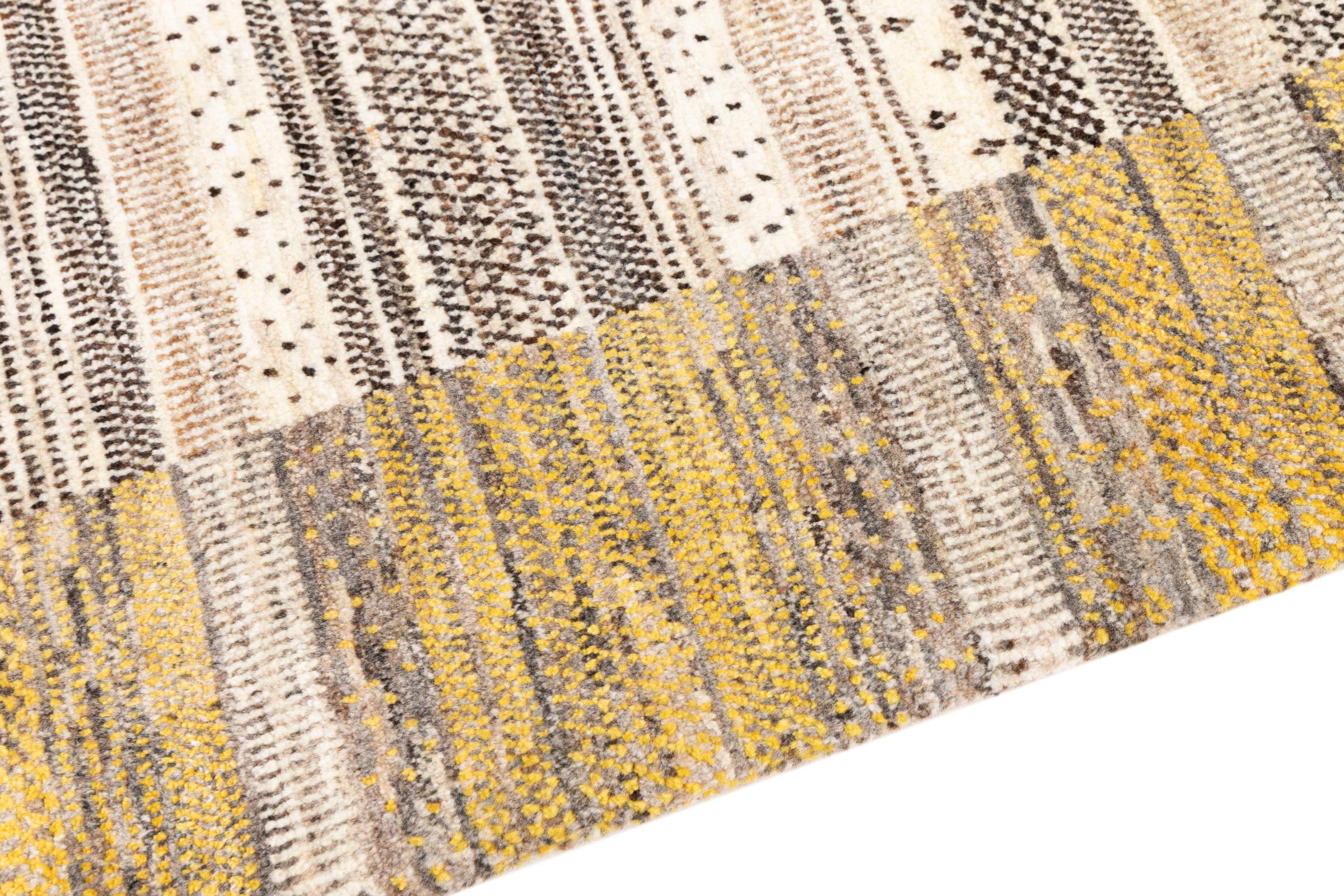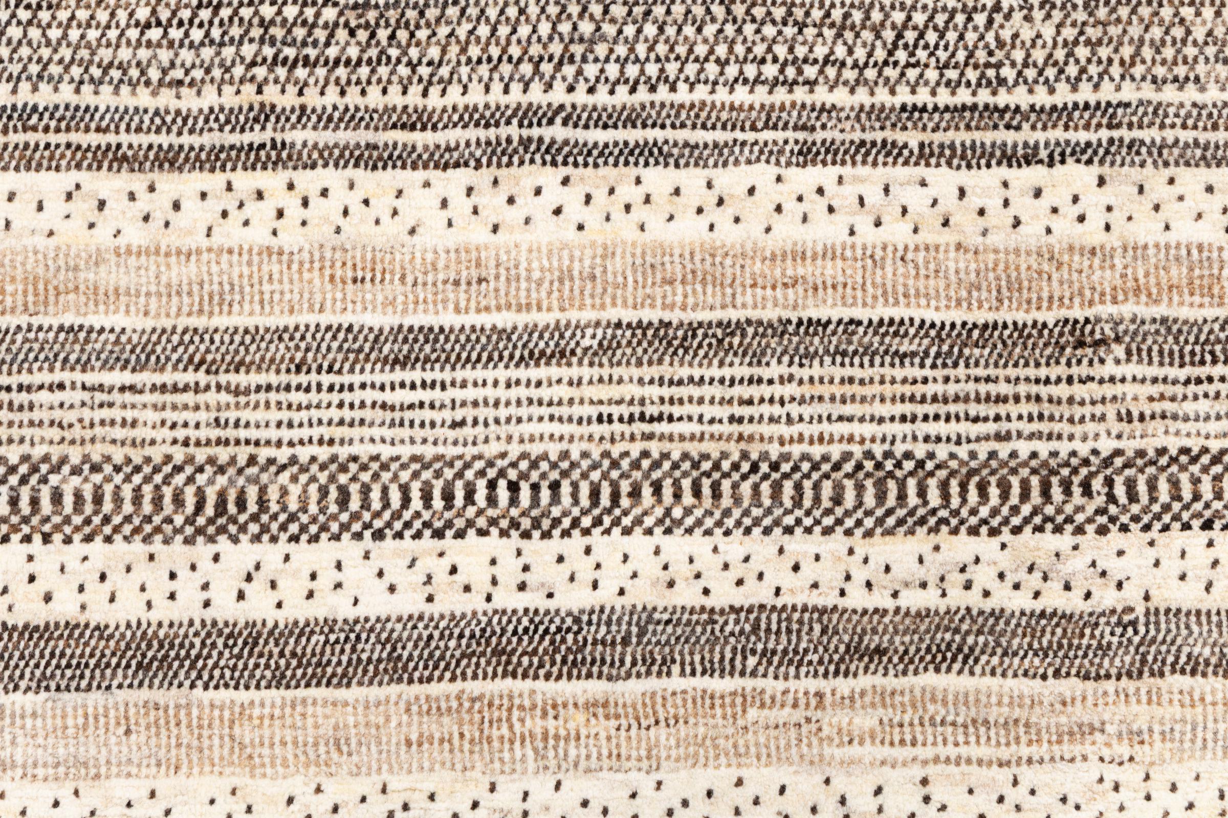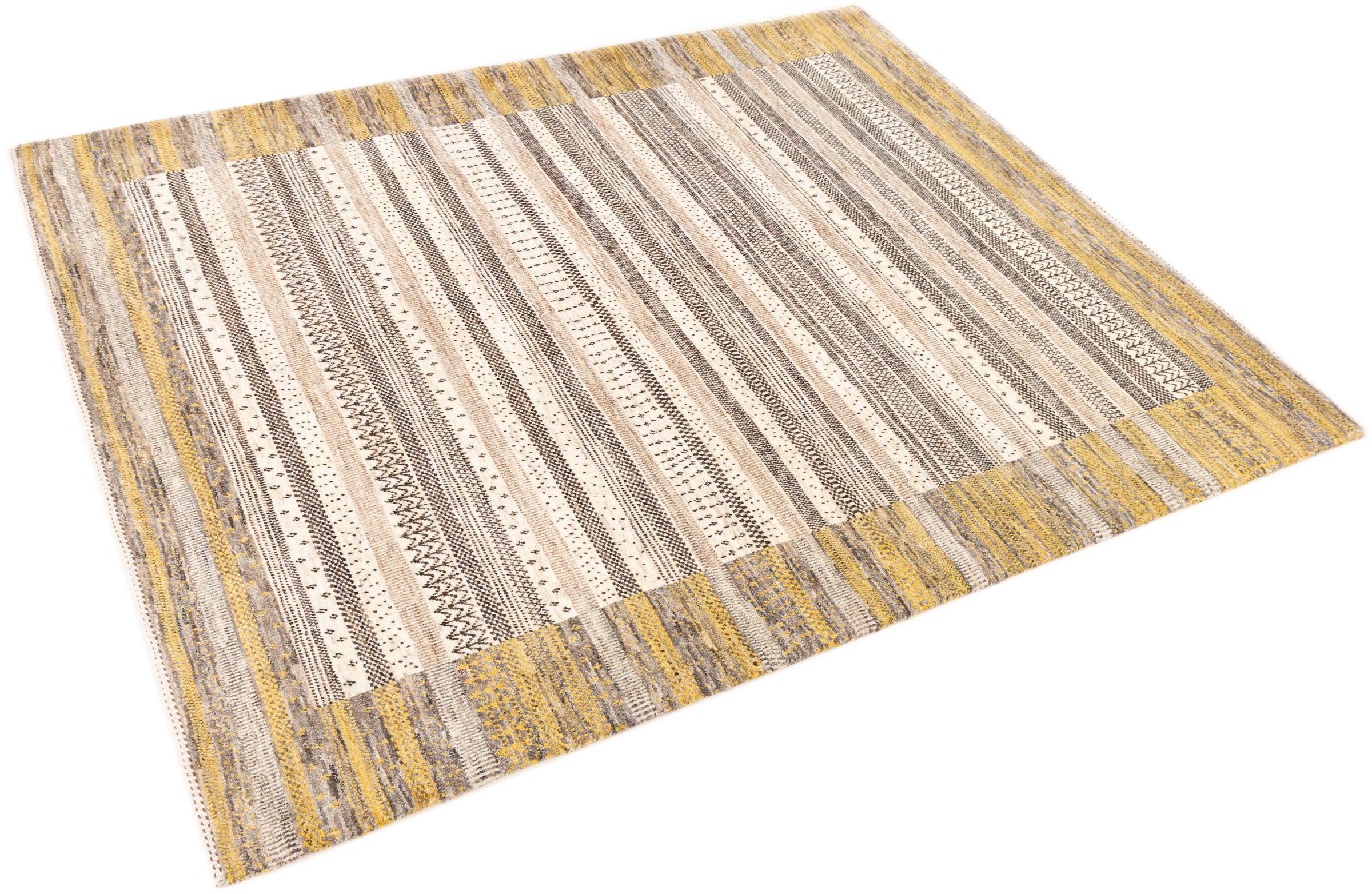 Ten piękny dywan jest perskim Gabbeh i dlatego należy do najwyższej jakości dywanów Gabbeh. Dywany są wiązane przez nomadów lub pół-nomadzi w Iranie zgodnie z tradycyjnym rzemiosłem. Proste motywy i wzory są w większości inspirowane bezpośrednim otoczeniem nomadów. Na przykład wielbłądy, drzewa lub krzewy można znaleźć na tradycyjnych dywanach. Perskie dywany Gabbeh wykonane są z wełny pochodzącej z lokalnie hodowanych stad owiec. Wełna jest więc w większości przypadków nadal obracana ręcznie. Tak więc każdy z tych orientalnych dywanów uosabia unikalny charakter wielowiekowej kultury.