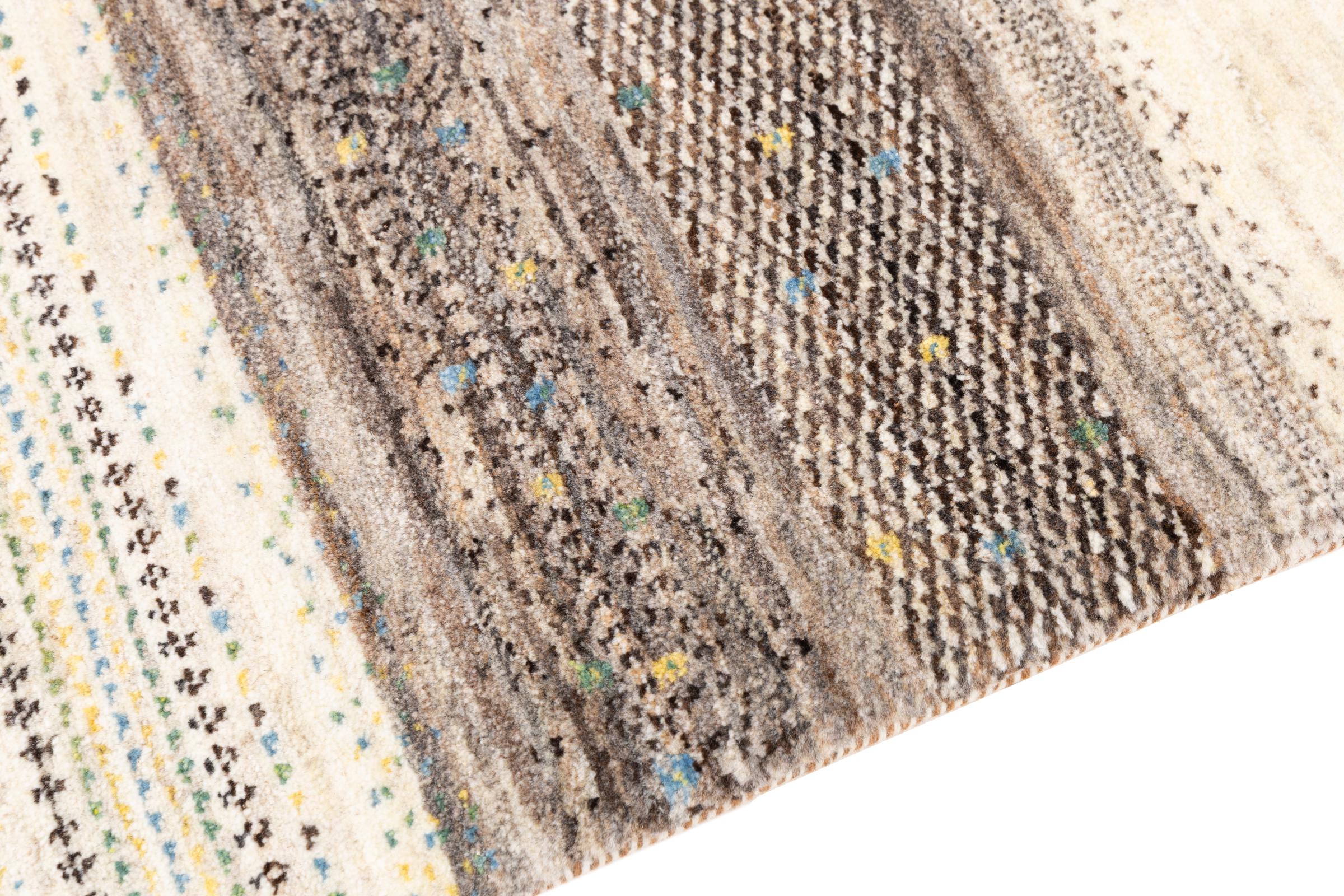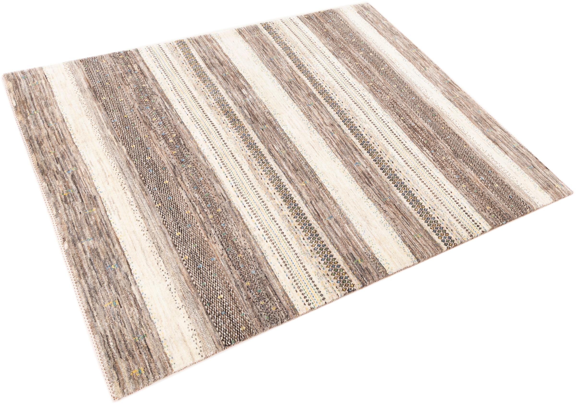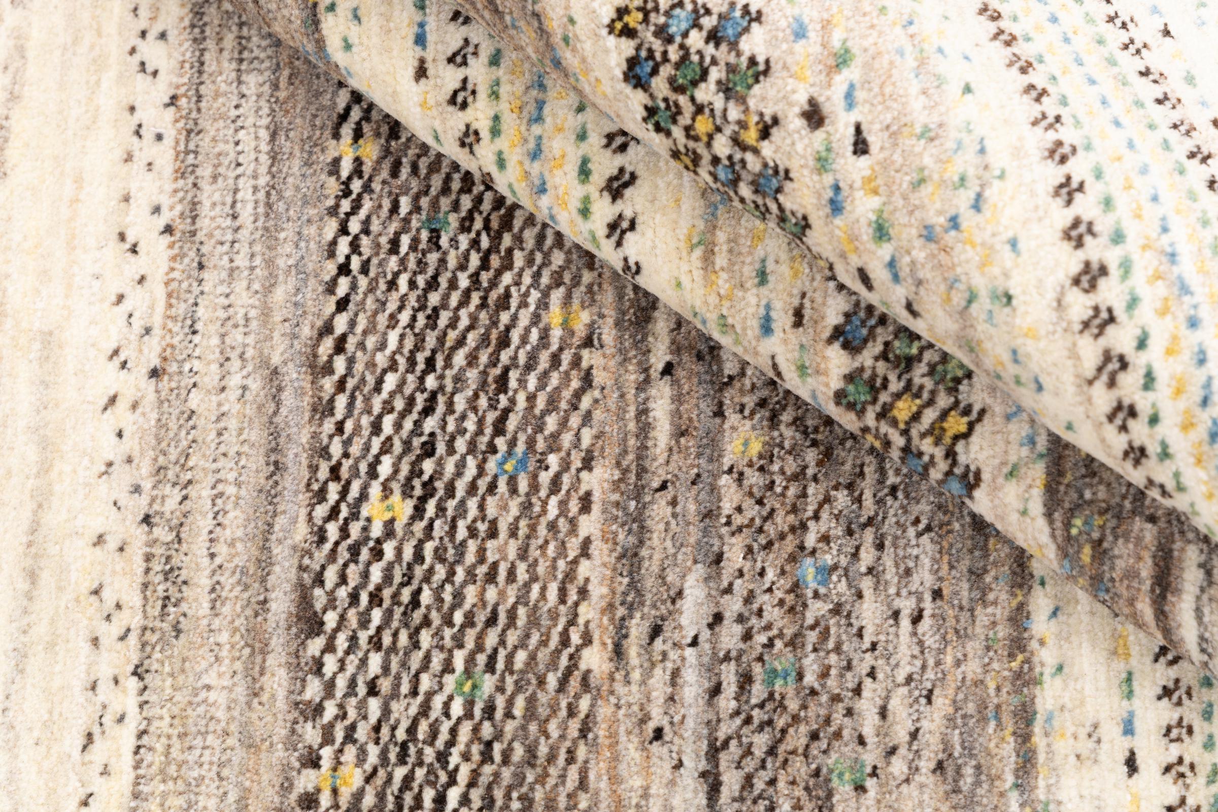 Ten piękny dywan jest perskim Gabbeh i dlatego należy do najwyższej jakości dywanów Gabbeh. Dywany są wiązane przez nomadów lub pół-nomadzi w Iranie zgodnie z tradycyjnym rzemiosłem. Proste motywy i wzory są w większości inspirowane bezpośrednim otoczeniem nomadów. Na przykład wielbłądy, drzewa lub krzewy można znaleźć na tradycyjnych dywanach. Perskie dywany Gabbeh wykonane są z wełny pochodzącej z lokalnie hodowanych stad owiec. Wełna jest więc w większości przypadków nadal obracana ręcznie. Tak więc każdy z tych orientalnych dywanów uosabia unikalny charakter wielowiekowej kultury.