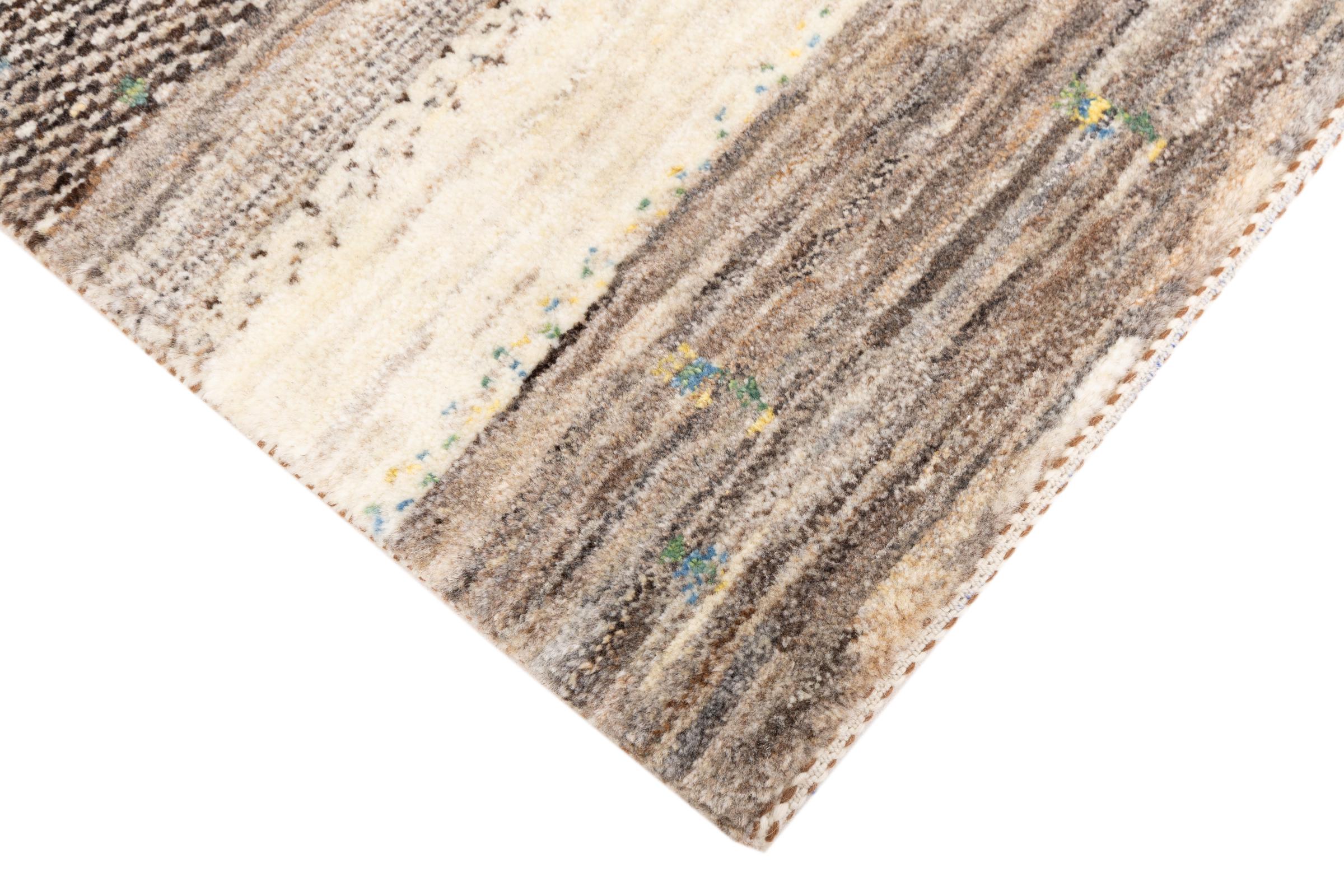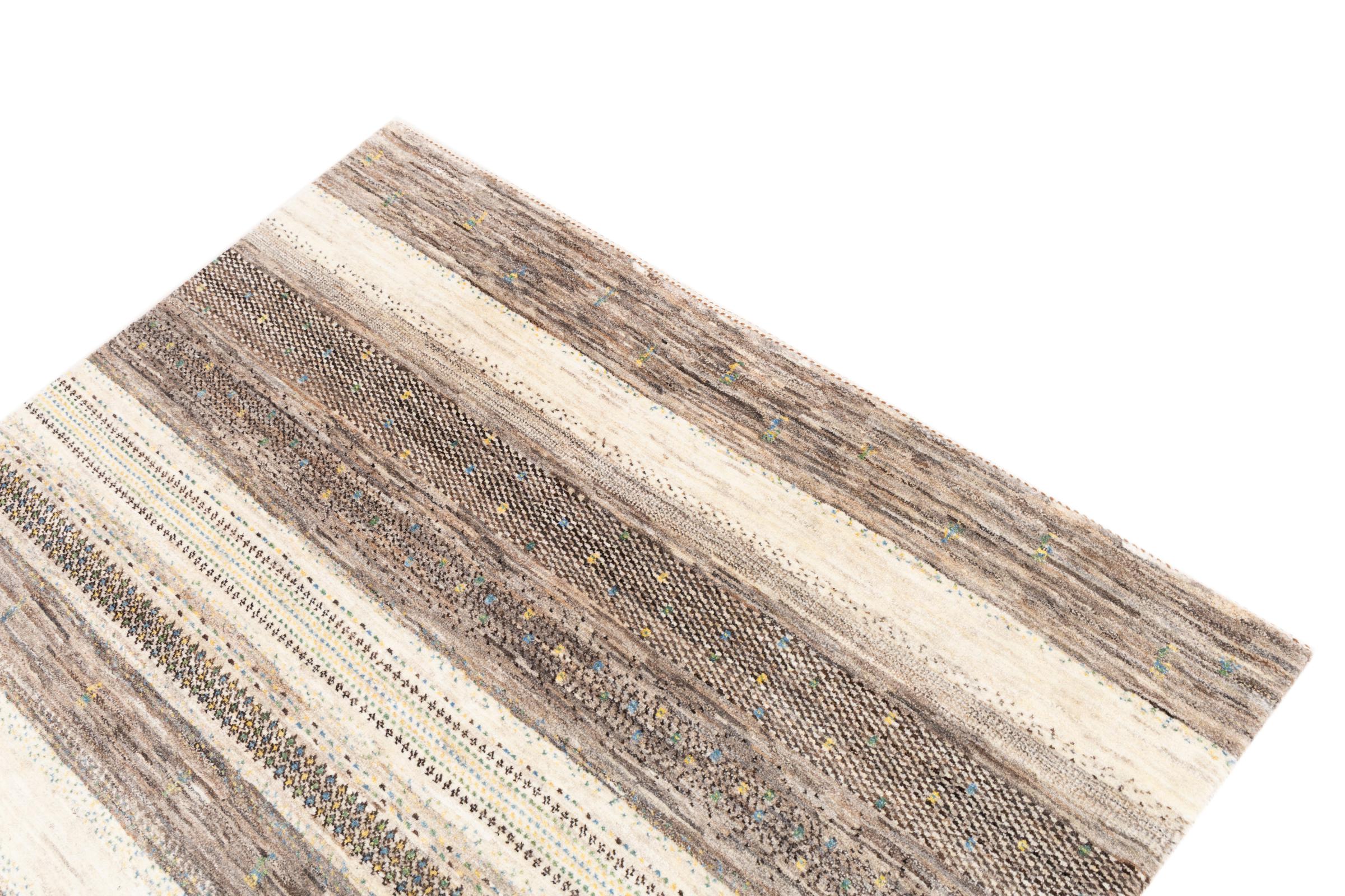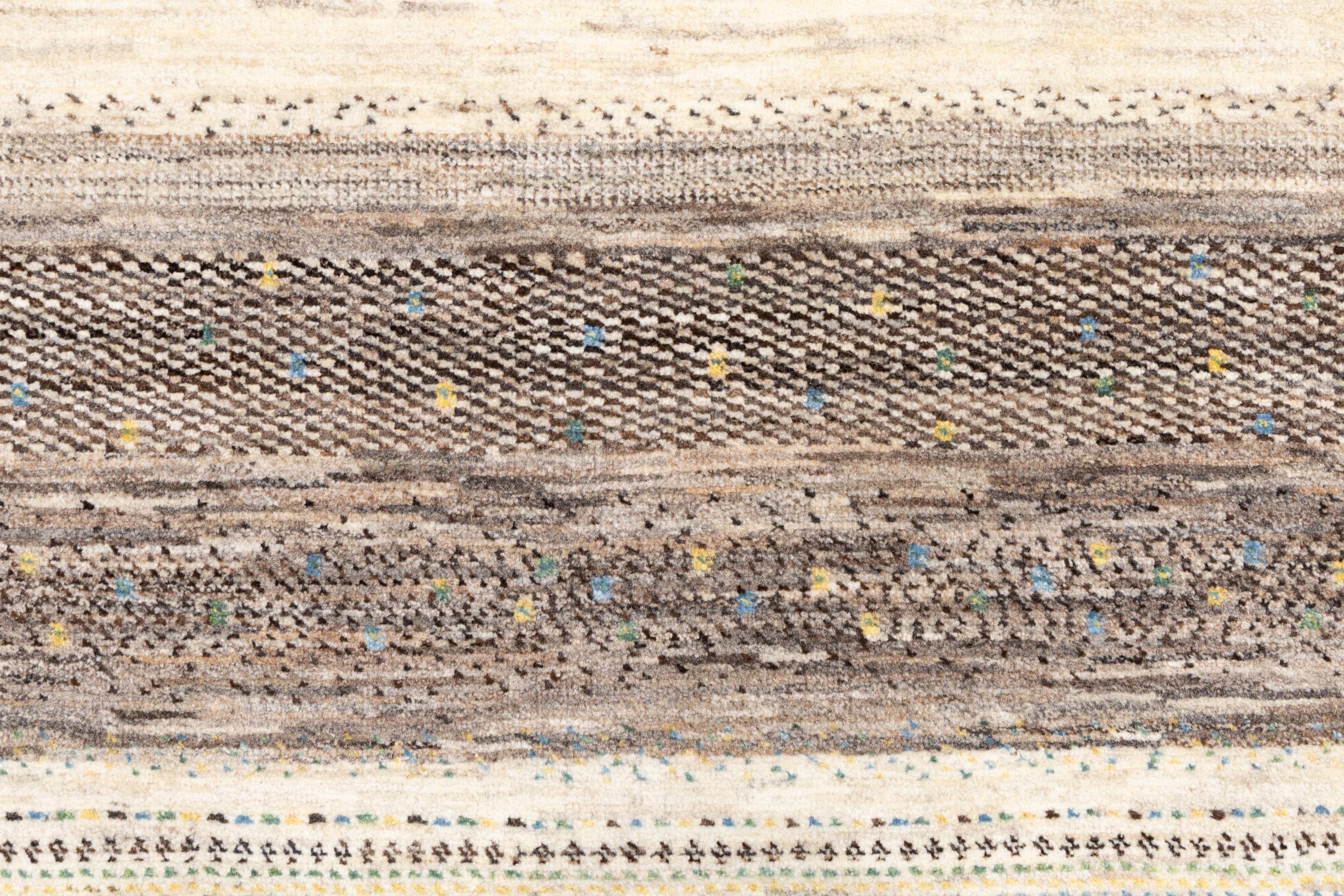 Ten piękny dywan jest perskim Gabbeh i dlatego należy do najwyższej jakości dywanów Gabbeh. Dywany są wiązane przez nomadów lub pół-nomadzi w Iranie zgodnie z tradycyjnym rzemiosłem. Proste motywy i wzory są w większości inspirowane bezpośrednim otoczeniem nomadów. Na przykład wielbłądy, drzewa lub krzewy można znaleźć na tradycyjnych dywanach. Perskie dywany Gabbeh wykonane są z wełny pochodzącej z lokalnie hodowanych stad owiec. Wełna jest więc w większości przypadków nadal obracana ręcznie. Tak więc każdy z tych orientalnych dywanów uosabia unikalny charakter wielowiekowej kultury.