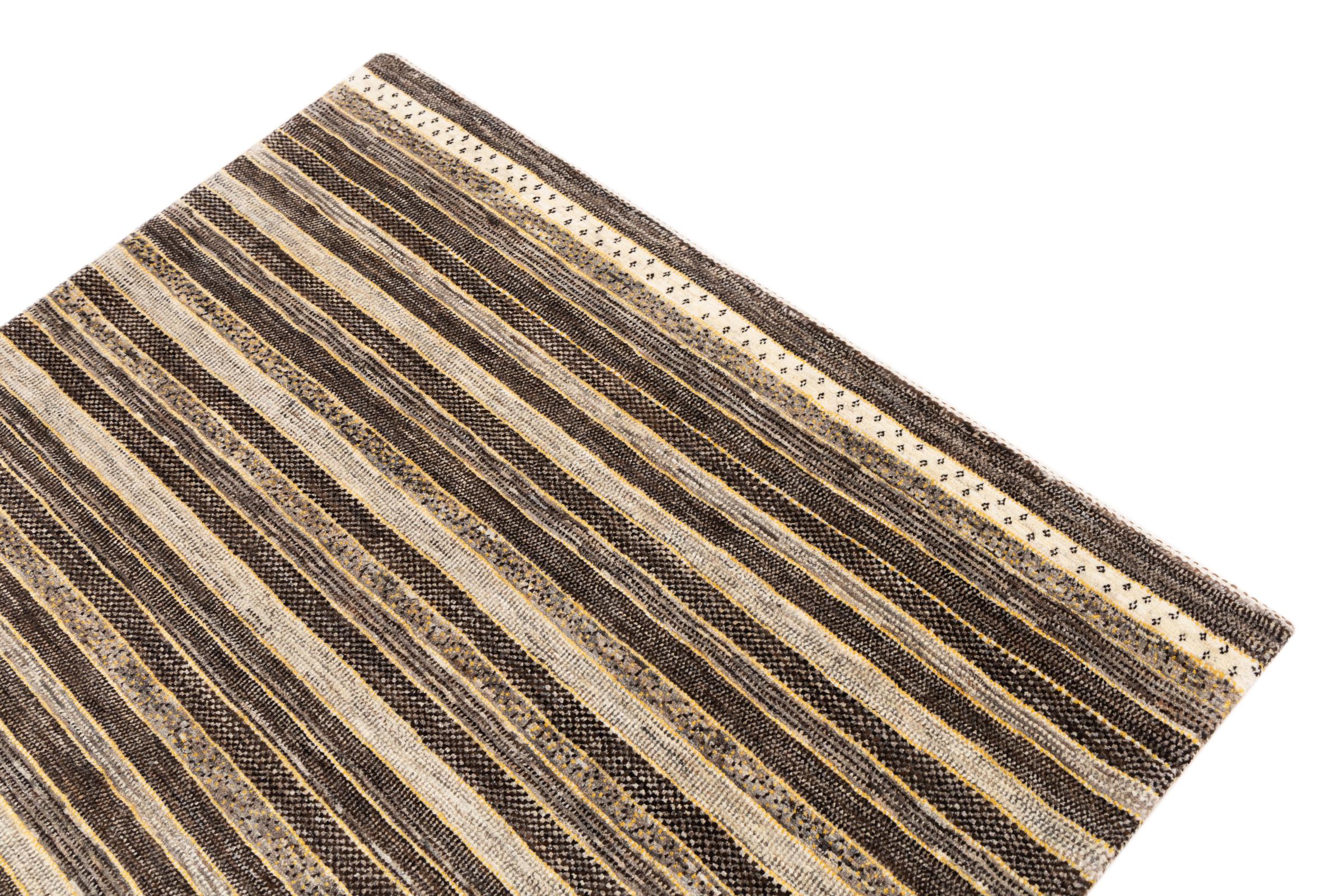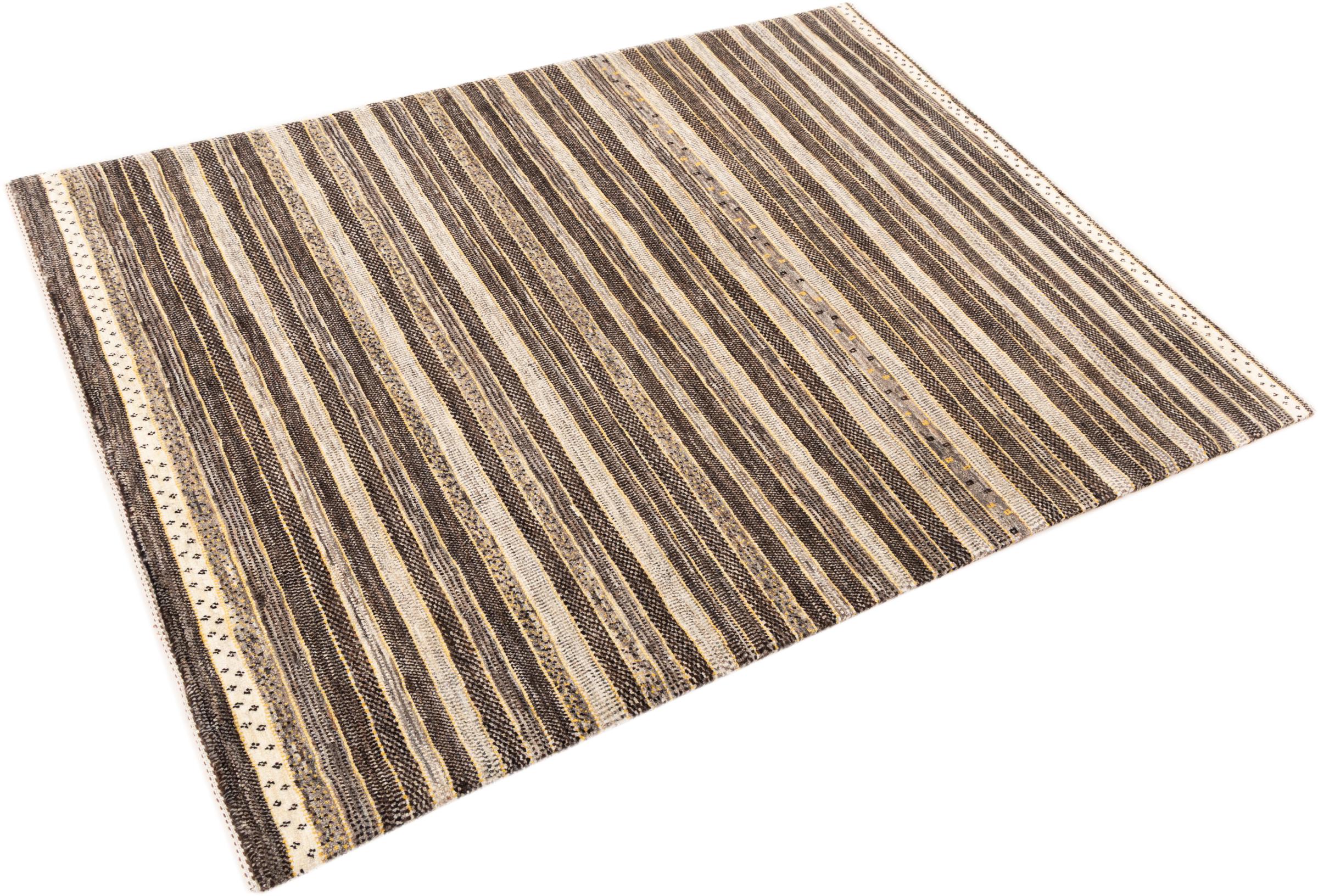 Ten piękny dywan jest perskim Gabbeh i dlatego należy do najwyższej jakości dywanów Gabbeh. Dywany są wiązane przez nomadów lub pół-nomadzi w Iranie zgodnie z tradycyjnym rzemiosłem. Proste motywy i wzory są w większości inspirowane bezpośrednim otoczeniem nomadów. Na przykład wielbłądy, drzewa lub krzewy można znaleźć na tradycyjnych dywanach. Perskie dywany Gabbeh wykonane są z wełny pochodzącej z lokalnie hodowanych stad owiec. Wełna jest więc w większości przypadków nadal obracana ręcznie. Tak więc każdy z tych orientalnych dywanów uosabia unikalny charakter wielowiekowej kultury.