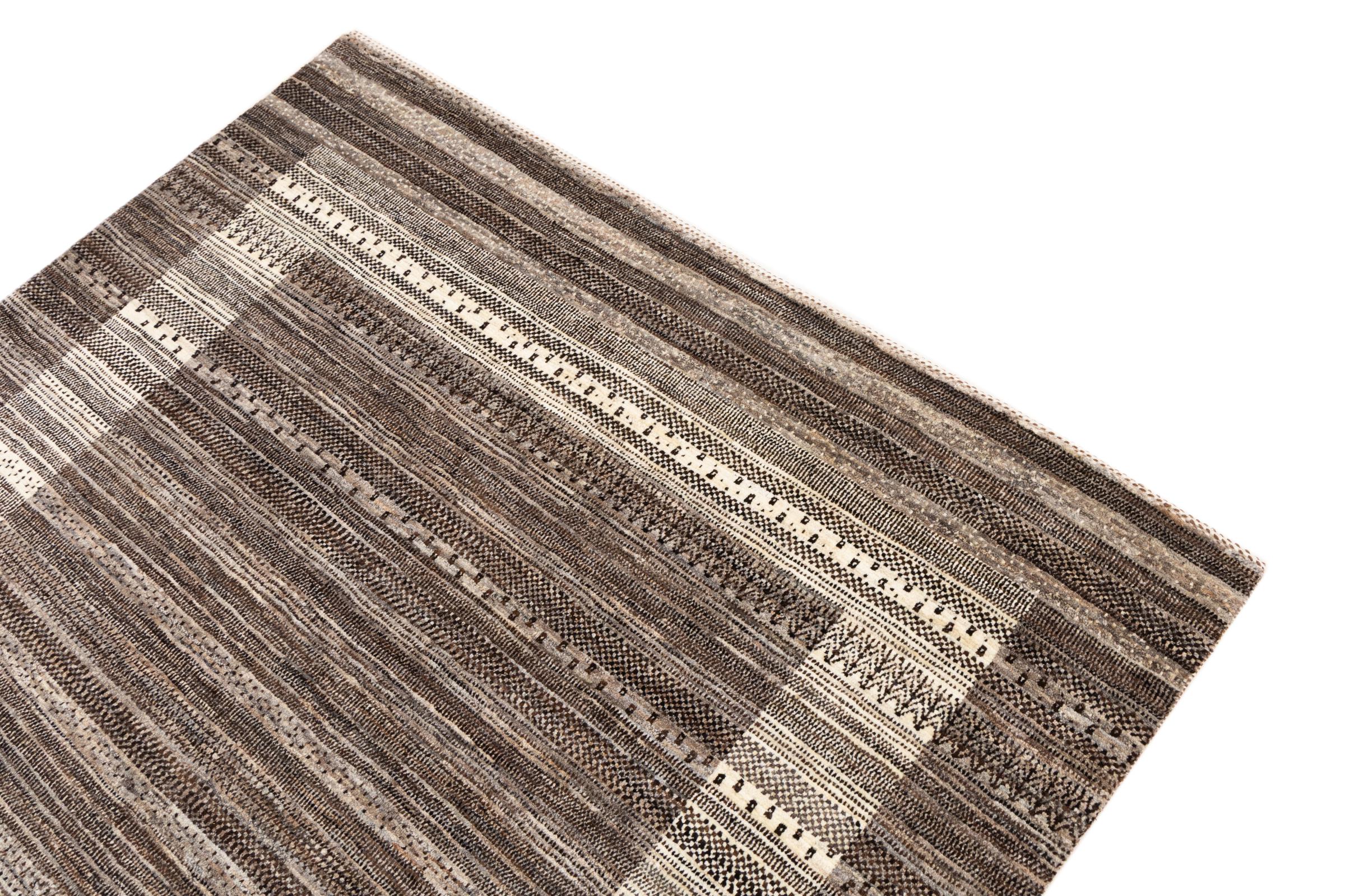 Ten piękny dywan jest perskim Gabbeh i dlatego należy do najwyższej jakości dywanów Gabbeh. Dywany są wiązane przez nomadów lub pół-nomadzi w Iranie zgodnie z tradycyjnym rzemiosłem. Proste motywy i wzory są w większości inspirowane bezpośrednim otoczeniem nomadów. Na przykład wielbłądy, drzewa lub krzewy można znaleźć na tradycyjnych dywanach. Perskie dywany Gabbeh wykonane są z wełny pochodzącej z lokalnie hodowanych stad owiec. Wełna jest więc w większości przypadków nadal obracana ręcznie. Tak więc każdy z tych orientalnych dywanów uosabia unikalny charakter wielowiekowej kultury.