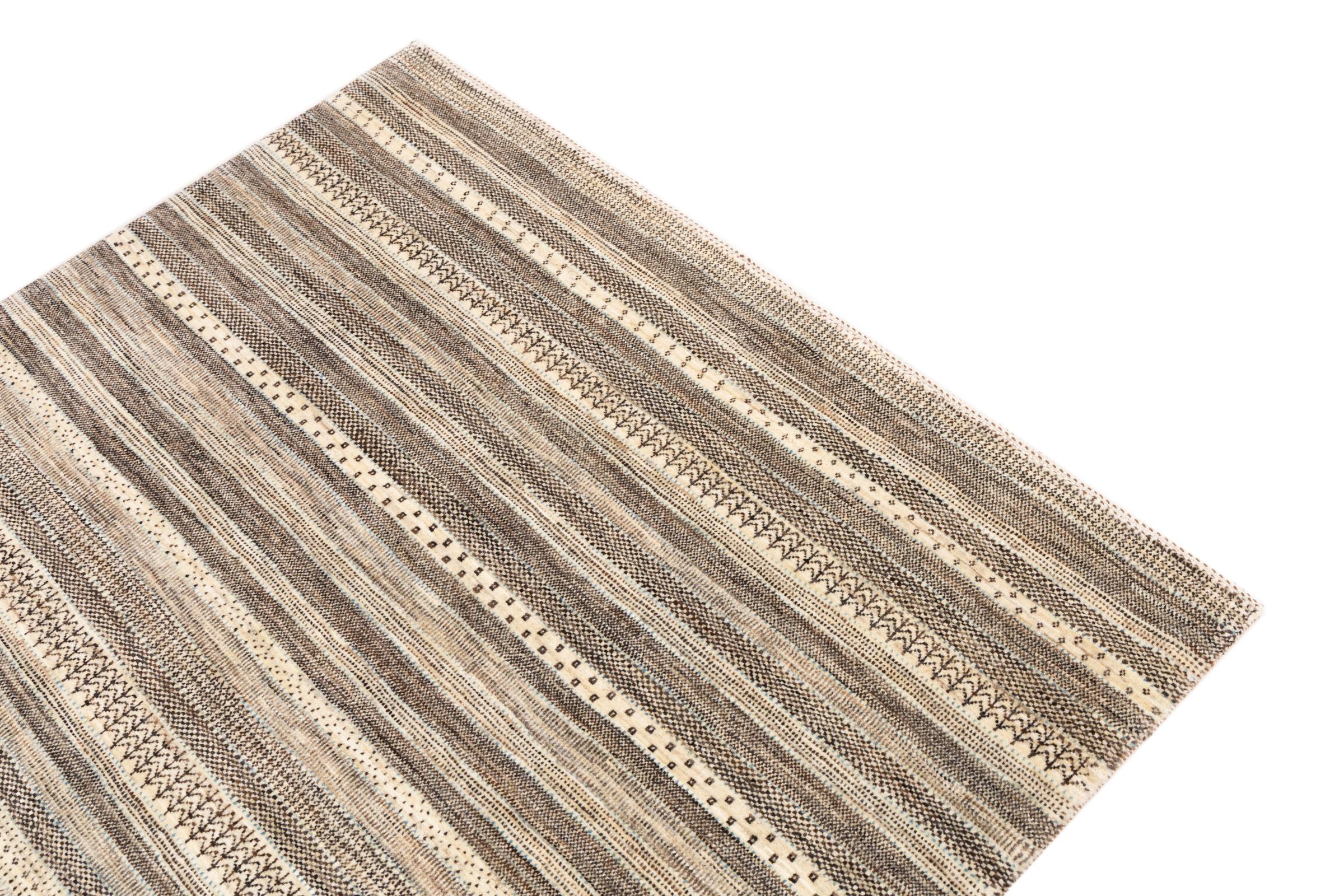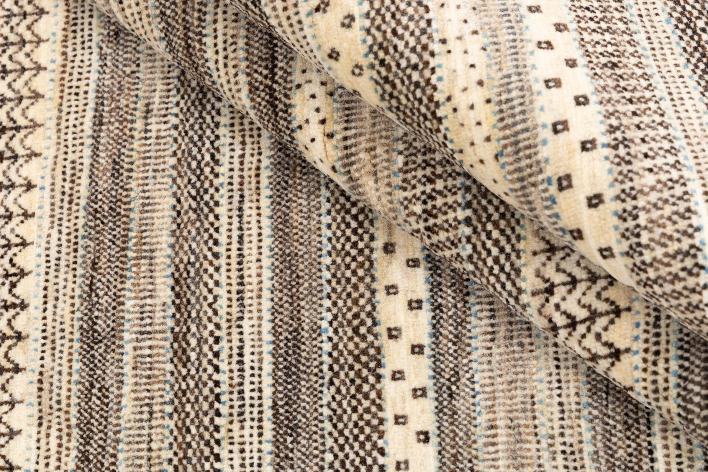 Ten piękny dywan jest perskim Gabbeh i dlatego należy do najwyższej jakości dywanów Gabbeh. Dywany są wiązane przez nomadów lub pół-nomadzi w Iranie zgodnie z tradycyjnym rzemiosłem. Proste motywy i wzory są w większości inspirowane bezpośrednim otoczeniem nomadów. Na przykład wielbłądy, drzewa lub krzewy można znaleźć na tradycyjnych dywanach. Perskie dywany Gabbeh wykonane są z wełny pochodzącej z lokalnie hodowanych stad owiec. Wełna jest więc w większości przypadków nadal obracana ręcznie. Tak więc każdy z tych orientalnych dywanów uosabia unikalny charakter wielowiekowej kultury.