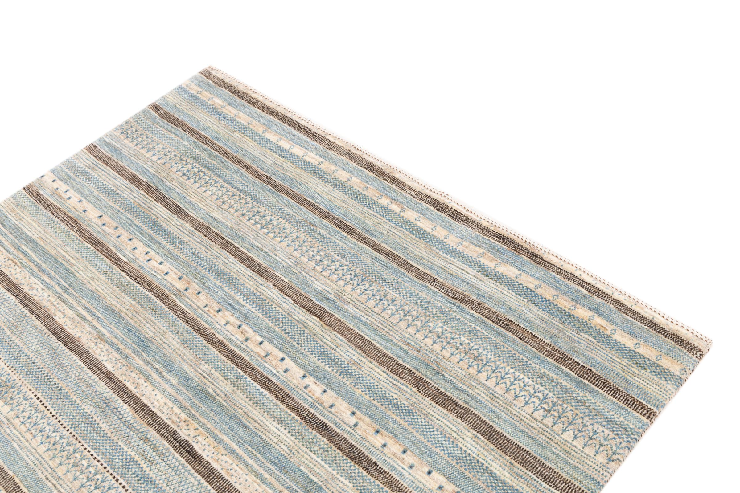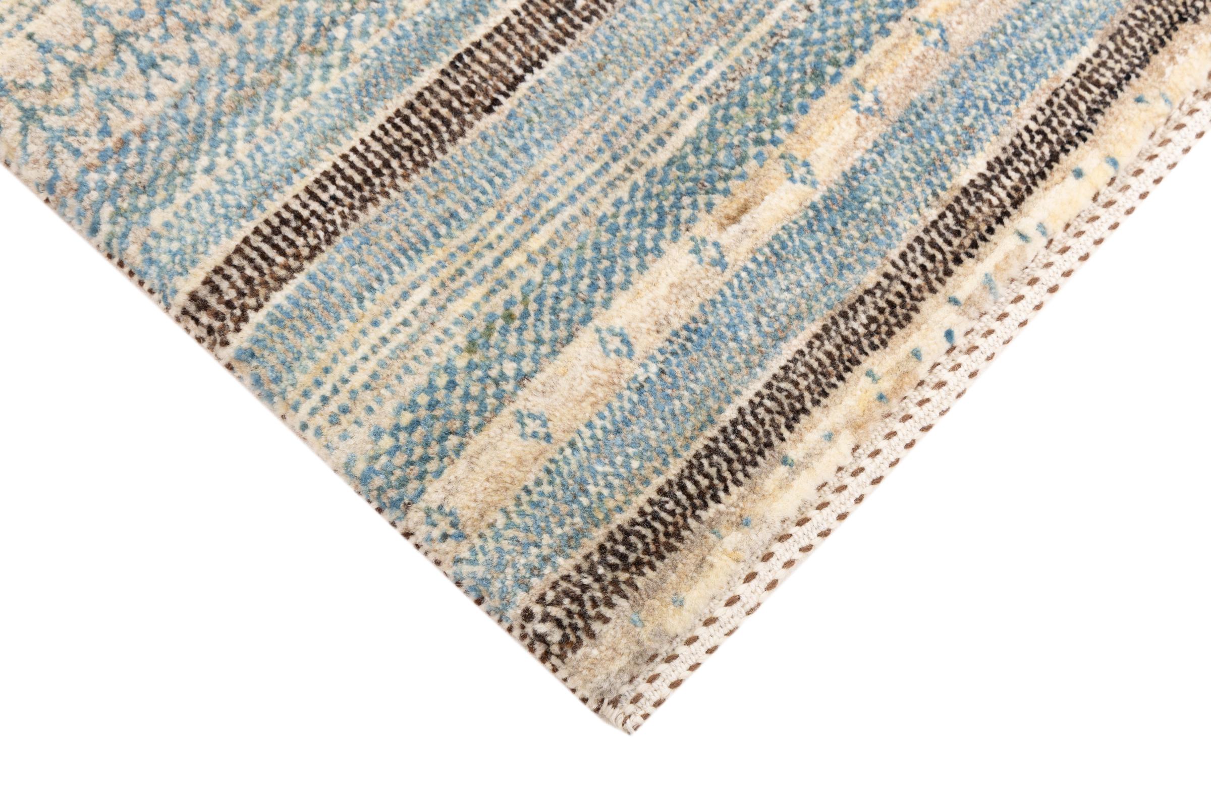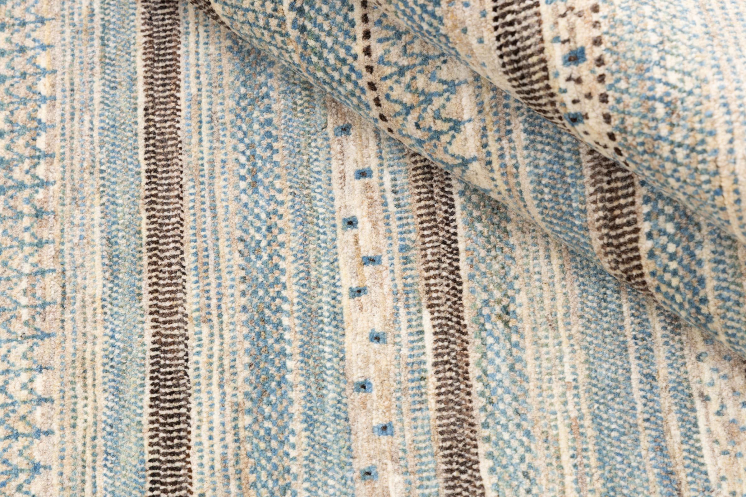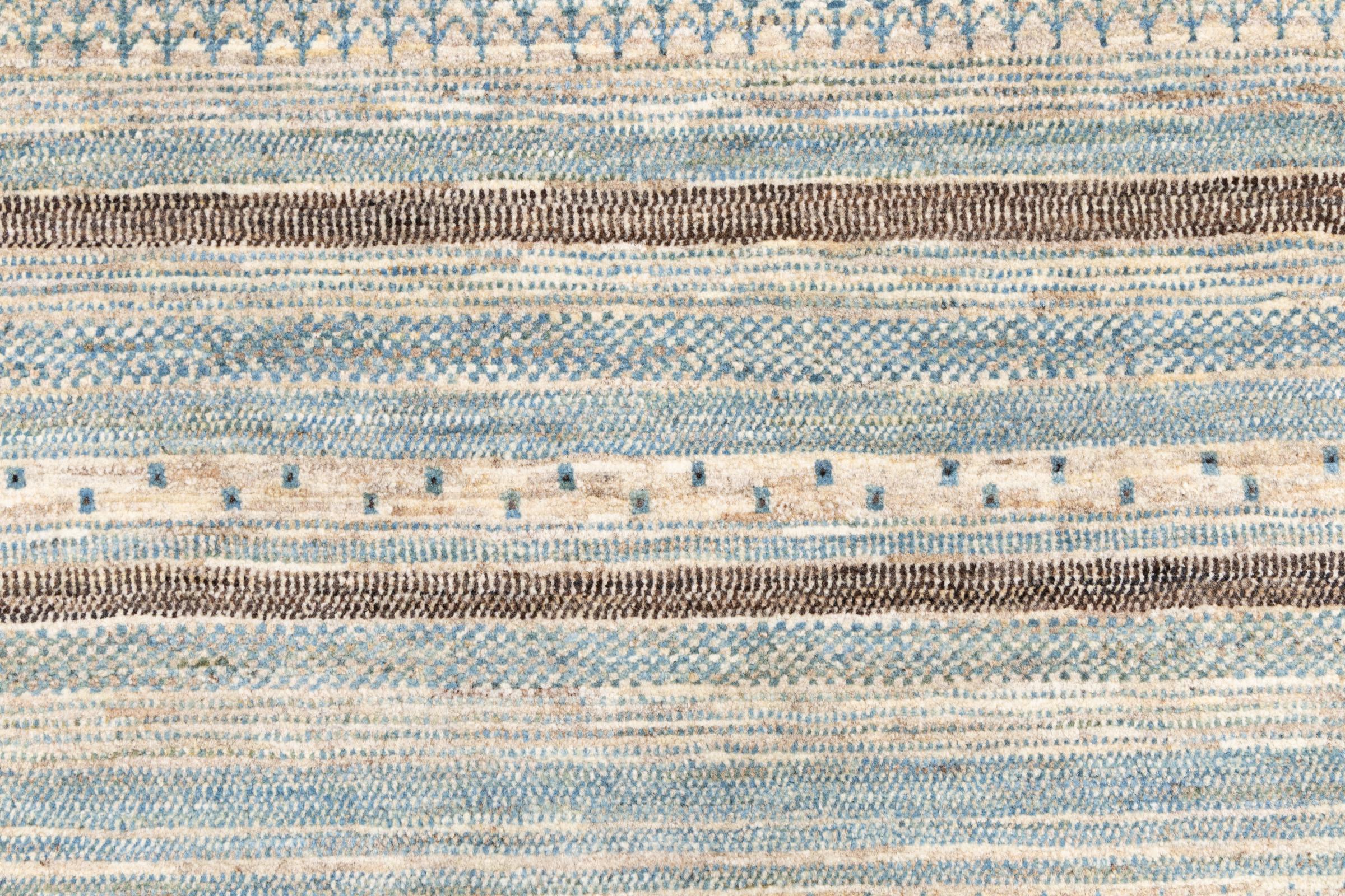 Ten piękny dywan jest perskim Gabbeh i dlatego należy do najwyższej jakości dywanów Gabbeh. Dywany są wiązane przez nomadów lub pół-nomadzi w Iranie zgodnie z tradycyjnym rzemiosłem. Proste motywy i wzory są w większości inspirowane bezpośrednim otoczeniem nomadów. Na przykład wielbłądy, drzewa lub krzewy można znaleźć na tradycyjnych dywanach. Perskie dywany Gabbeh wykonane są z wełny pochodzącej z lokalnie hodowanych stad owiec. Wełna jest więc w większości przypadków nadal obracana ręcznie. Tak więc każdy z tych orientalnych dywanów uosabia unikalny charakter wielowiekowej kultury.