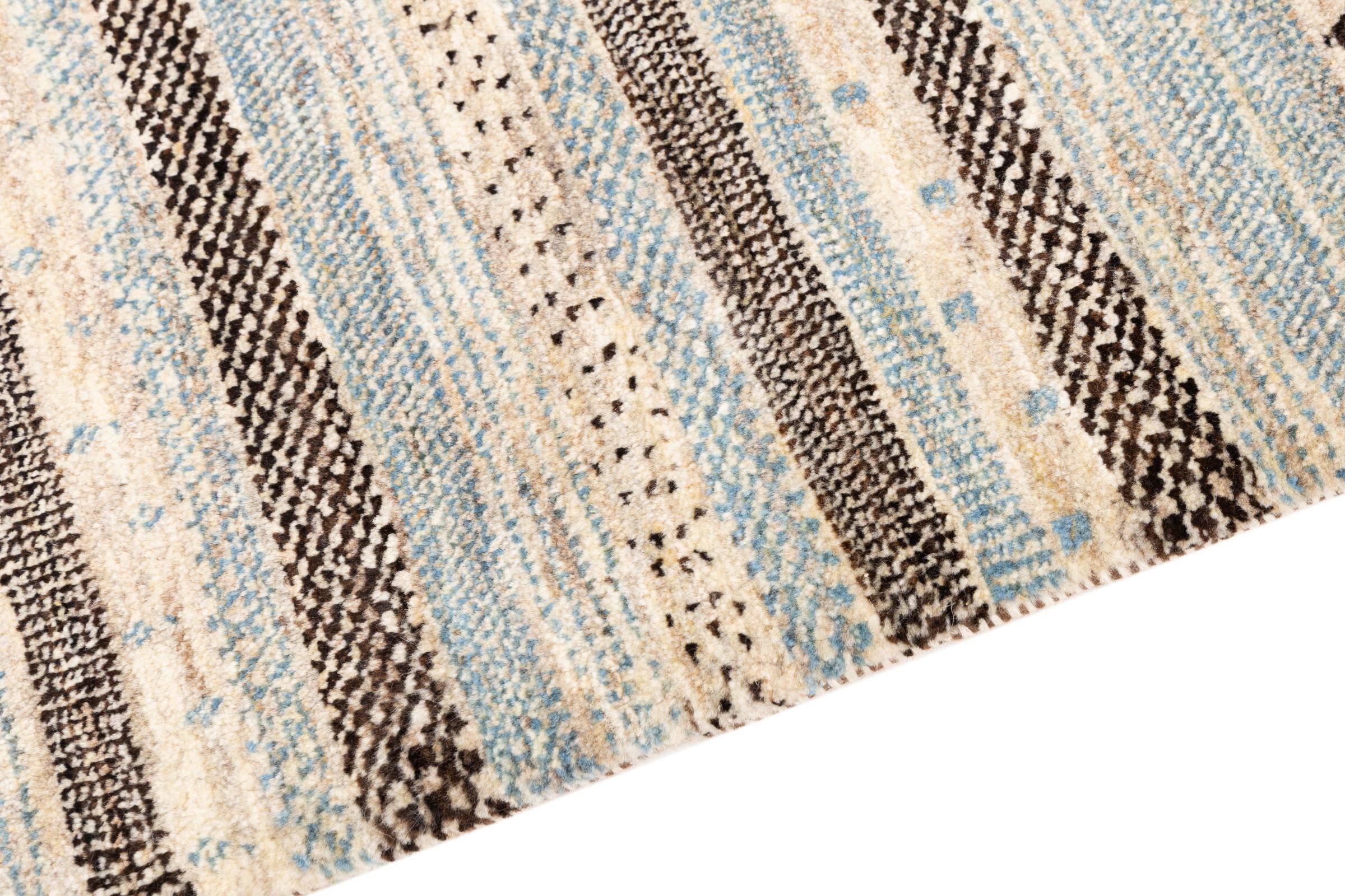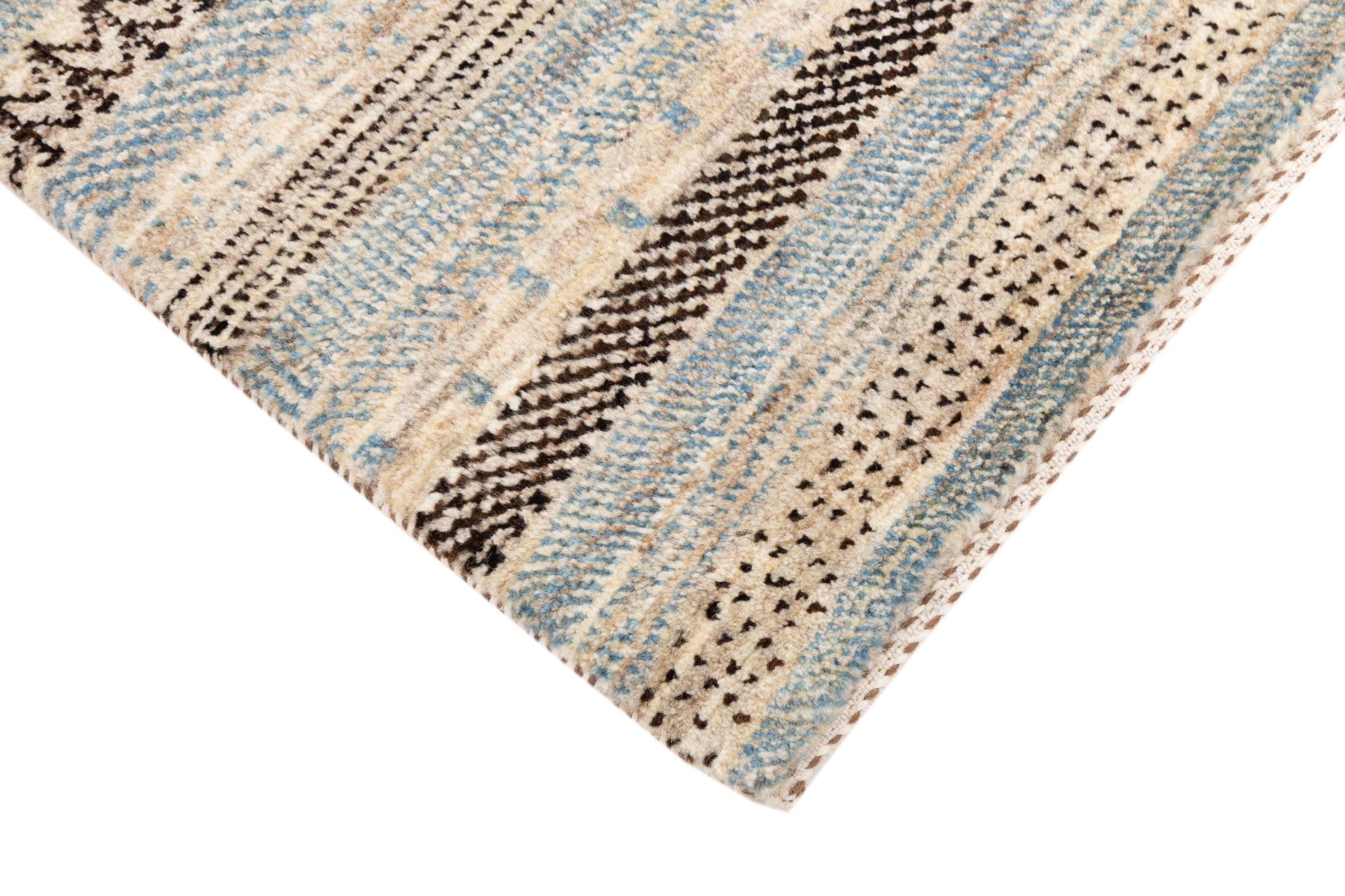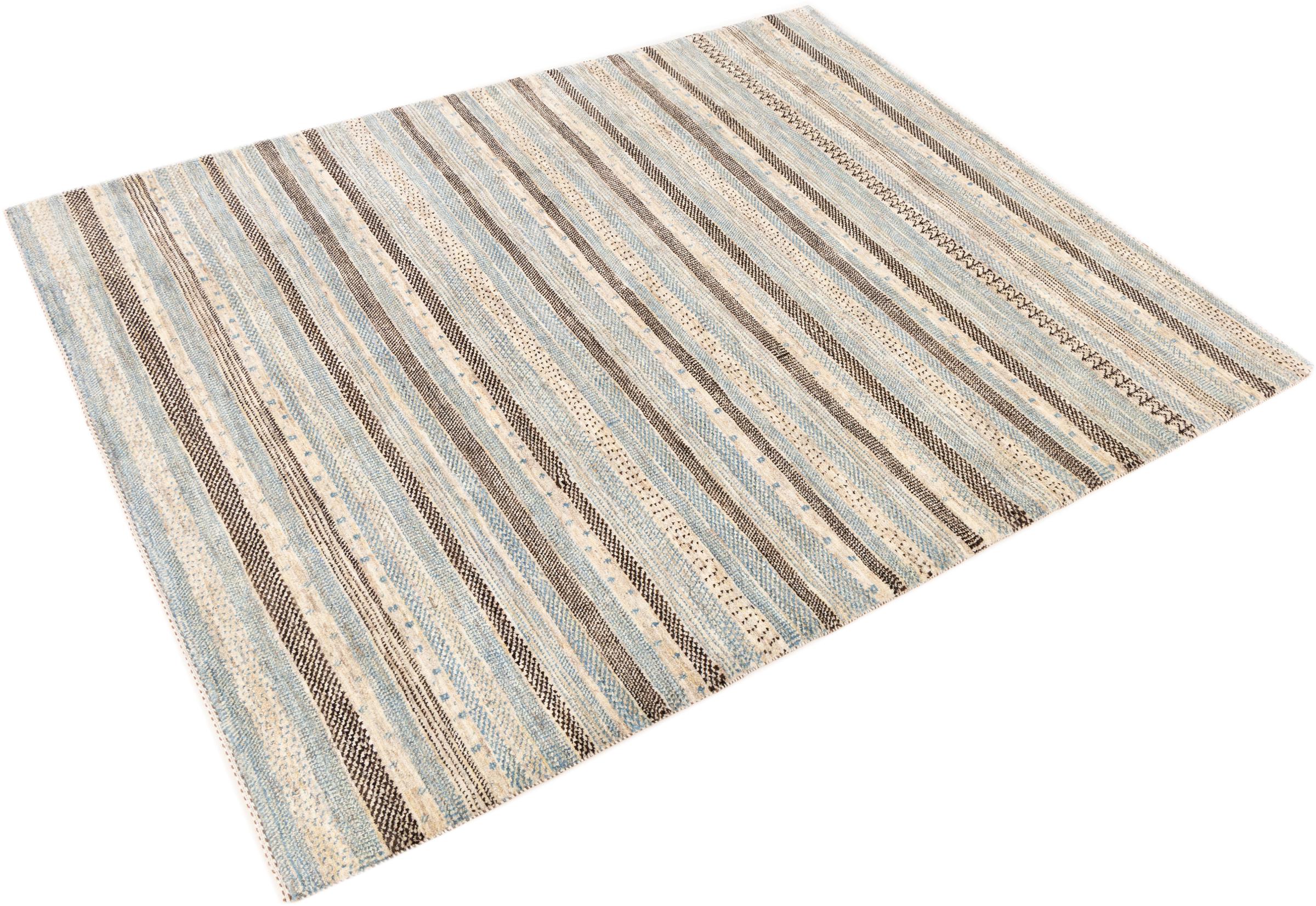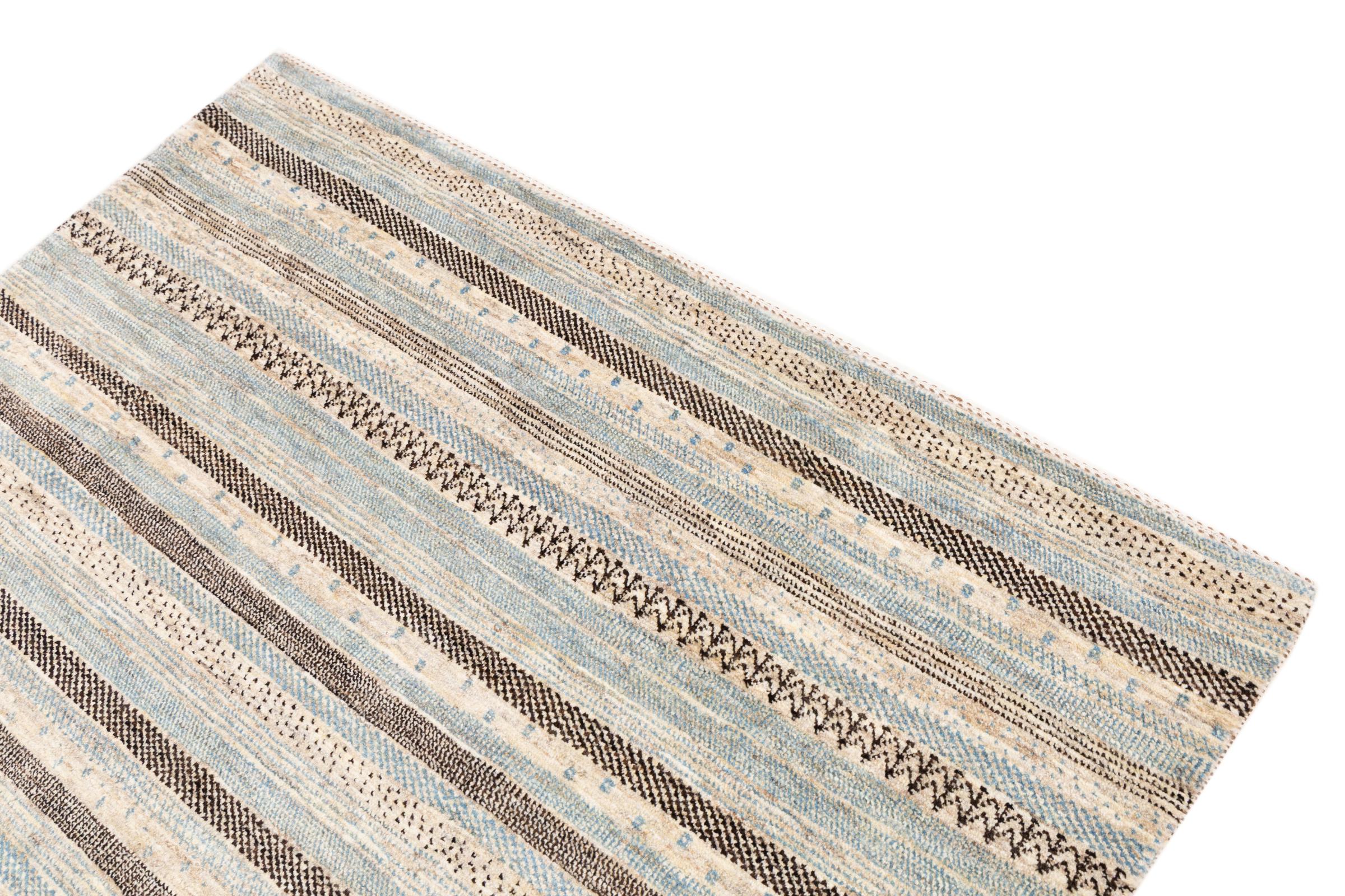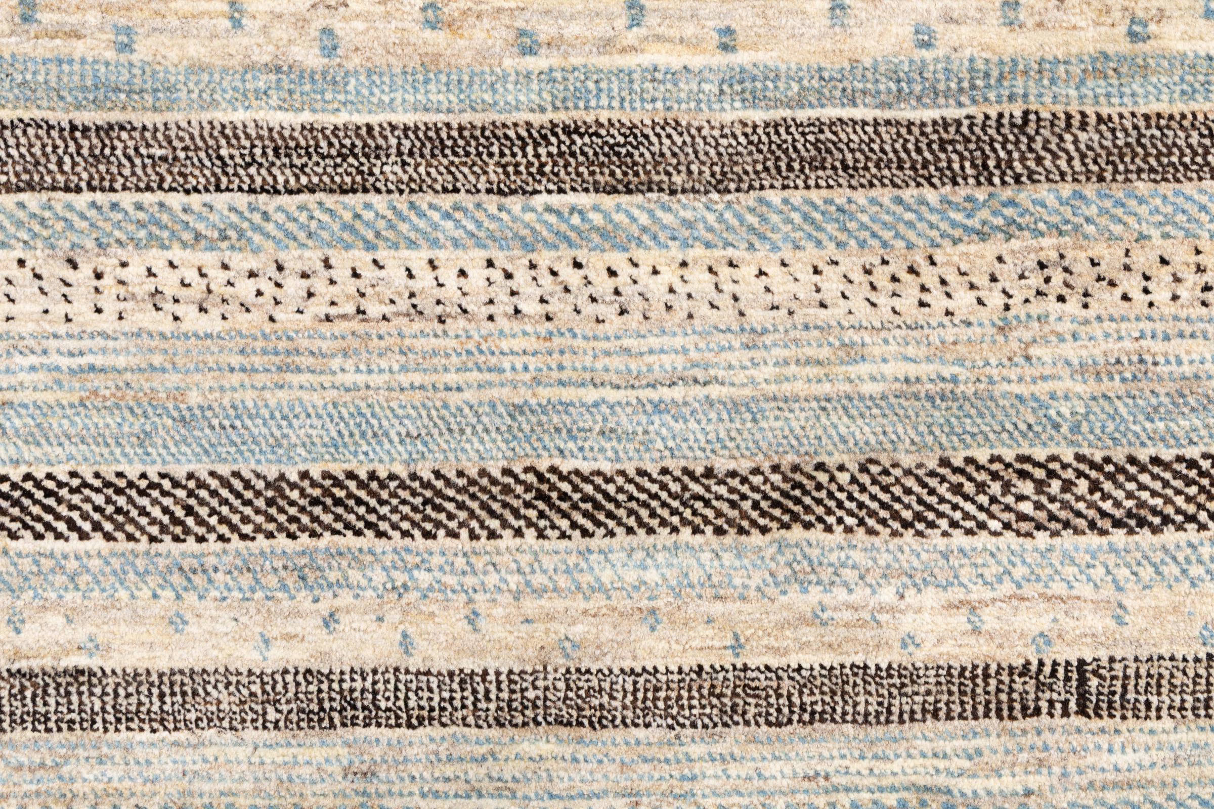 Ten piękny dywan jest perskim Gabbeh i dlatego należy do najwyższej jakości dywanów Gabbeh. Dywany są wiązane przez nomadów lub pół-nomadzi w Iranie zgodnie z tradycyjnym rzemiosłem. Proste motywy i wzory są w większości inspirowane bezpośrednim otoczeniem nomadów. Na przykład wielbłądy, drzewa lub krzewy można znaleźć na tradycyjnych dywanach. Perskie dywany Gabbeh wykonane są z wełny pochodzącej z lokalnie hodowanych stad owiec. Wełna jest więc w większości przypadków nadal obracana ręcznie. Tak więc każdy z tych orientalnych dywanów uosabia unikalny charakter wielowiekowej kultury.
