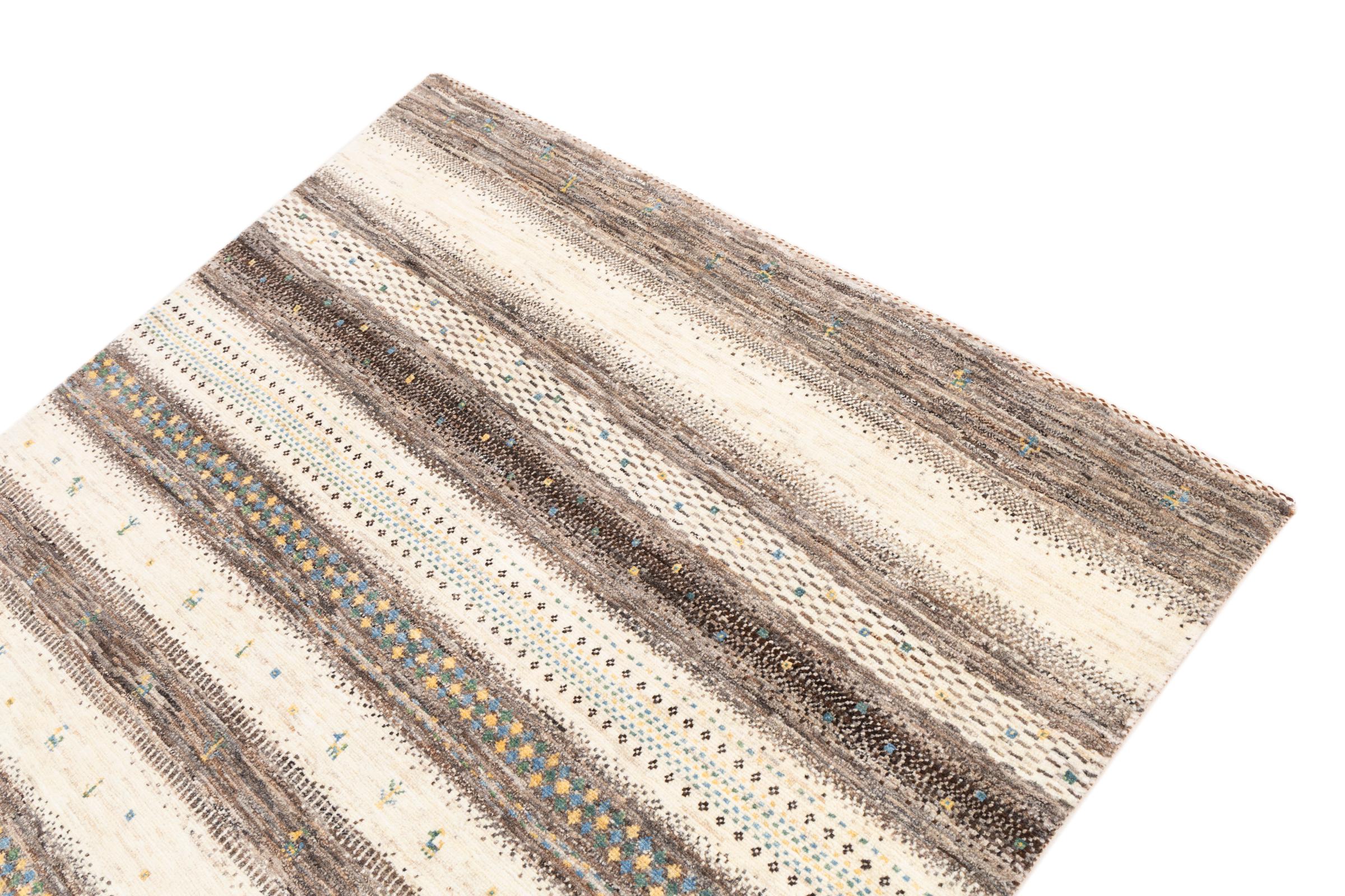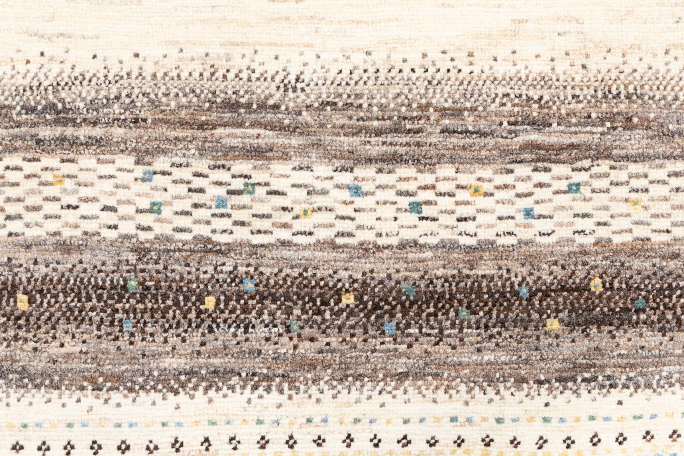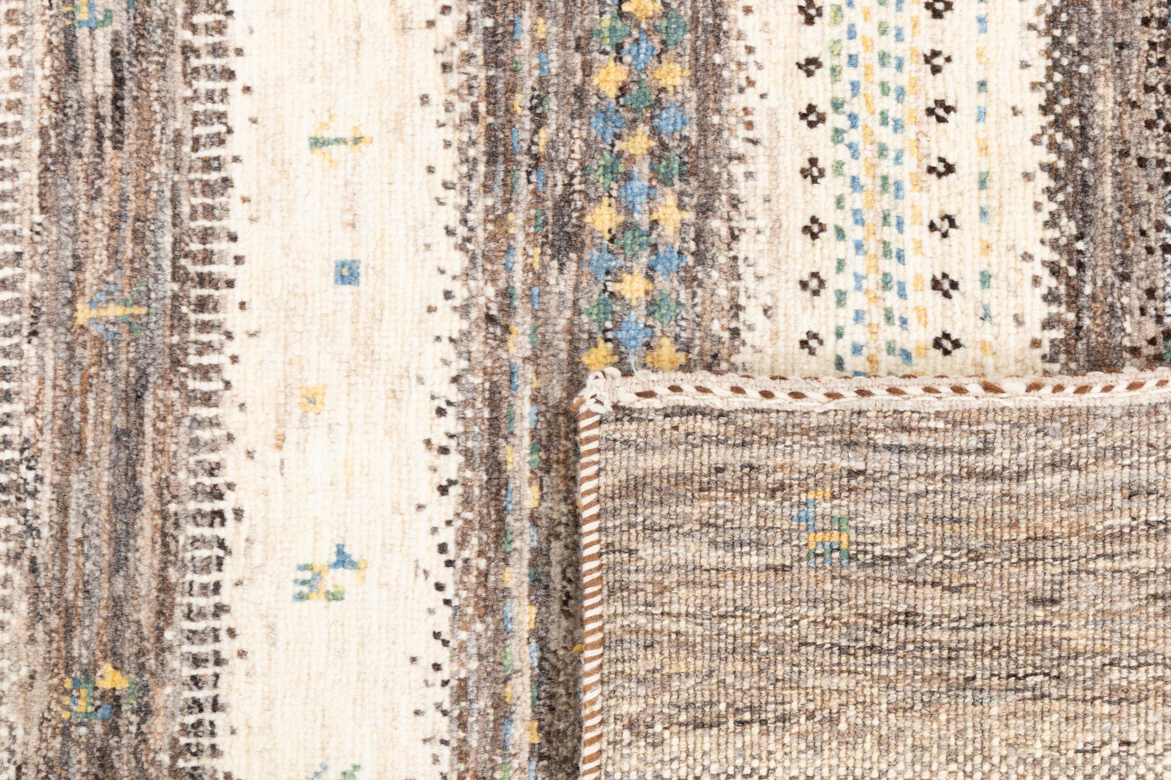Ten piękny dywan jest perskim Gabbeh i dlatego należy do najwyższej jakości dywanów Gabbeh. Dywany są wiązane przez nomadów lub pół-nomadzi w Iranie zgodnie z tradycyjnym rzemiosłem. Proste motywy i wzory są w większości inspirowane bezpośrednim otoczeniem nomadów. Na przykład wielbłądy, drzewa lub krzewy można znaleźć na tradycyjnych dywanach. Perskie dywany Gabbeh wykonane są z wełny pochodzącej z lokalnie hodowanych stad owiec. Wełna jest więc w większości przypadków nadal obracana ręcznie. Tak więc każdy z tych orientalnych dywanów uosabia unikalny charakter wielowiekowej kultury.