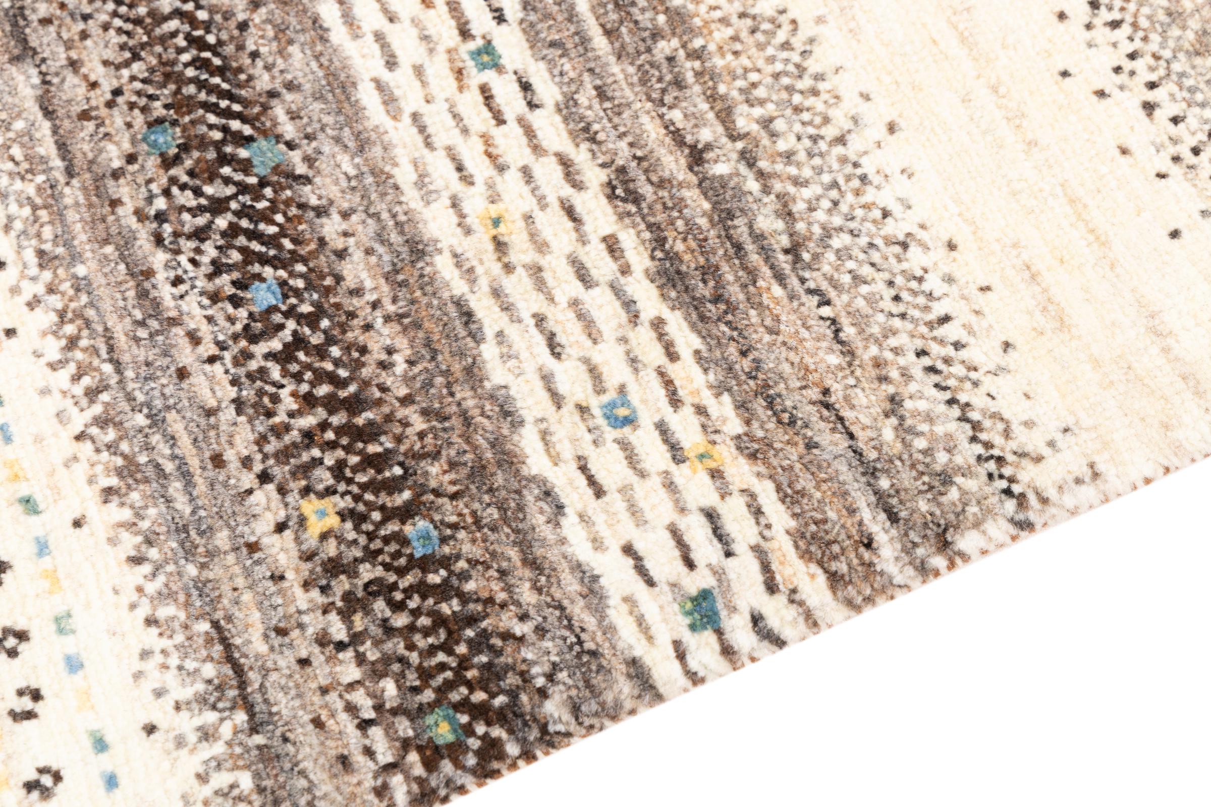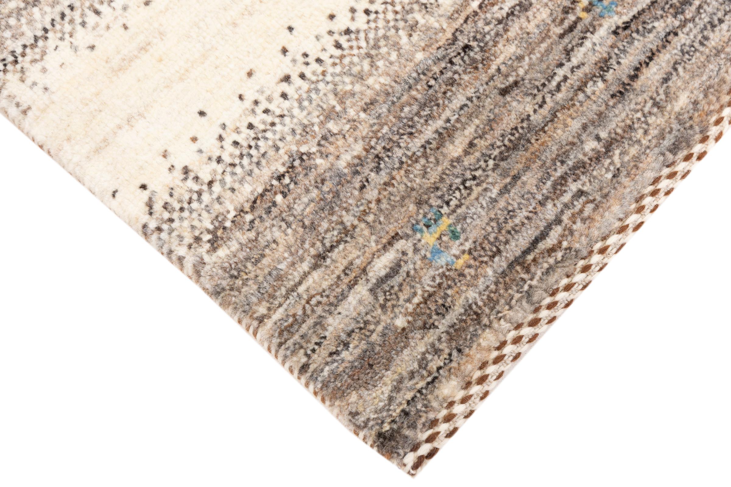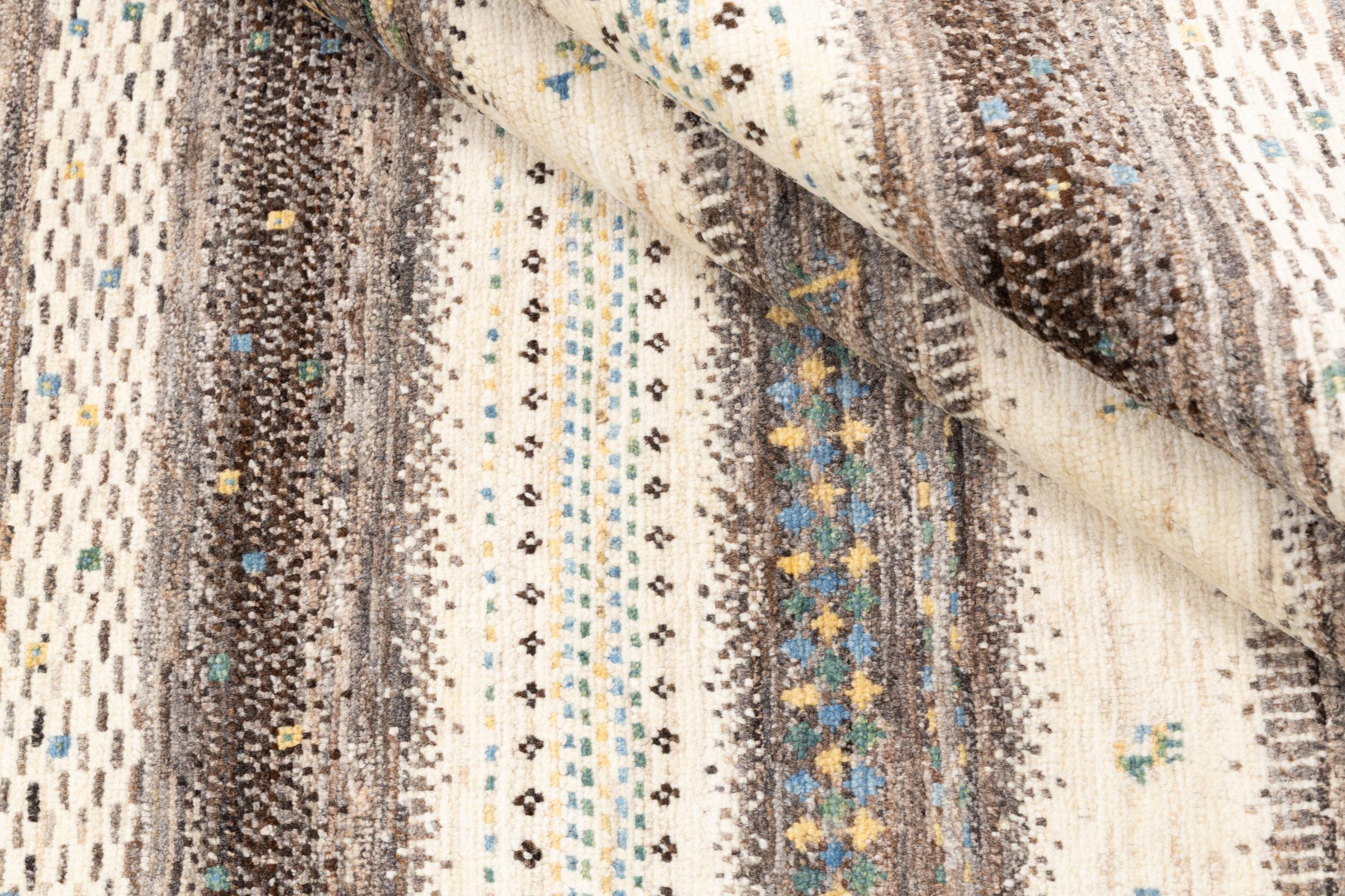 Ten piękny dywan jest perskim Gabbeh i dlatego należy do najwyższej jakości dywanów Gabbeh. Dywany są wiązane przez nomadów lub pół-nomadzi w Iranie zgodnie z tradycyjnym rzemiosłem. Proste motywy i wzory są w większości inspirowane bezpośrednim otoczeniem nomadów. Na przykład wielbłądy, drzewa lub krzewy można znaleźć na tradycyjnych dywanach. Perskie dywany Gabbeh wykonane są z wełny pochodzącej z lokalnie hodowanych stad owiec. Wełna jest więc w większości przypadków nadal obracana ręcznie. Tak więc każdy z tych orientalnych dywanów uosabia unikalny charakter wielowiekowej kultury.