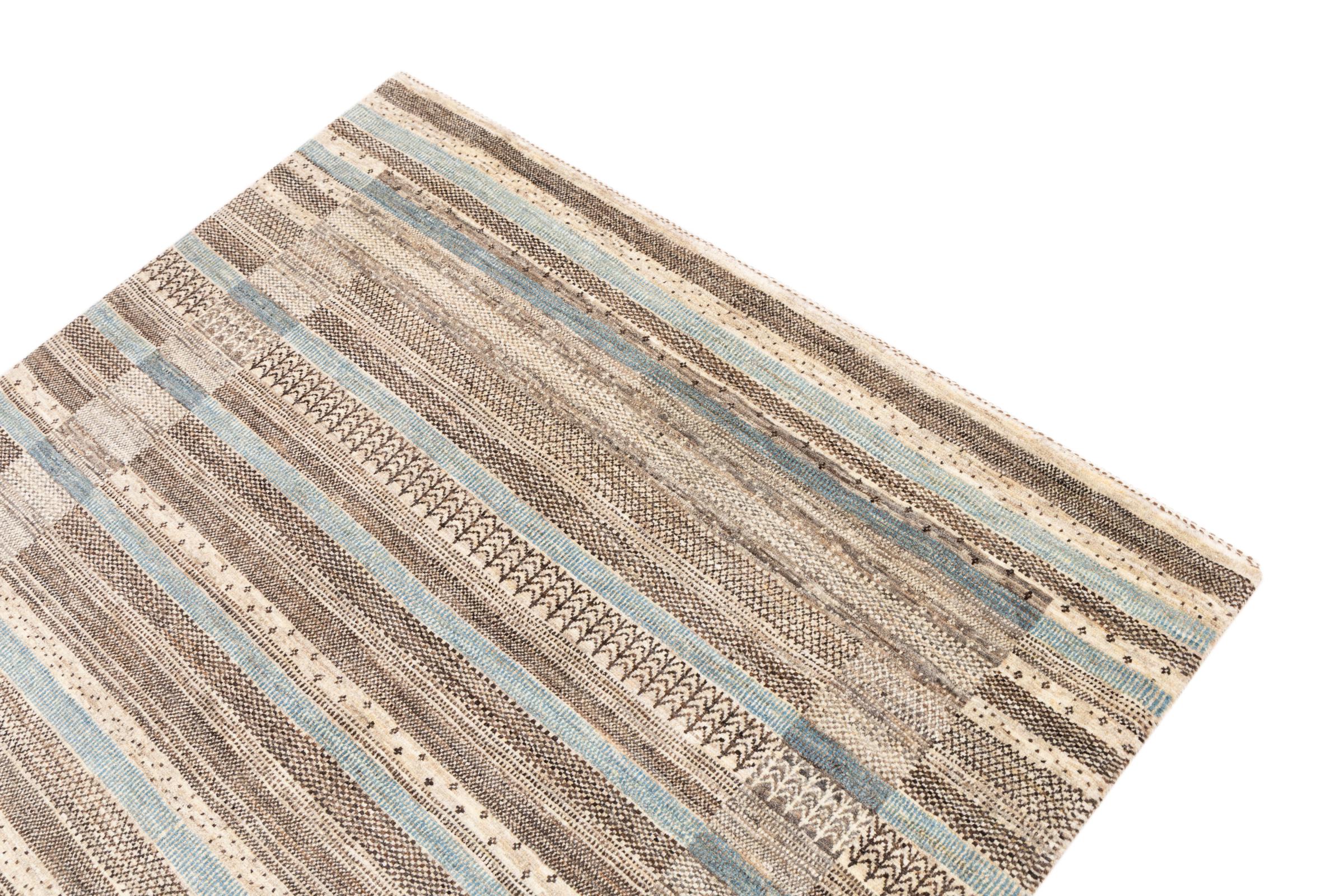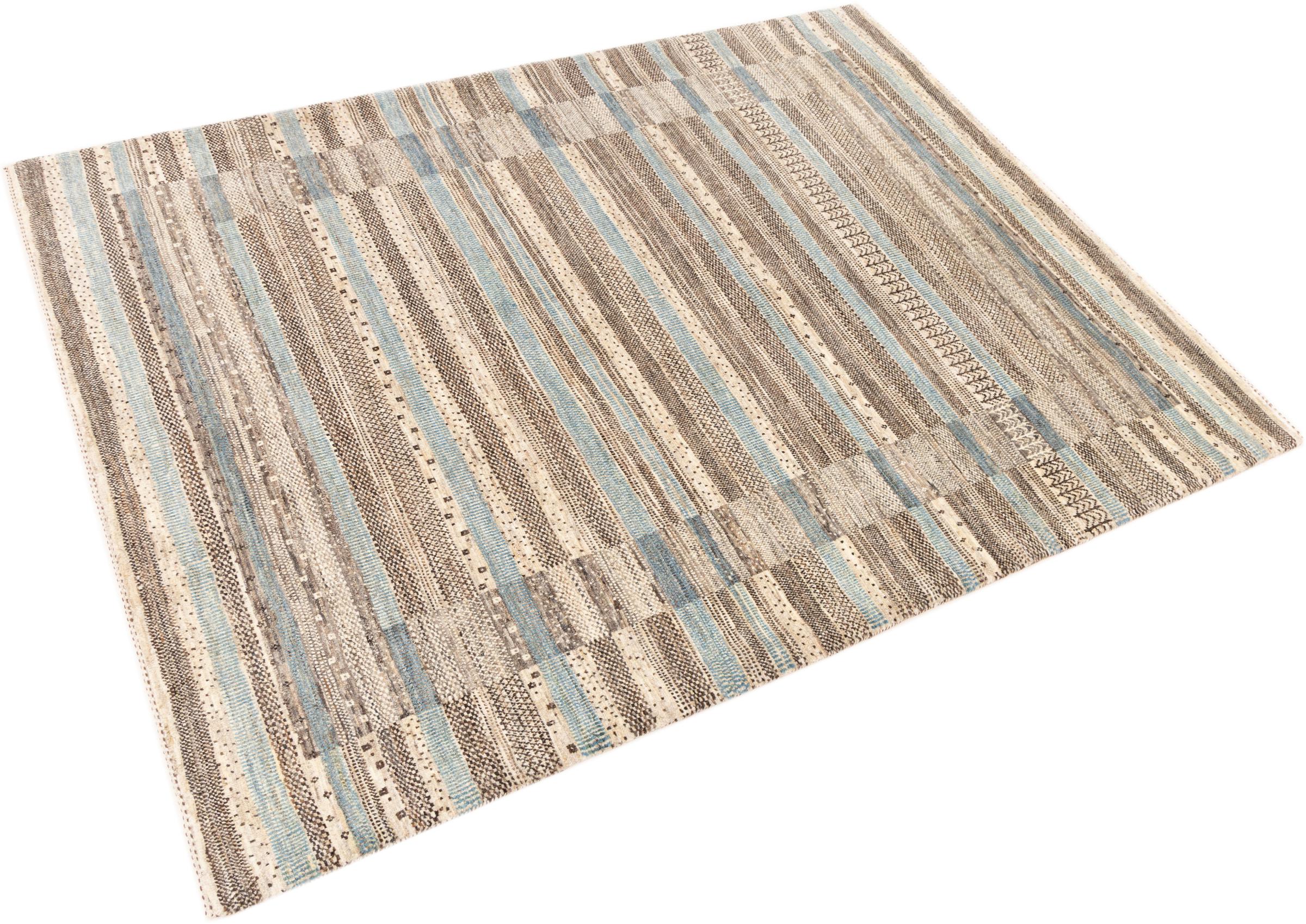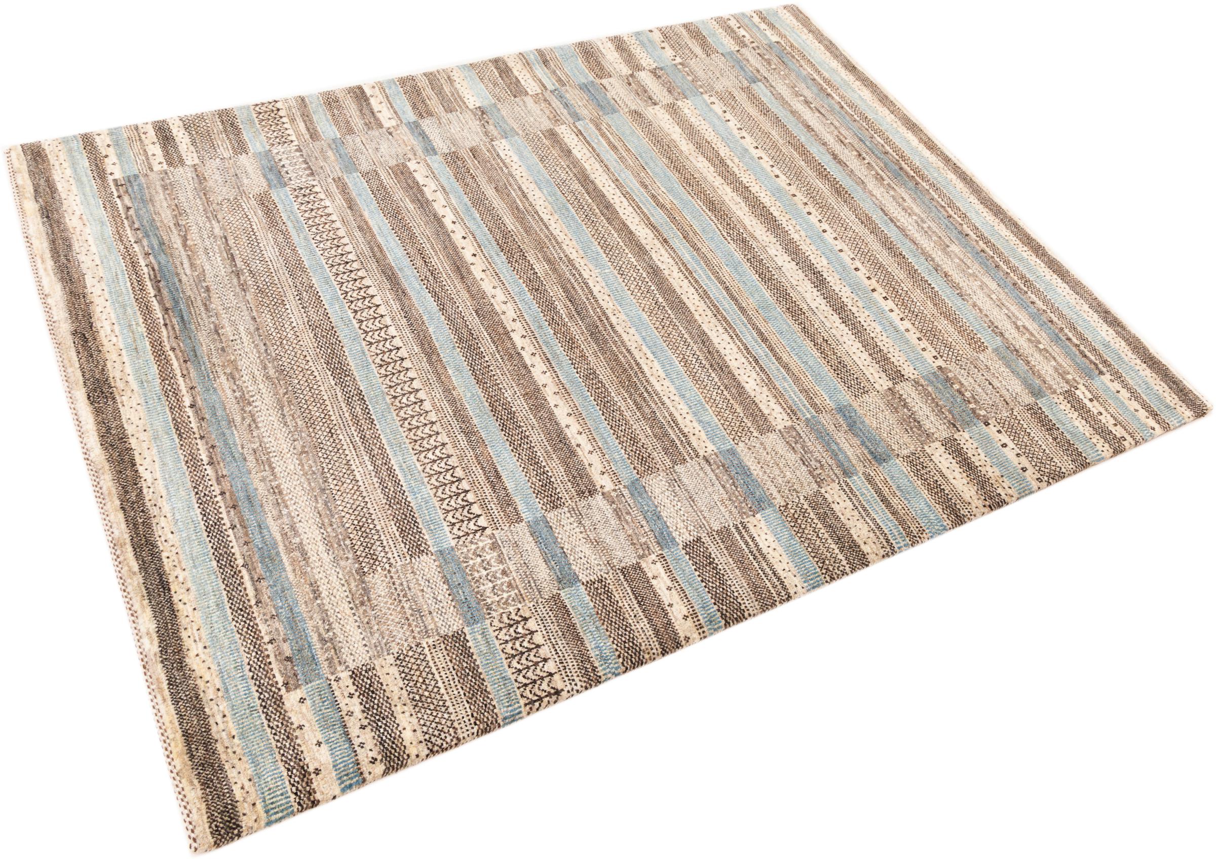 Ten piękny dywan jest perskim Gabbeh i dlatego należy do najwyższej jakości dywanów Gabbeh. Dywany są wiązane przez nomadów lub pół-nomadzi w Iranie zgodnie z tradycyjnym rzemiosłem. Proste motywy i wzory są w większości inspirowane bezpośrednim otoczeniem nomadów. Na przykład wielbłądy, drzewa lub krzewy można znaleźć na tradycyjnych dywanach. Perskie dywany Gabbeh wykonane są z wełny pochodzącej z lokalnie hodowanych stad owiec. Wełna jest więc w większości przypadków nadal obracana ręcznie. Tak więc każdy z tych orientalnych dywanów uosabia unikalny charakter wielowiekowej kultury.