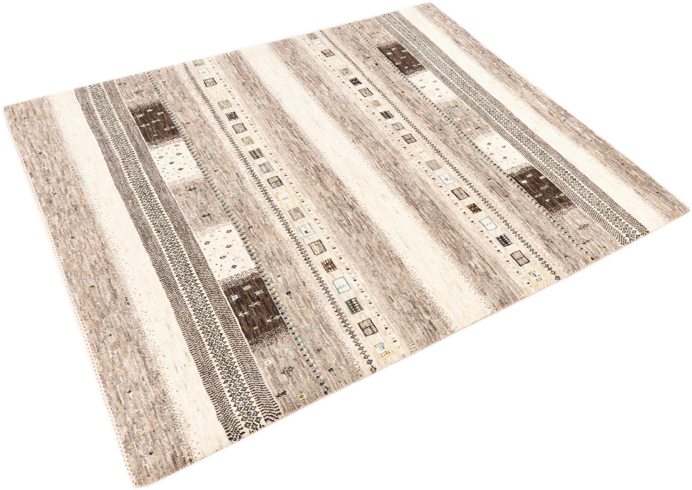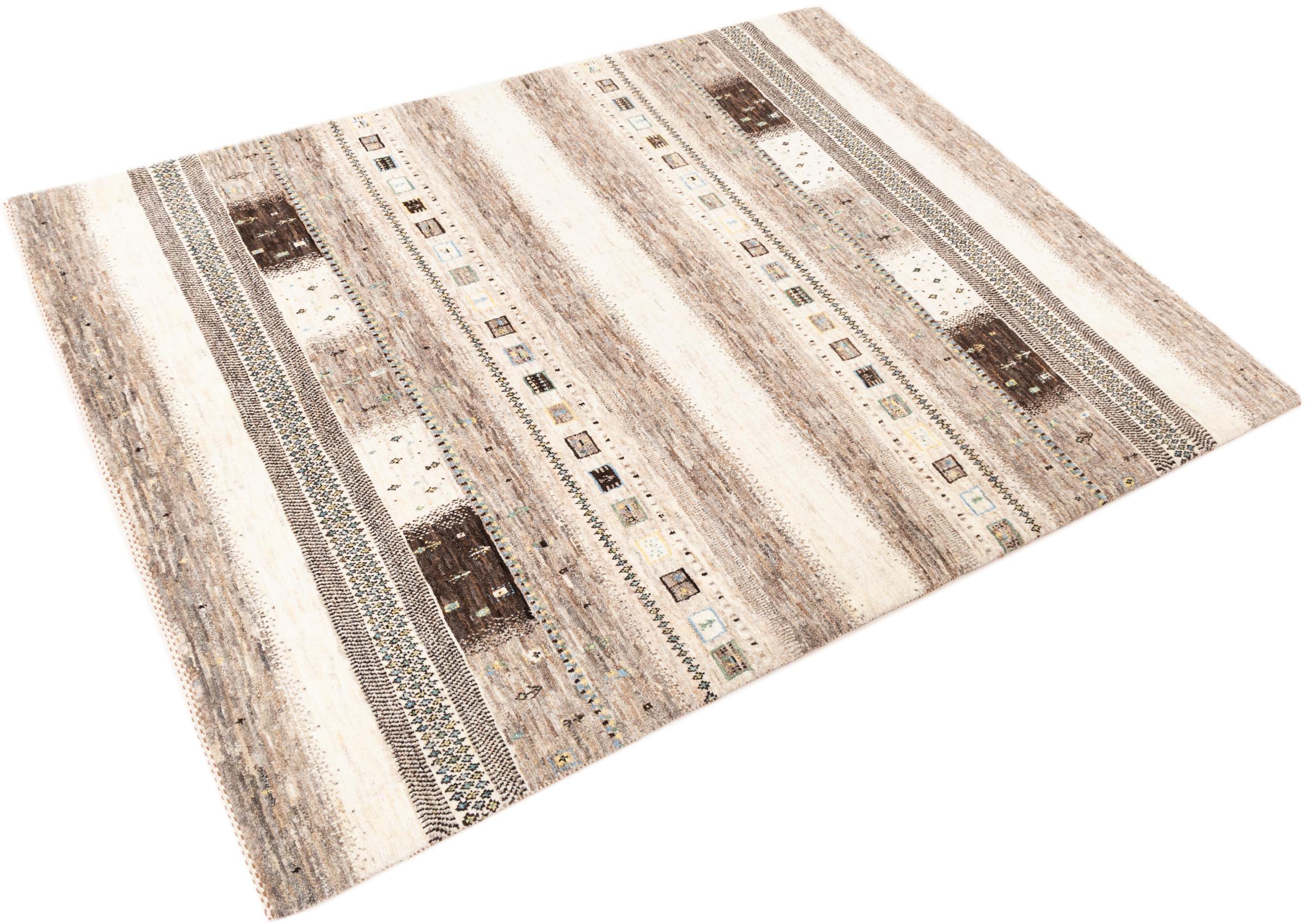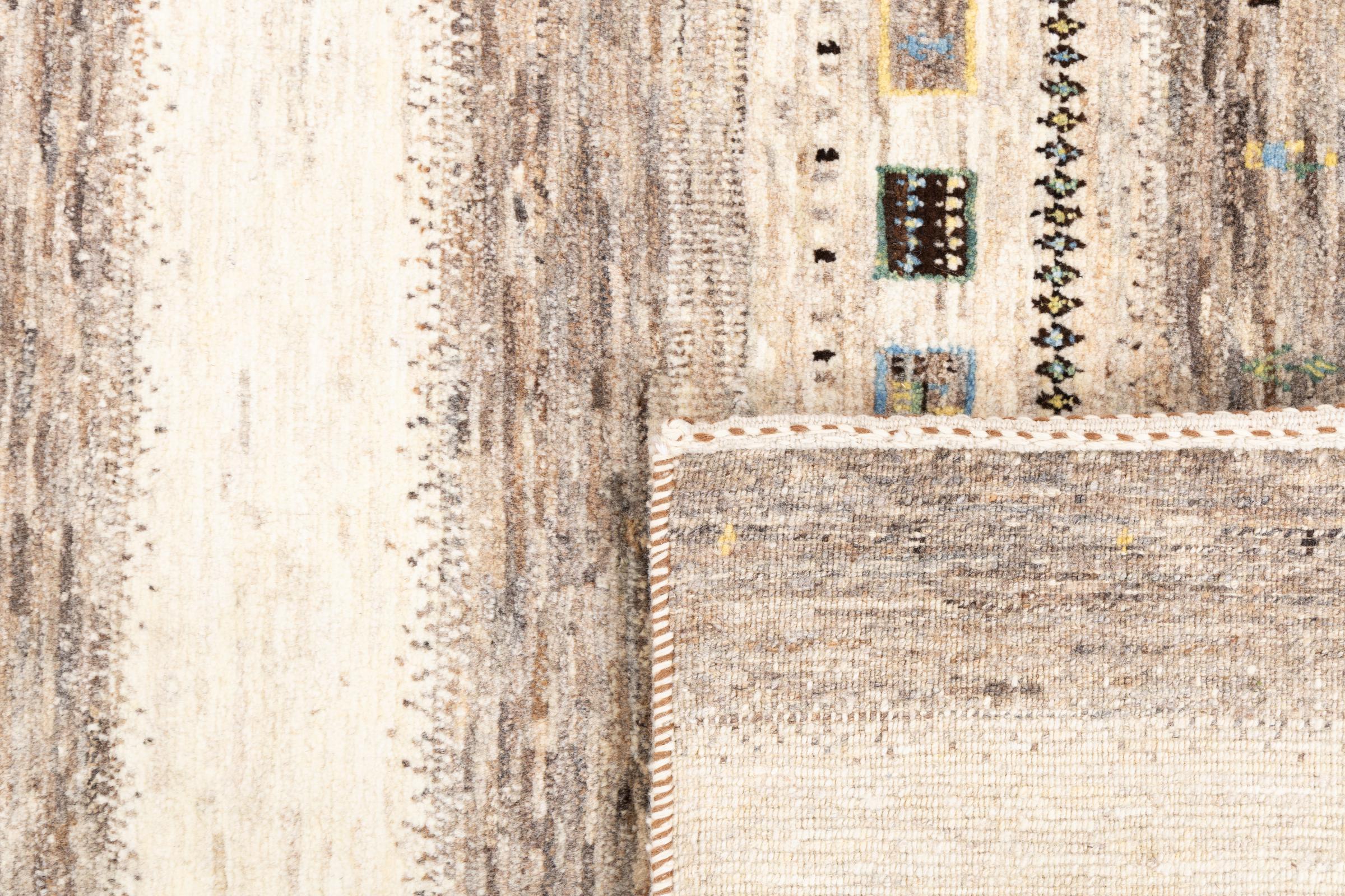 Ten piękny dywan jest perskim Gabbeh i dlatego należy do najwyższej jakości dywanów Gabbeh. Dywany są wiązane przez nomadów lub pół-nomadzi w Iranie zgodnie z tradycyjnym rzemiosłem. Proste motywy i wzory są w większości inspirowane bezpośrednim otoczeniem nomadów. Na przykład wielbłądy, drzewa lub krzewy można znaleźć na tradycyjnych dywanach. Perskie dywany Gabbeh wykonane są z wełny pochodzącej z lokalnie hodowanych stad owiec. Wełna jest więc w większości przypadków nadal obracana ręcznie. Tak więc każdy z tych orientalnych dywanów uosabia unikalny charakter wielowiekowej kultury.