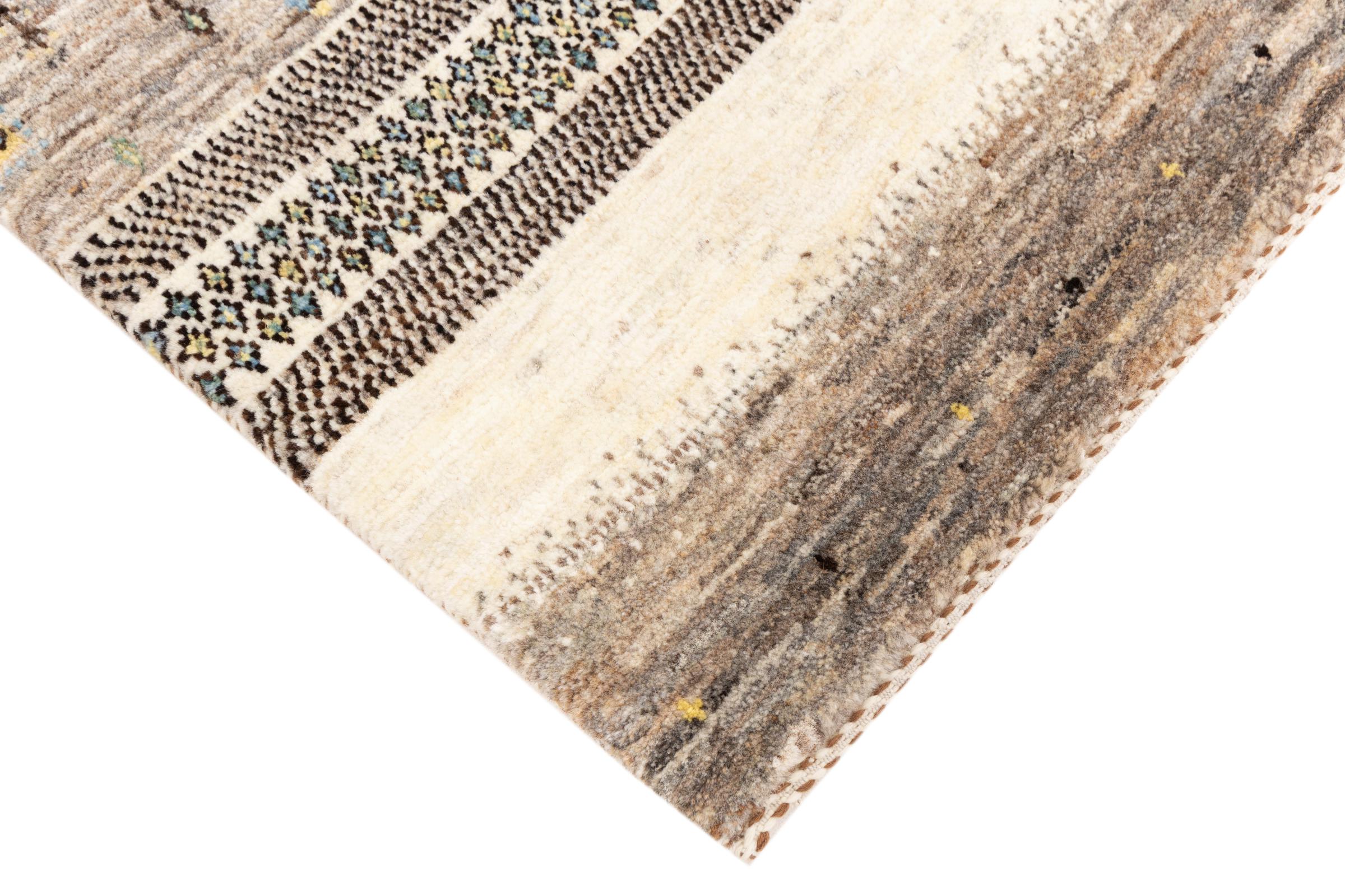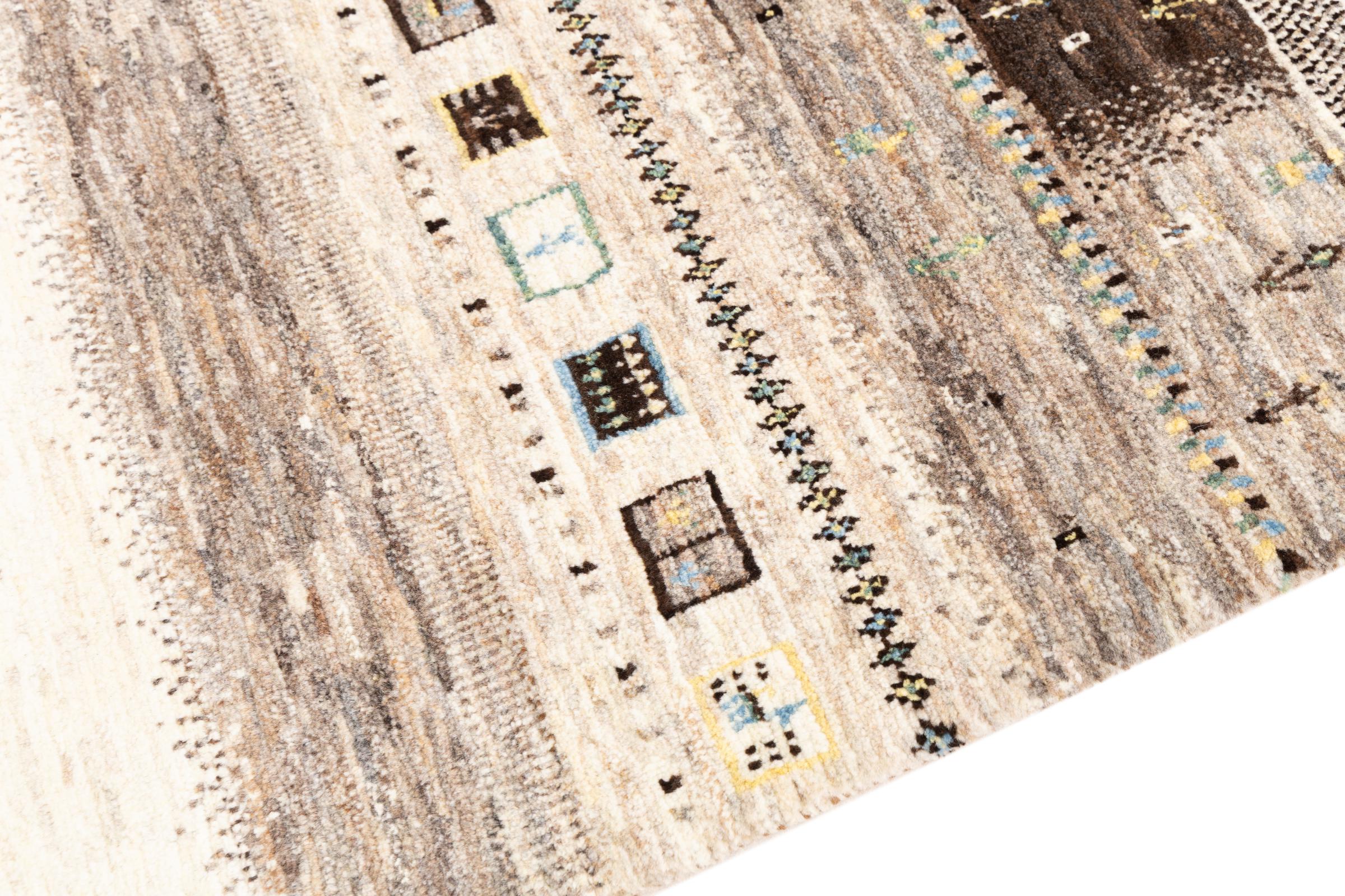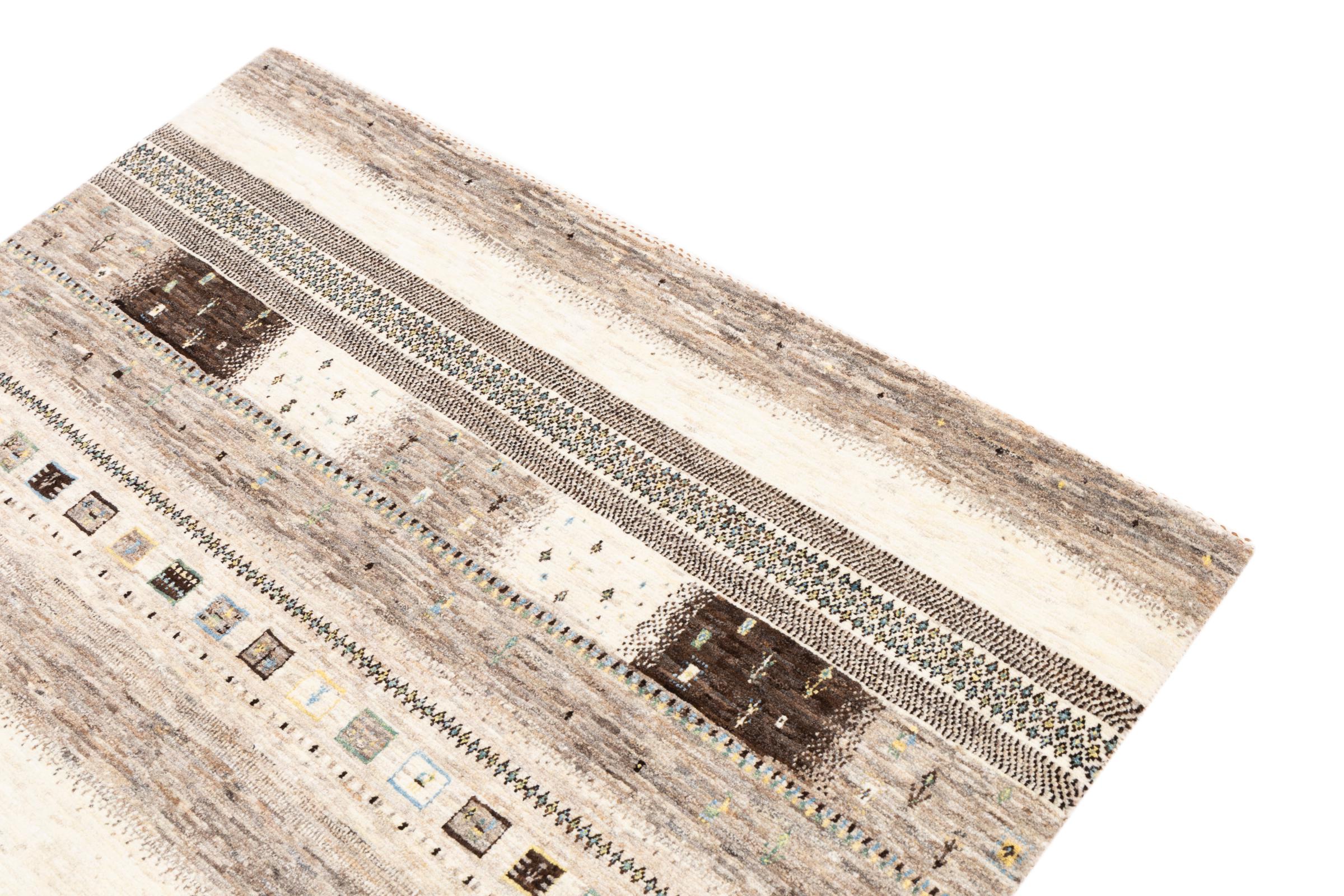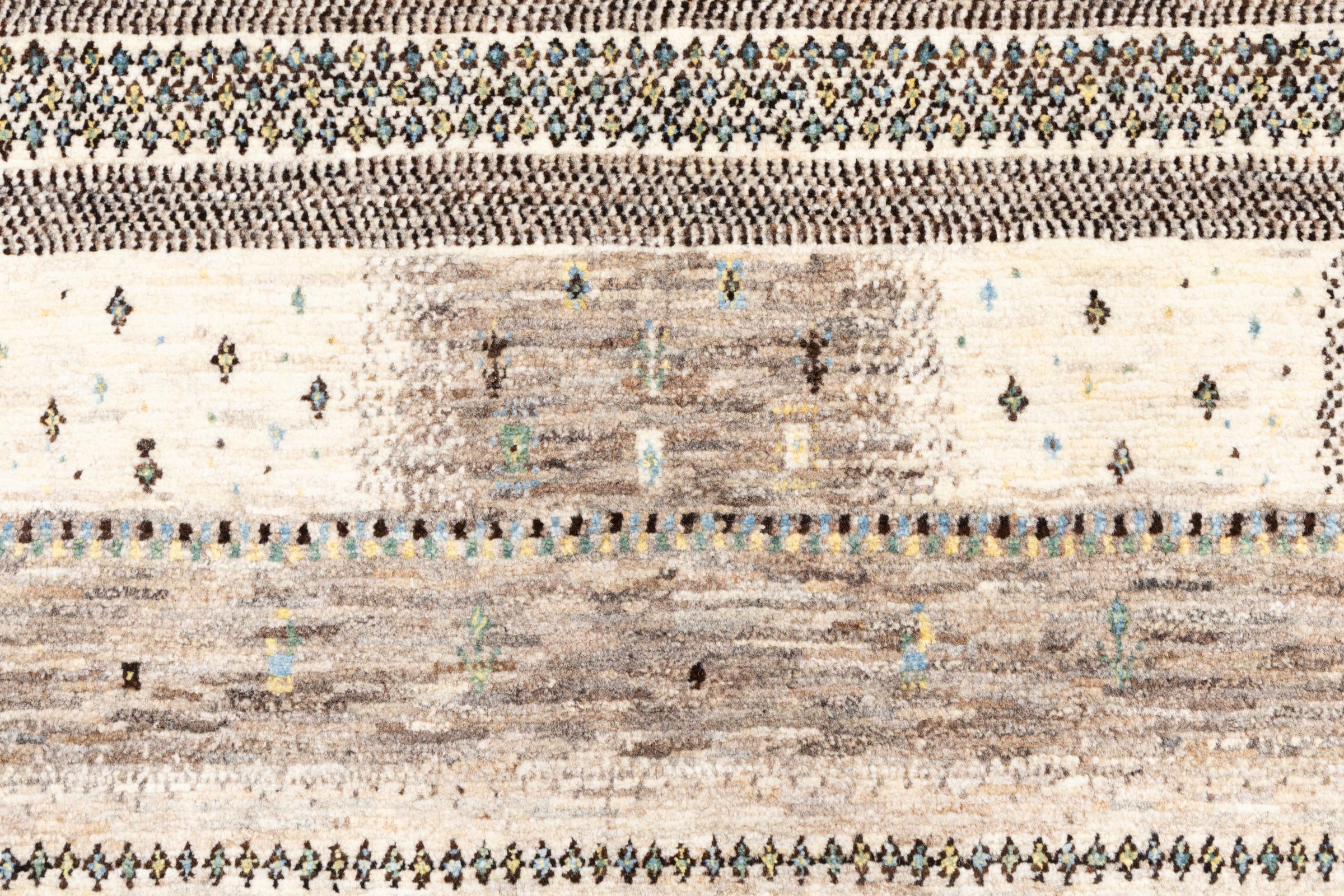 Ten piękny dywan jest perskim Gabbeh i dlatego należy do najwyższej jakości dywanów Gabbeh. Dywany są wiązane przez nomadów lub pół-nomadzi w Iranie zgodnie z tradycyjnym rzemiosłem. Proste motywy i wzory są w większości inspirowane bezpośrednim otoczeniem nomadów. Na przykład wielbłądy, drzewa lub krzewy można znaleźć na tradycyjnych dywanach. Perskie dywany Gabbeh wykonane są z wełny pochodzącej z lokalnie hodowanych stad owiec. Wełna jest więc w większości przypadków nadal obracana ręcznie. Tak więc każdy z tych orientalnych dywanów uosabia unikalny charakter wielowiekowej kultury.