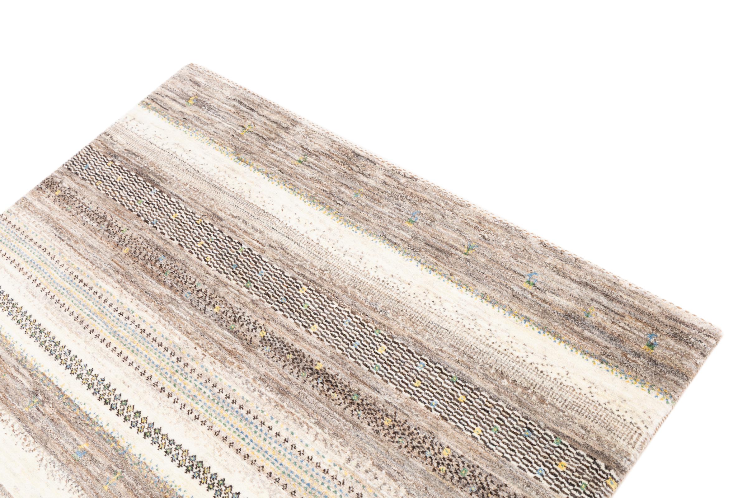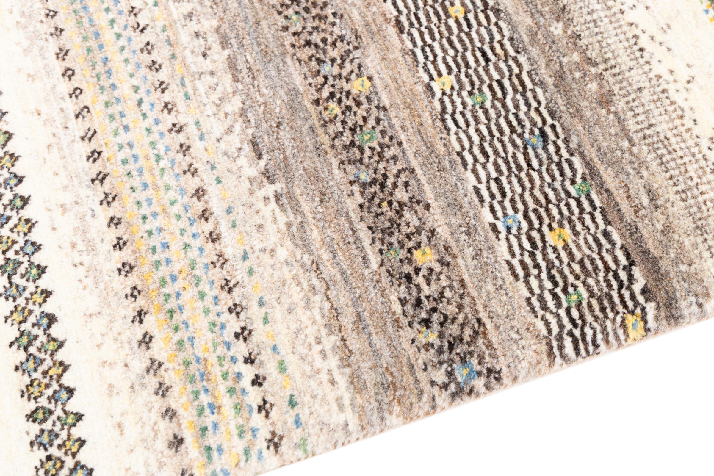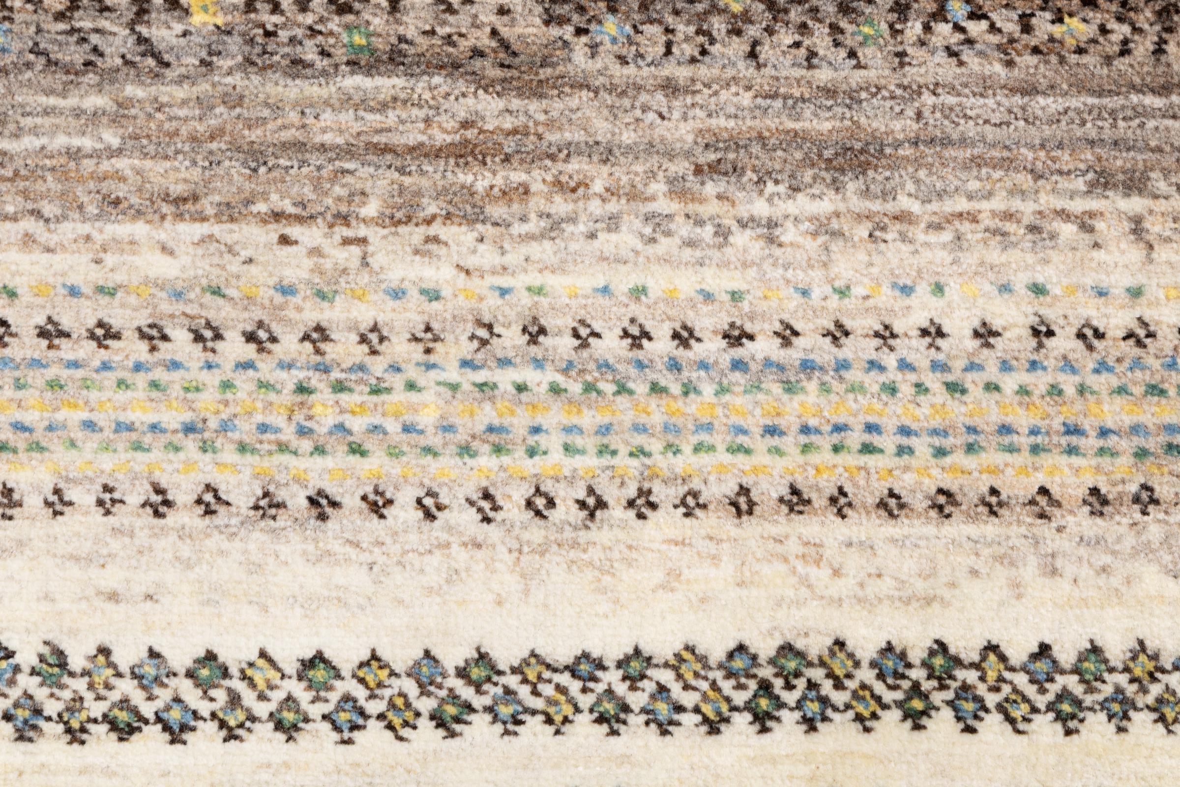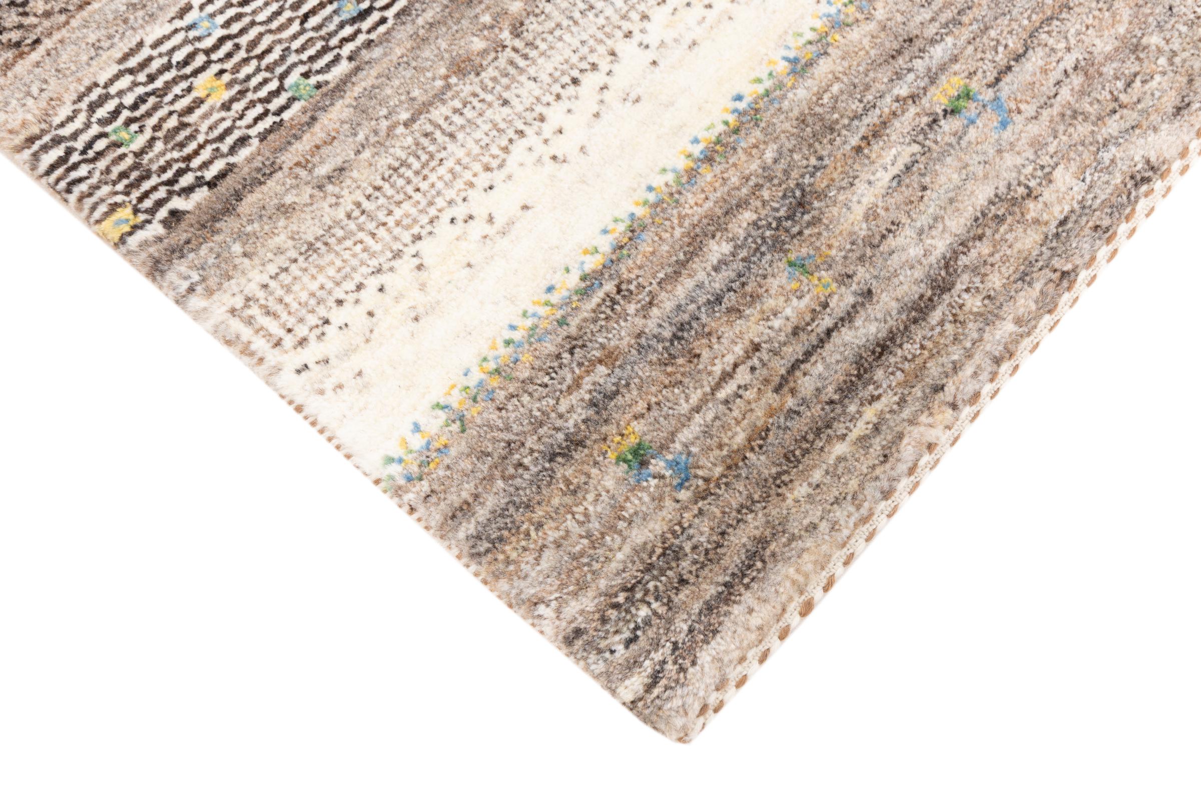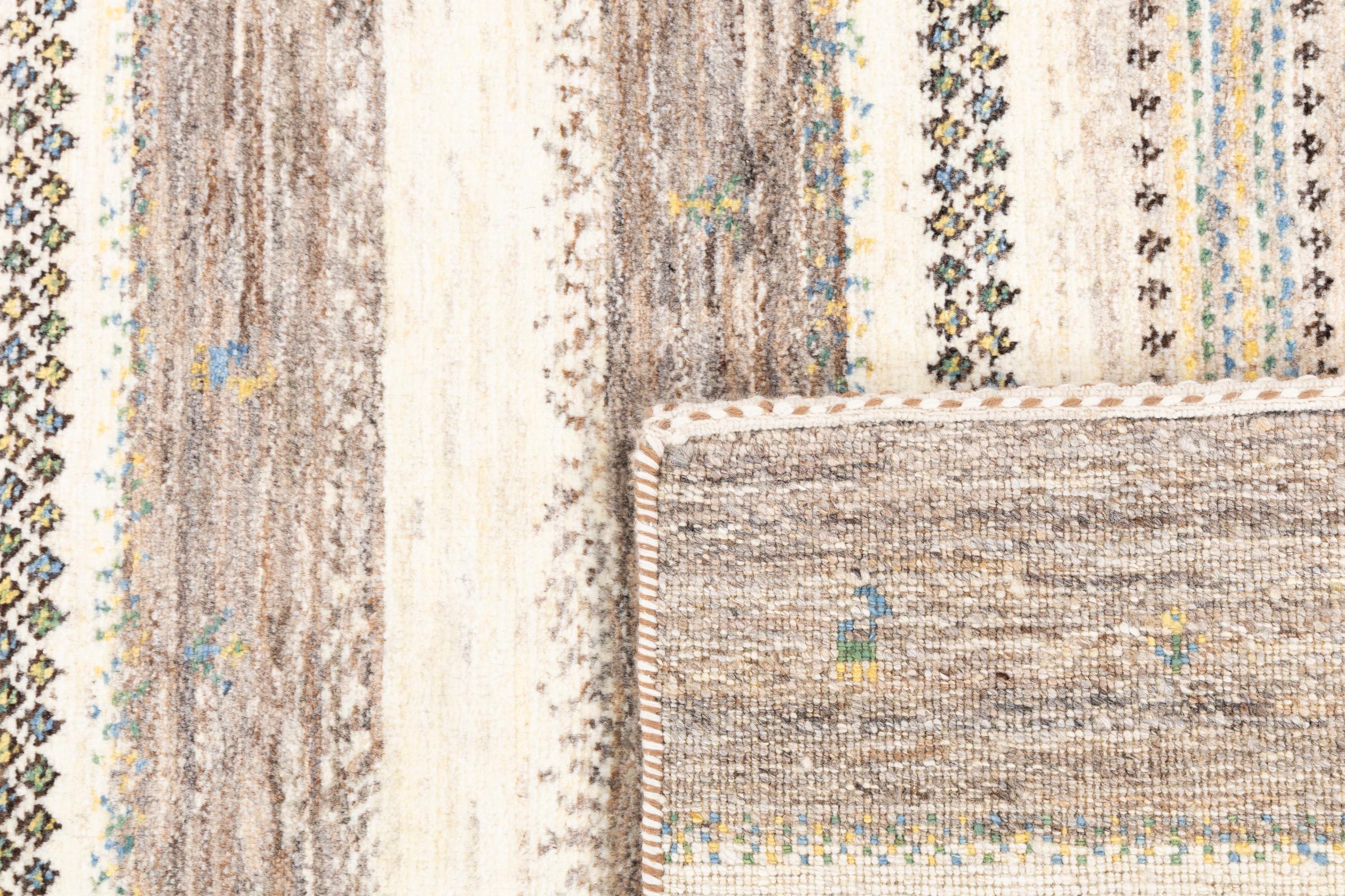 Ten piękny dywan jest perskim Gabbeh i dlatego należy do najwyższej jakości dywanów Gabbeh. Dywany są wiązane przez nomadów lub pół-nomadzi w Iranie zgodnie z tradycyjnym rzemiosłem. Proste motywy i wzory są w większości inspirowane bezpośrednim otoczeniem nomadów. Na przykład wielbłądy, drzewa lub krzewy można znaleźć na tradycyjnych dywanach. Perskie dywany Gabbeh wykonane są z wełny pochodzącej z lokalnie hodowanych stad owiec. Wełna jest więc w większości przypadków nadal obracana ręcznie. Tak więc każdy z tych orientalnych dywanów uosabia unikalny charakter wielowiekowej kultury.