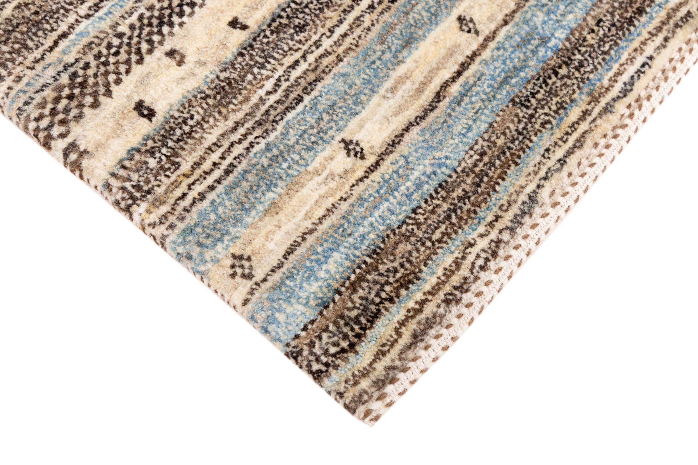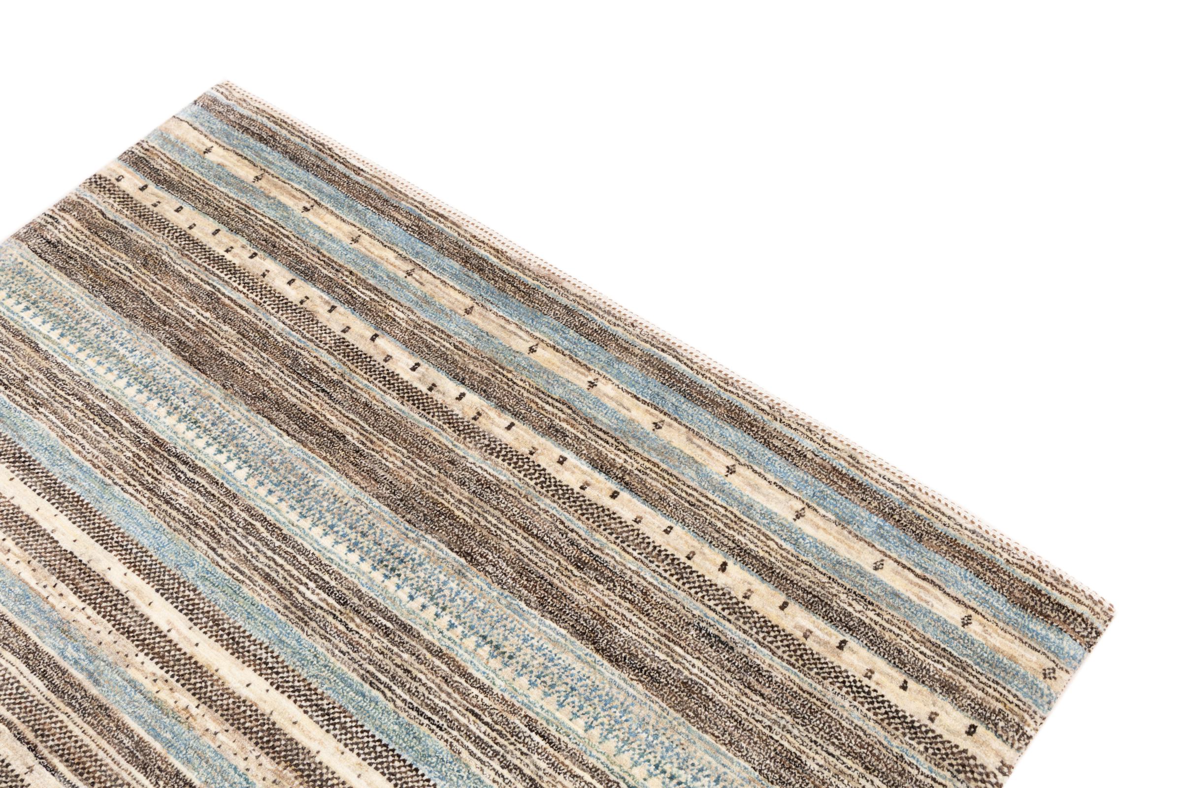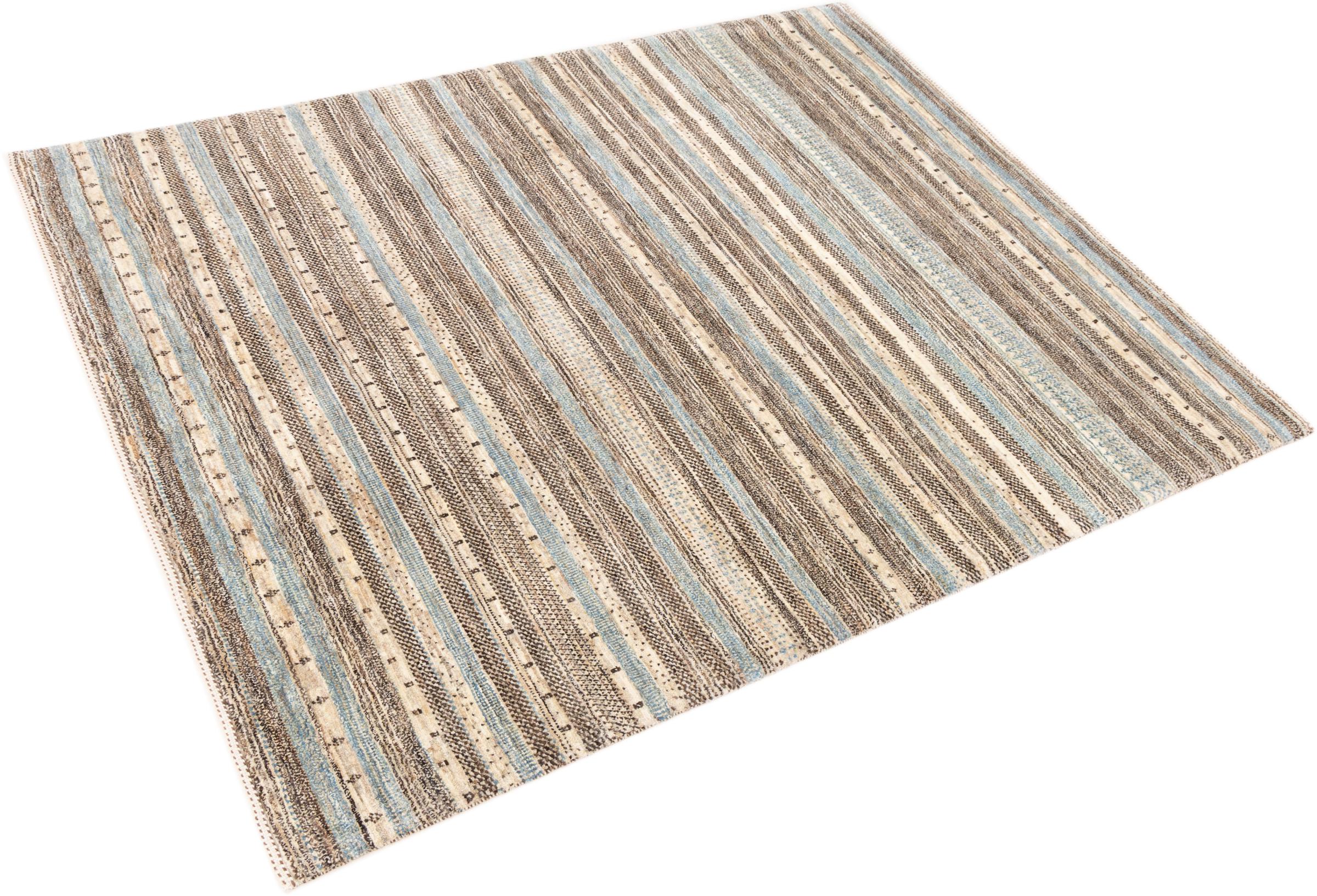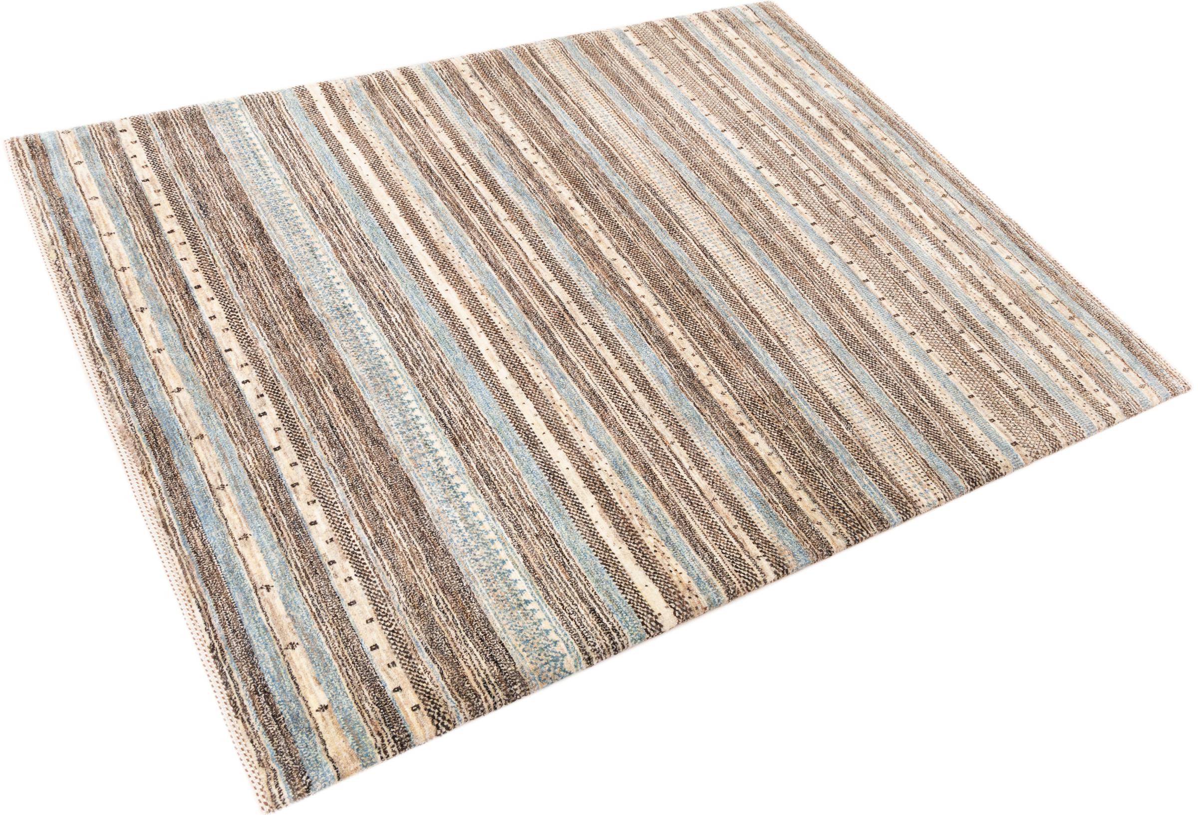 Ten piękny dywan jest perskim Gabbeh i dlatego należy do najwyższej jakości dywanów Gabbeh. Dywany są wiązane przez nomadów lub pół-nomadzi w Iranie zgodnie z tradycyjnym rzemiosłem. Proste motywy i wzory są w większości inspirowane bezpośrednim otoczeniem nomadów. Na przykład wielbłądy, drzewa lub krzewy można znaleźć na tradycyjnych dywanach. Perskie dywany Gabbeh wykonane są z wełny pochodzącej z lokalnie hodowanych stad owiec. Wełna jest więc w większości przypadków nadal obracana ręcznie. Tak więc każdy z tych orientalnych dywanów uosabia unikalny charakter wielowiekowej kultury.