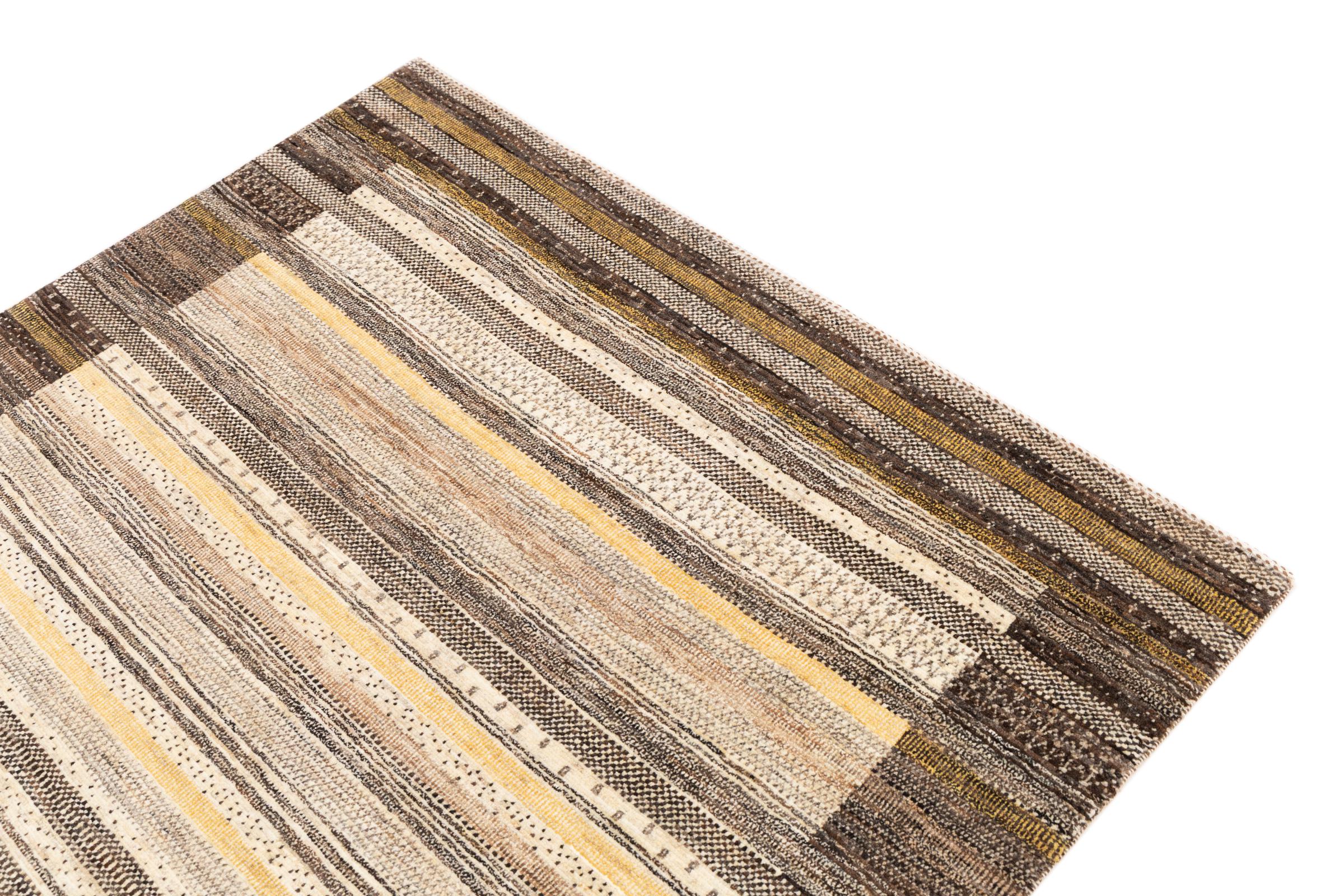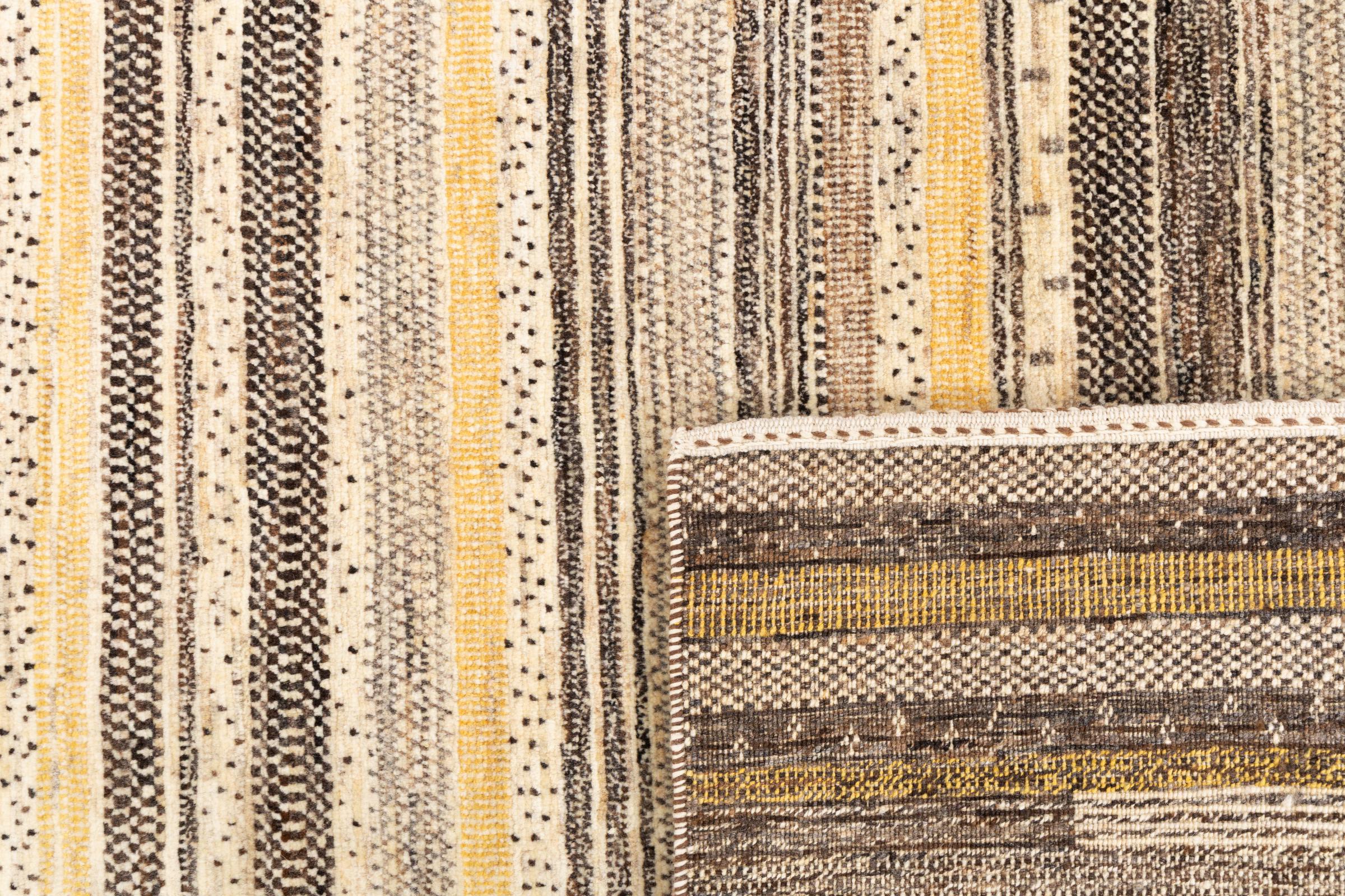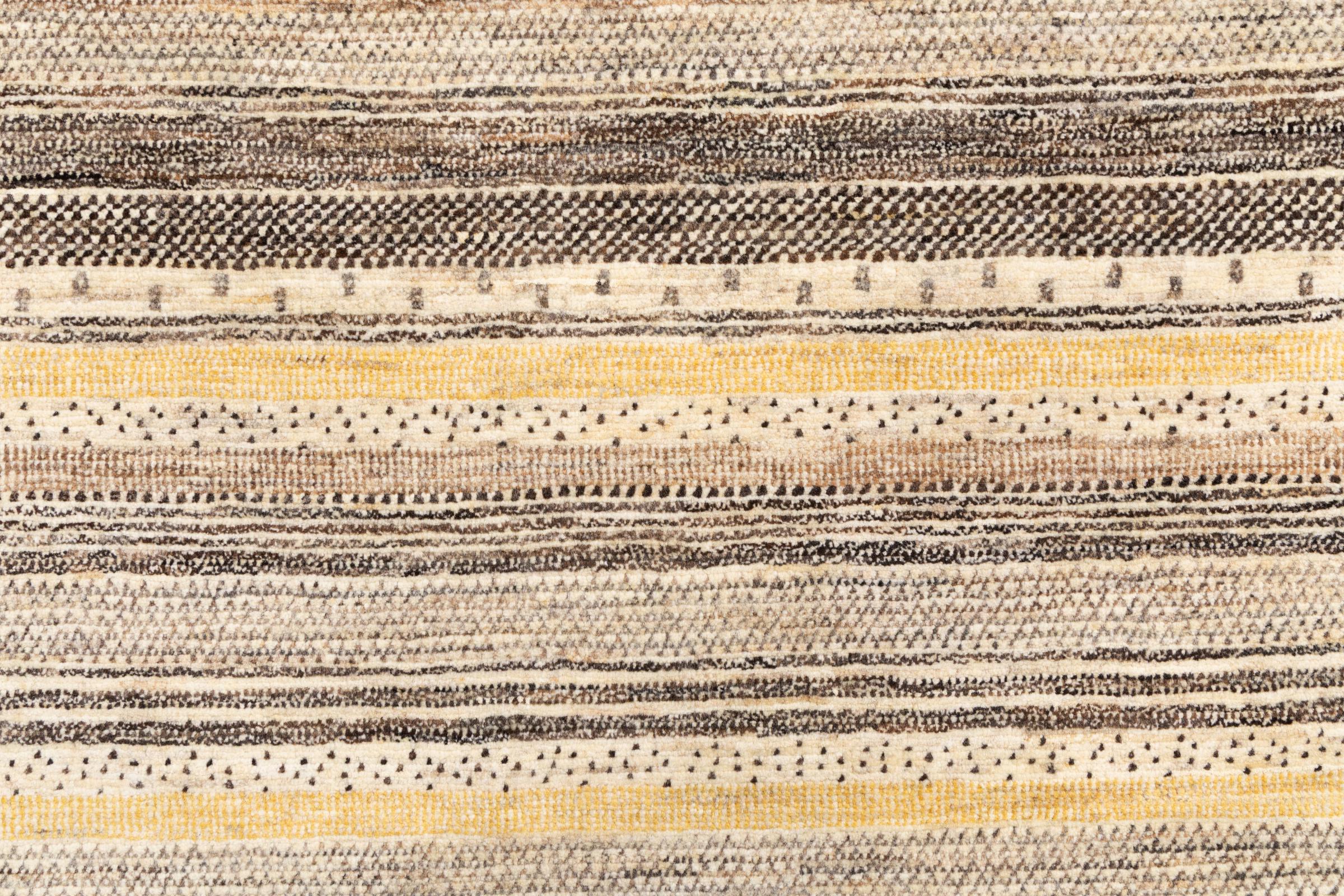 Ten piękny dywan jest perskim Gabbeh i dlatego należy do najwyższej jakości dywanów Gabbeh. Dywany są wiązane przez nomadów lub pół-nomadzi w Iranie zgodnie z tradycyjnym rzemiosłem. Proste motywy i wzory są w większości inspirowane bezpośrednim otoczeniem nomadów. Na przykład wielbłądy, drzewa lub krzewy można znaleźć na tradycyjnych dywanach. Perskie dywany Gabbeh wykonane są z wełny pochodzącej z lokalnie hodowanych stad owiec. Wełna jest więc w większości przypadków nadal obracana ręcznie. Tak więc każdy z tych orientalnych dywanów uosabia unikalny charakter wielowiekowej kultury.