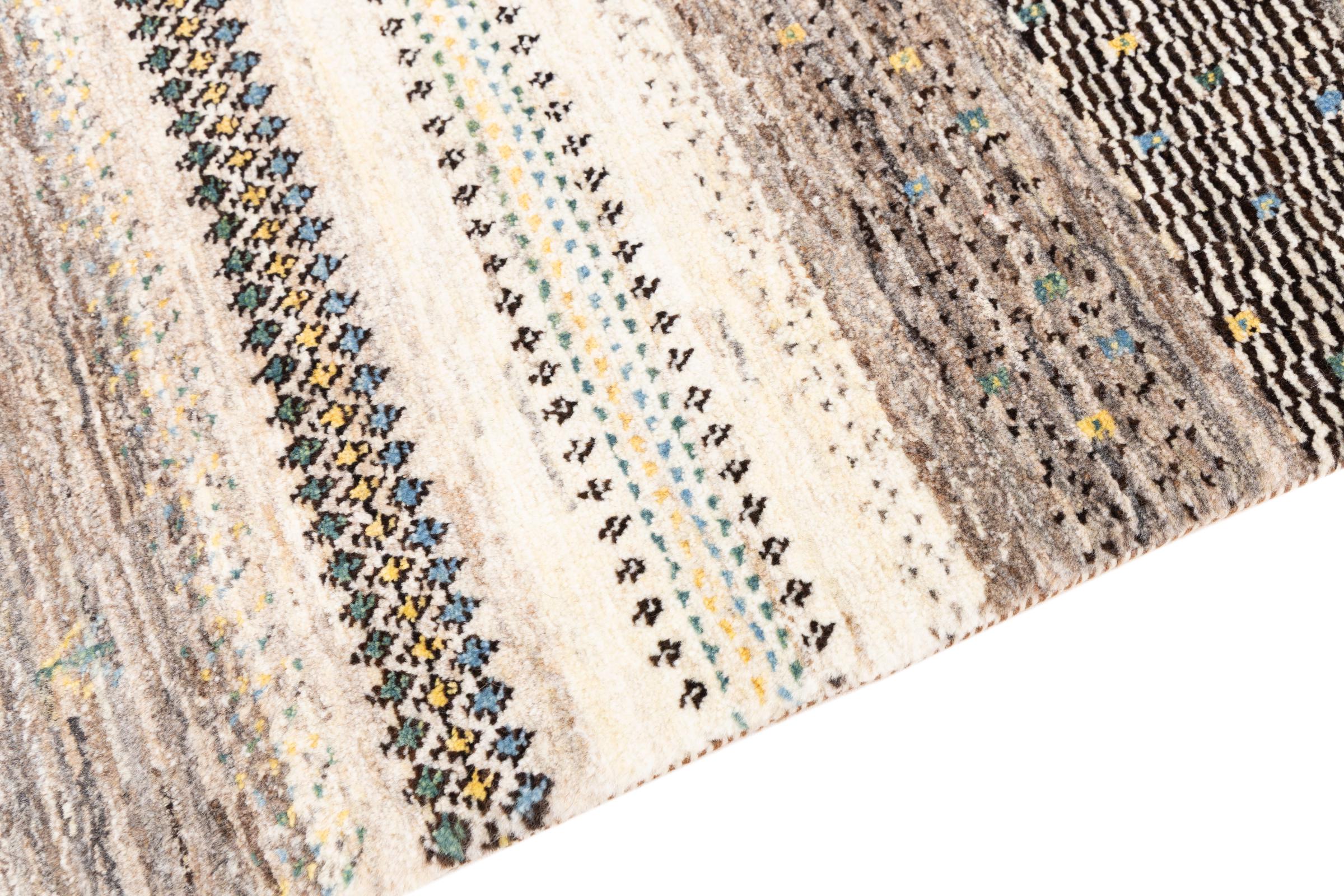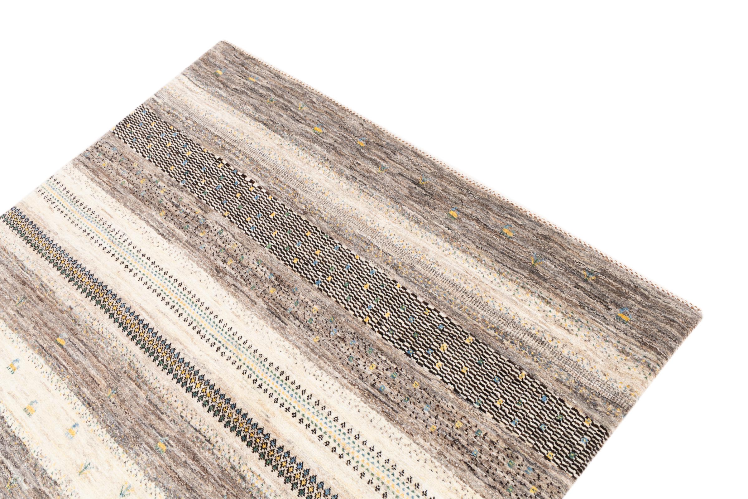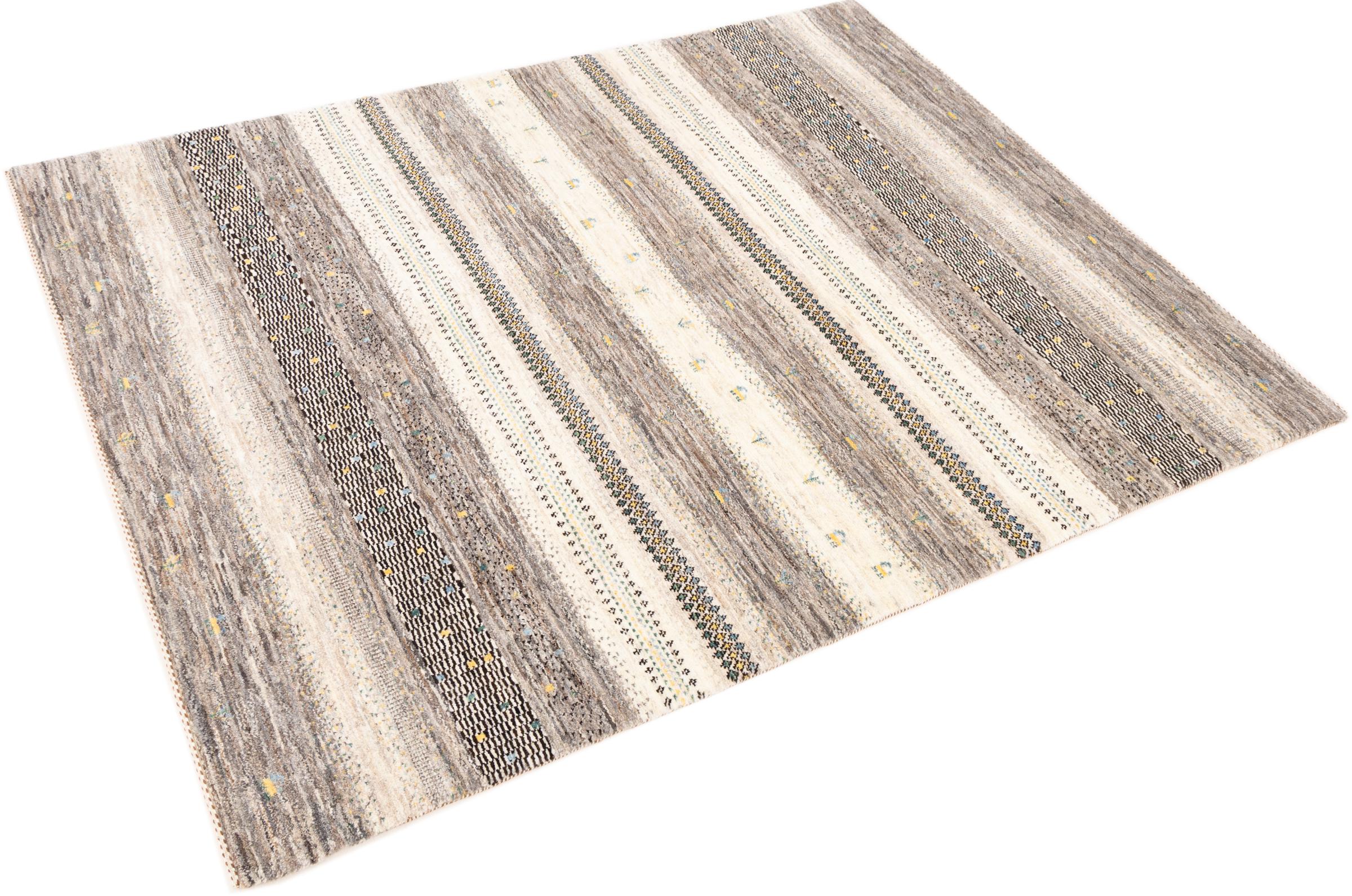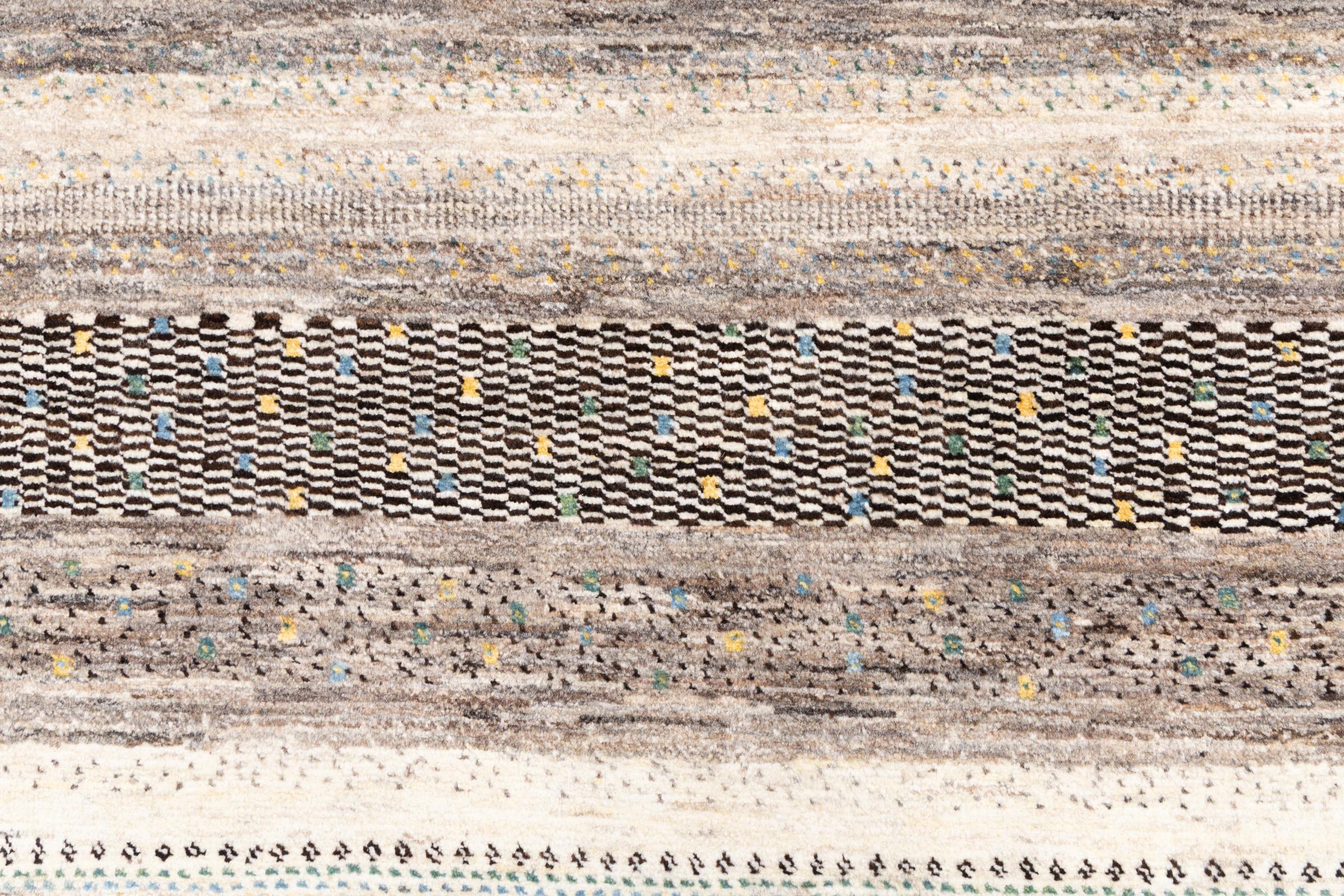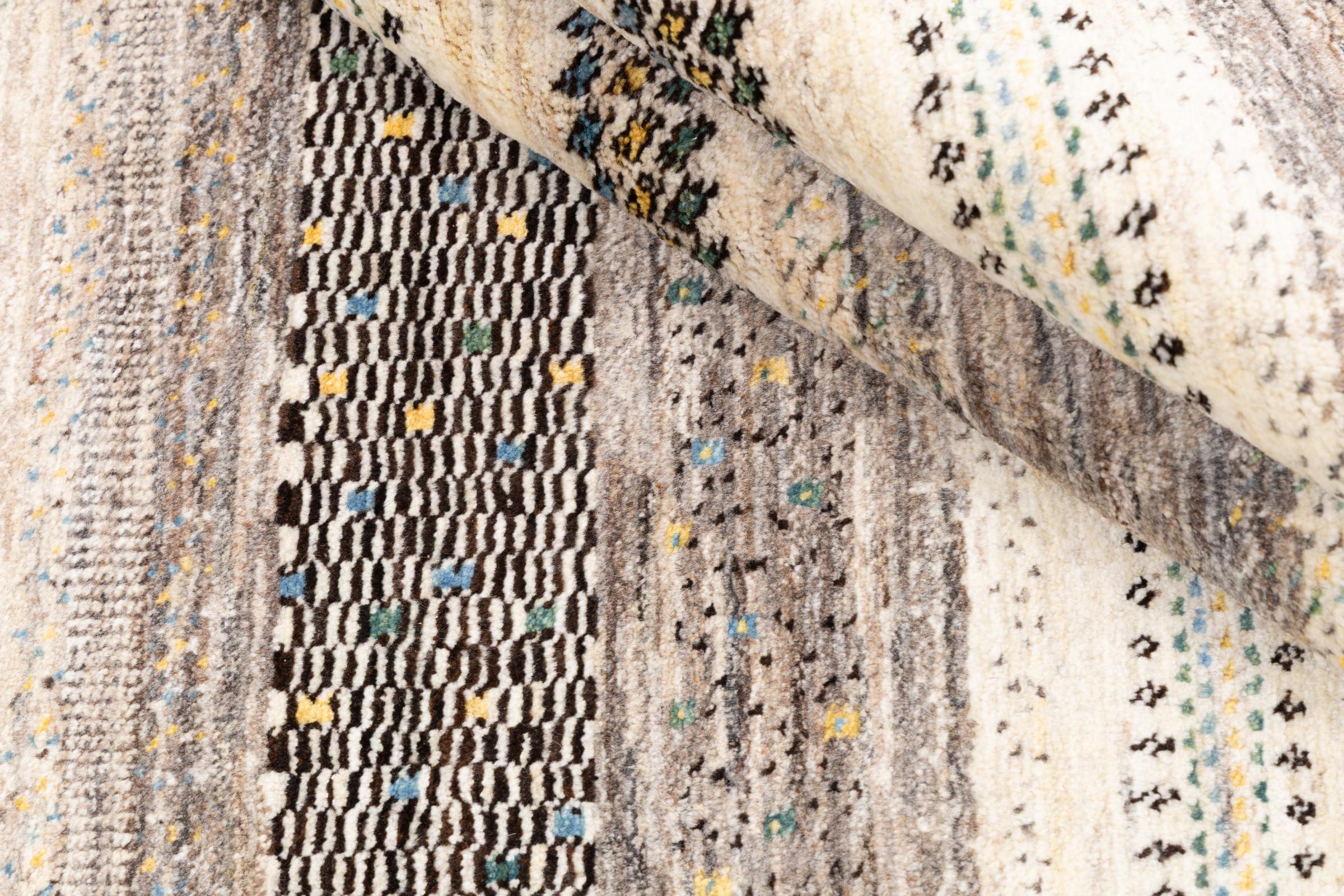 Ten piękny dywan jest perskim Gabbeh i dlatego należy do najwyższej jakości dywanów Gabbeh. Dywany są wiązane przez nomadów lub pół-nomadzi w Iranie zgodnie z tradycyjnym rzemiosłem. Proste motywy i wzory są w większości inspirowane bezpośrednim otoczeniem nomadów. Na przykład wielbłądy, drzewa lub krzewy można znaleźć na tradycyjnych dywanach. Perskie dywany Gabbeh wykonane są z wełny pochodzącej z lokalnie hodowanych stad owiec. Wełna jest więc w większości przypadków nadal obracana ręcznie. Tak więc każdy z tych orientalnych dywanów uosabia unikalny charakter wielowiekowej kultury.