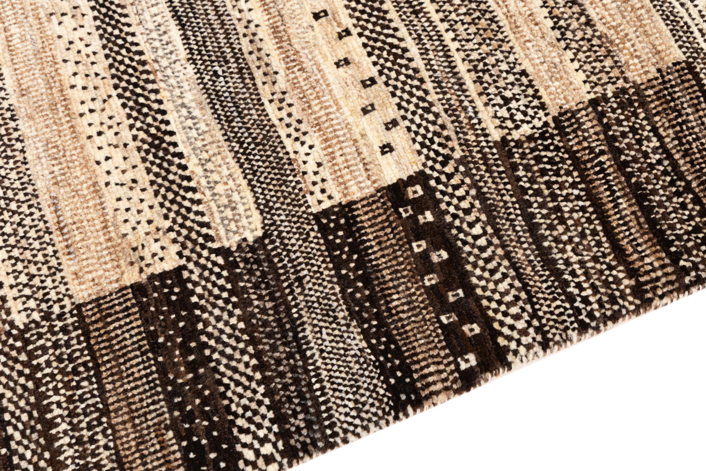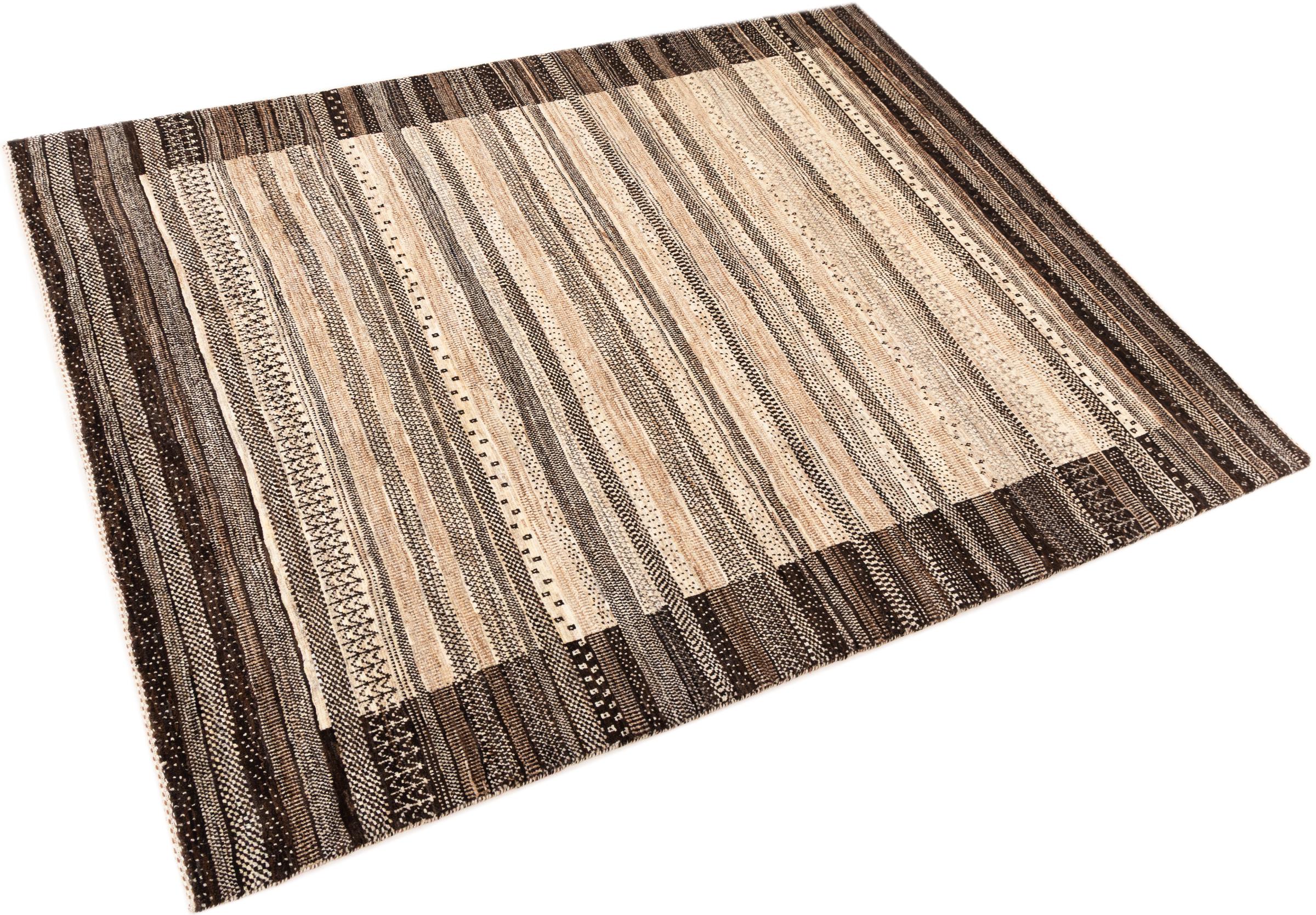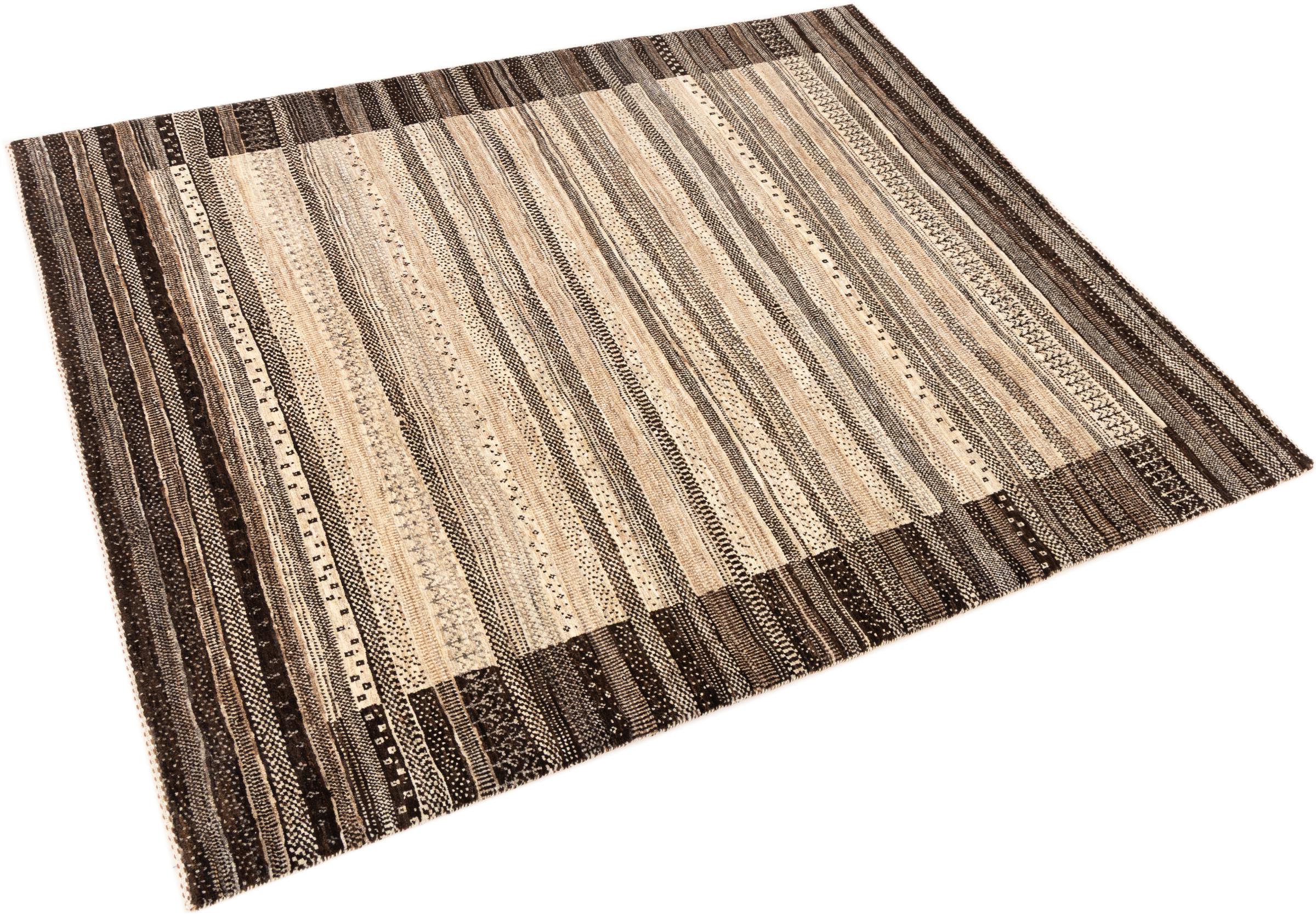 Ten piękny dywan jest perskim Gabbeh i dlatego należy do najwyższej jakości dywanów Gabbeh. Dywany są wiązane przez nomadów lub pół-nomadzi w Iranie zgodnie z tradycyjnym rzemiosłem. Proste motywy i wzory są w większości inspirowane bezpośrednim otoczeniem nomadów. Na przykład wielbłądy, drzewa lub krzewy można znaleźć na tradycyjnych dywanach. Perskie dywany Gabbeh wykonane są z wełny pochodzącej z lokalnie hodowanych stad owiec. Wełna jest więc w większości przypadków nadal obracana ręcznie. Tak więc każdy z tych orientalnych dywanów uosabia unikalny charakter wielowiekowej kultury.