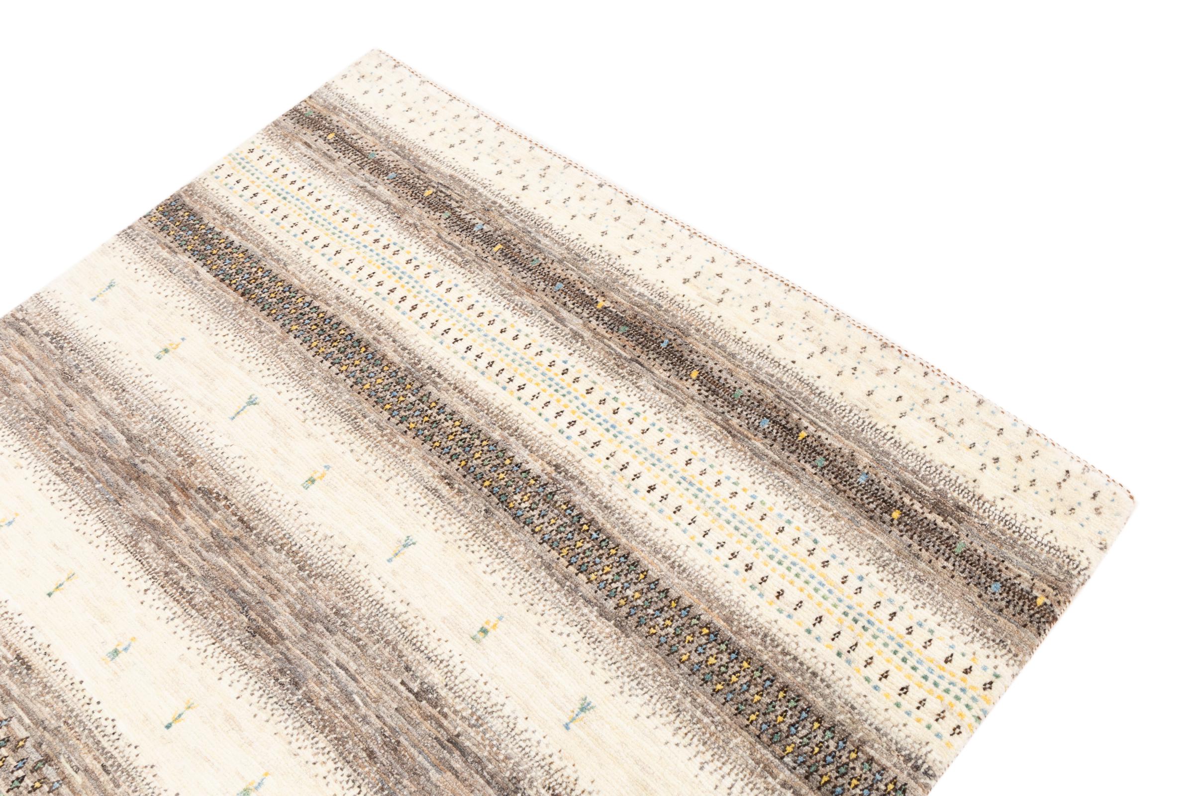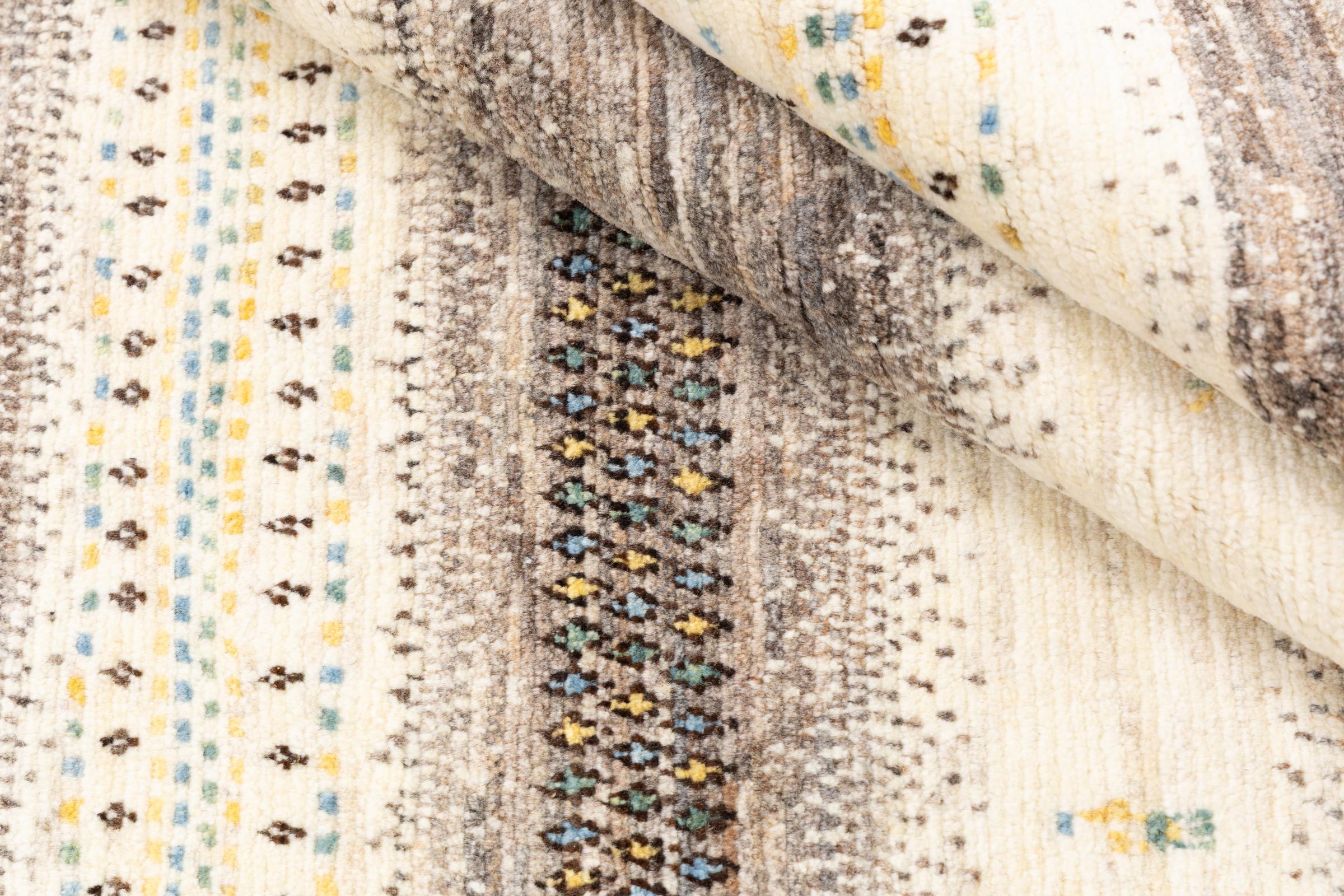 Ten piękny dywan jest perskim Gabbeh i dlatego należy do najwyższej jakości dywanów Gabbeh. Dywany są wiązane przez nomadów lub pół-nomadzi w Iranie zgodnie z tradycyjnym rzemiosłem. Proste motywy i wzory są w większości inspirowane bezpośrednim otoczeniem nomadów. Na przykład wielbłądy, drzewa lub krzewy można znaleźć na tradycyjnych dywanach. Perskie dywany Gabbeh wykonane są z wełny pochodzącej z lokalnie hodowanych stad owiec. Wełna jest więc w większości przypadków nadal obracana ręcznie. Tak więc każdy z tych orientalnych dywanów uosabia unikalny charakter wielowiekowej kultury.