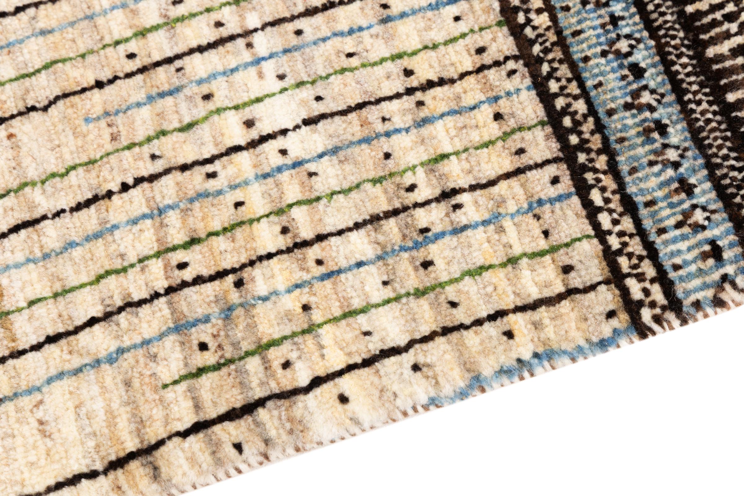 Ten piękny dywan jest perskim Gabbeh i dlatego należy do najwyższej jakości dywanów Gabbeh. Dywany są wiązane przez nomadów lub pół-nomadzi w Iranie zgodnie z tradycyjnym rzemiosłem. Proste motywy i wzory są w większości inspirowane bezpośrednim otoczeniem nomadów. Na przykład wielbłądy, drzewa lub krzewy można znaleźć na tradycyjnych dywanach. Perskie dywany Gabbeh wykonane są z wełny pochodzącej z lokalnie hodowanych stad owiec. Wełna jest więc w większości przypadków nadal obracana ręcznie. Tak więc każdy z tych orientalnych dywanów uosabia unikalny charakter wielowiekowej kultury.
