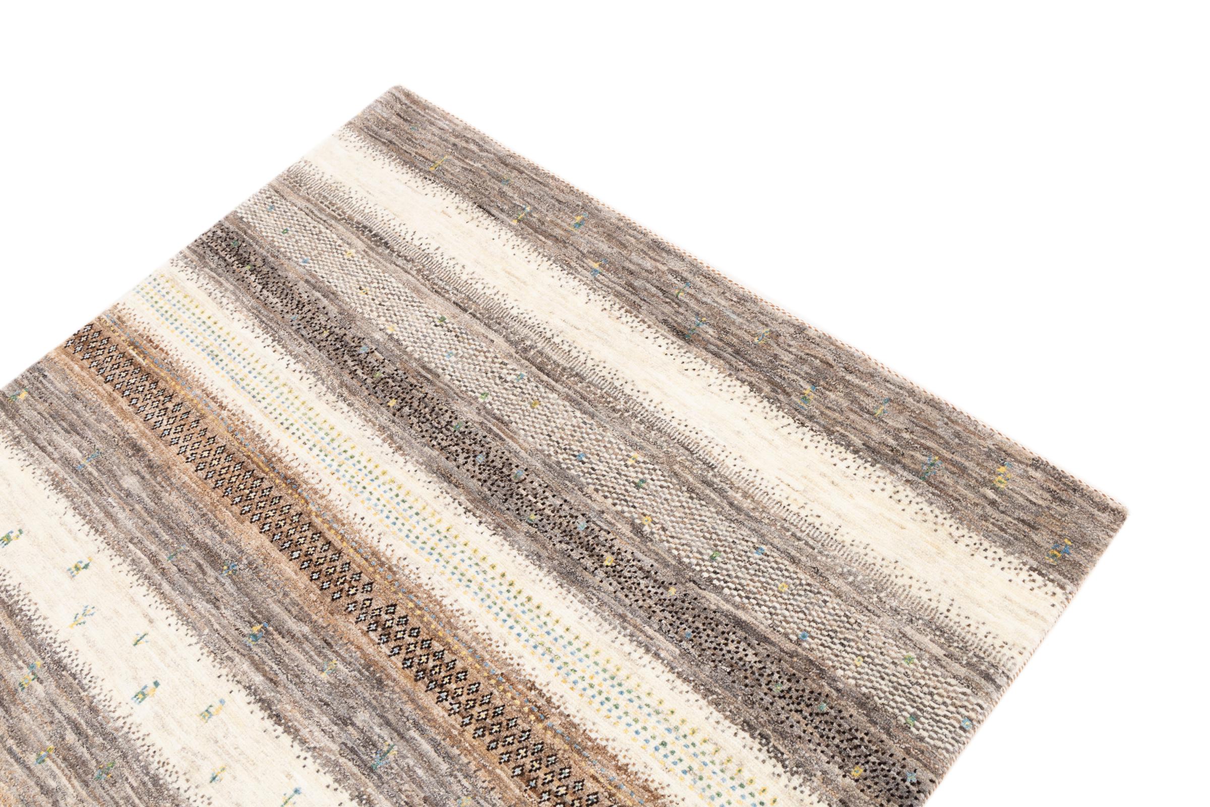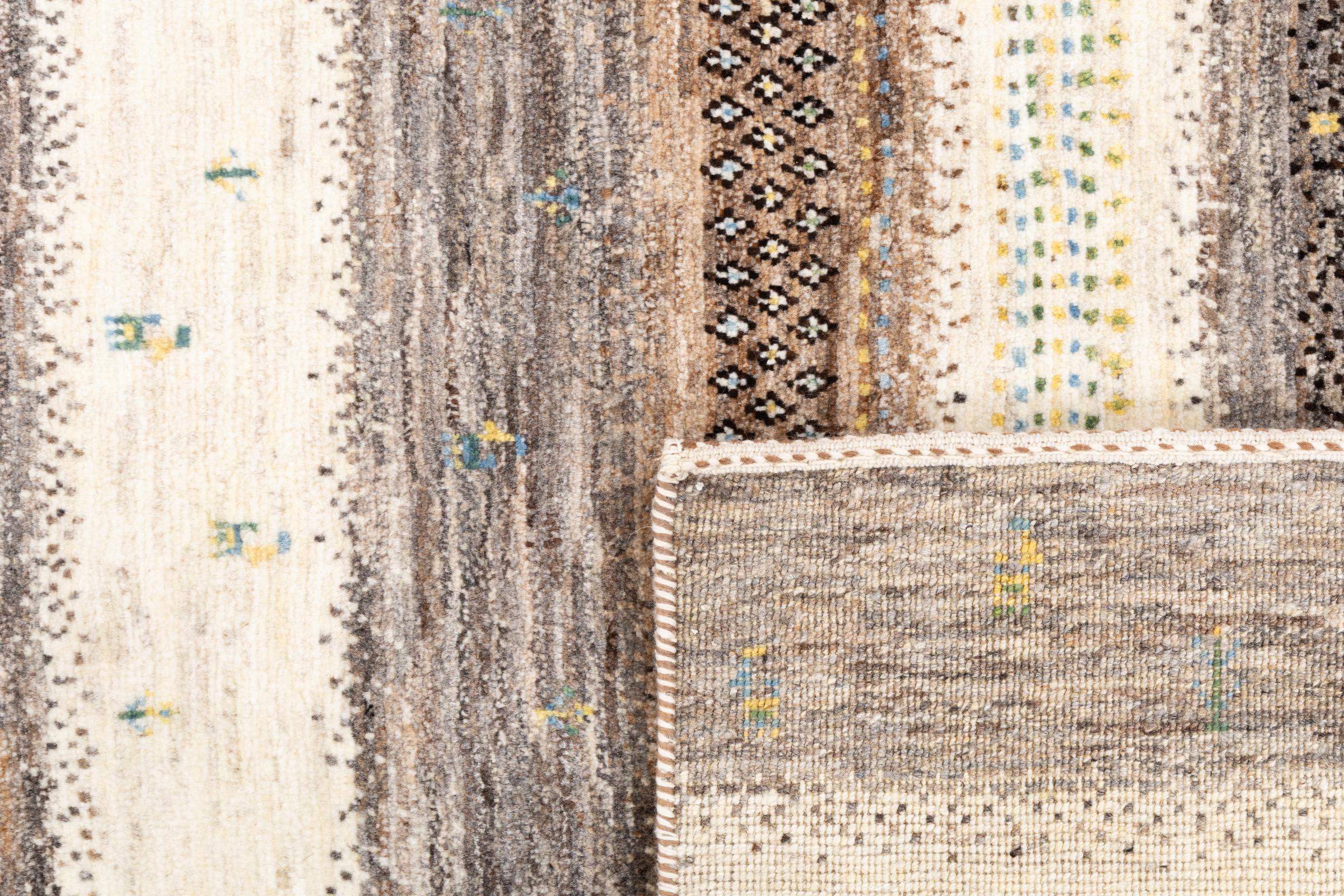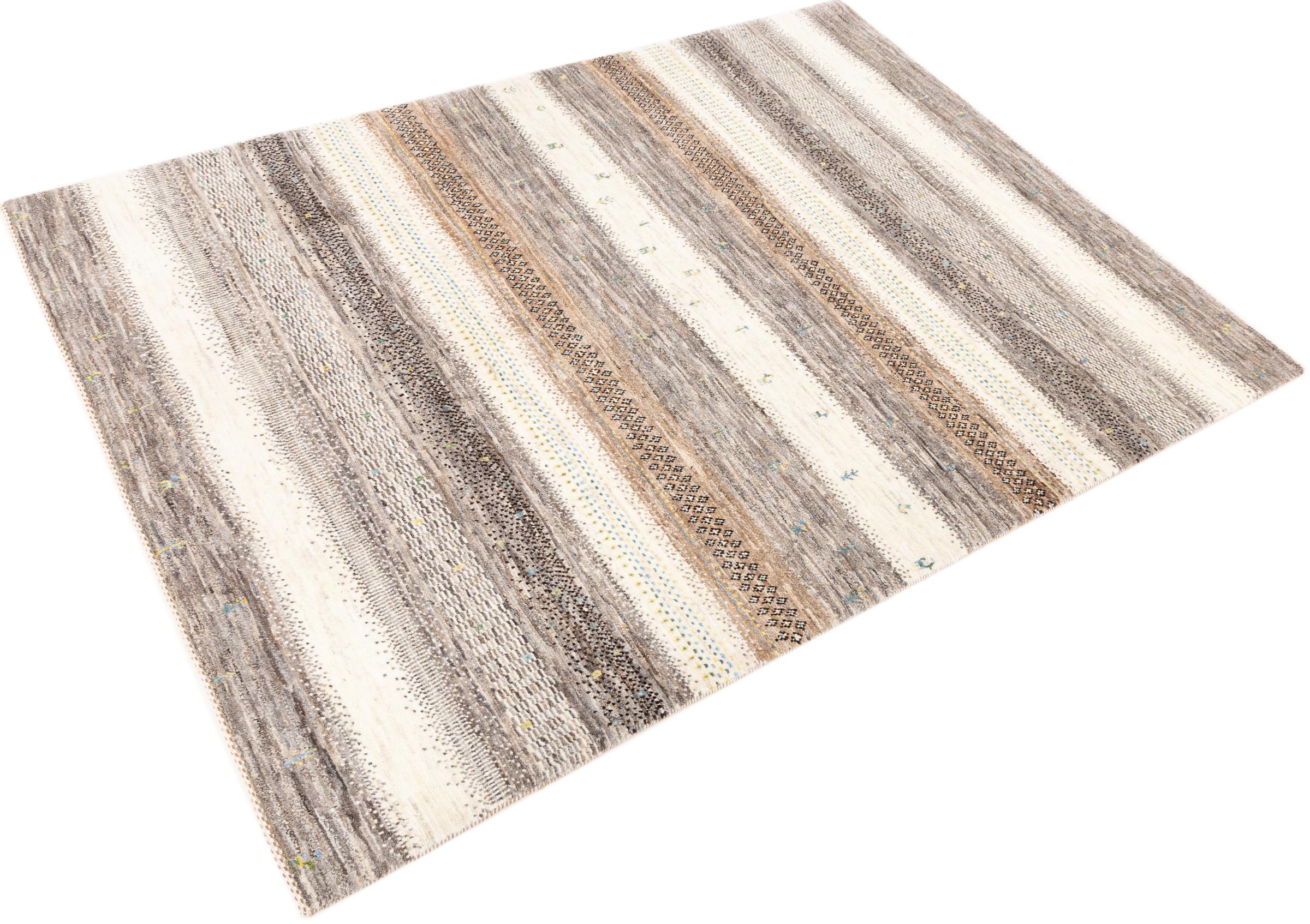 Ten piękny dywan jest perskim Gabbeh i dlatego należy do najwyższej jakości dywanów Gabbeh. Dywany są wiązane przez nomadów lub pół-nomadzi w Iranie zgodnie z tradycyjnym rzemiosłem. Proste motywy i wzory są w większości inspirowane bezpośrednim otoczeniem nomadów. Na przykład wielbłądy, drzewa lub krzewy można znaleźć na tradycyjnych dywanach. Perskie dywany Gabbeh wykonane są z wełny pochodzącej z lokalnie hodowanych stad owiec. Wełna jest więc w większości przypadków nadal obracana ręcznie. Tak więc każdy z tych orientalnych dywanów uosabia unikalny charakter wielowiekowej kultury.