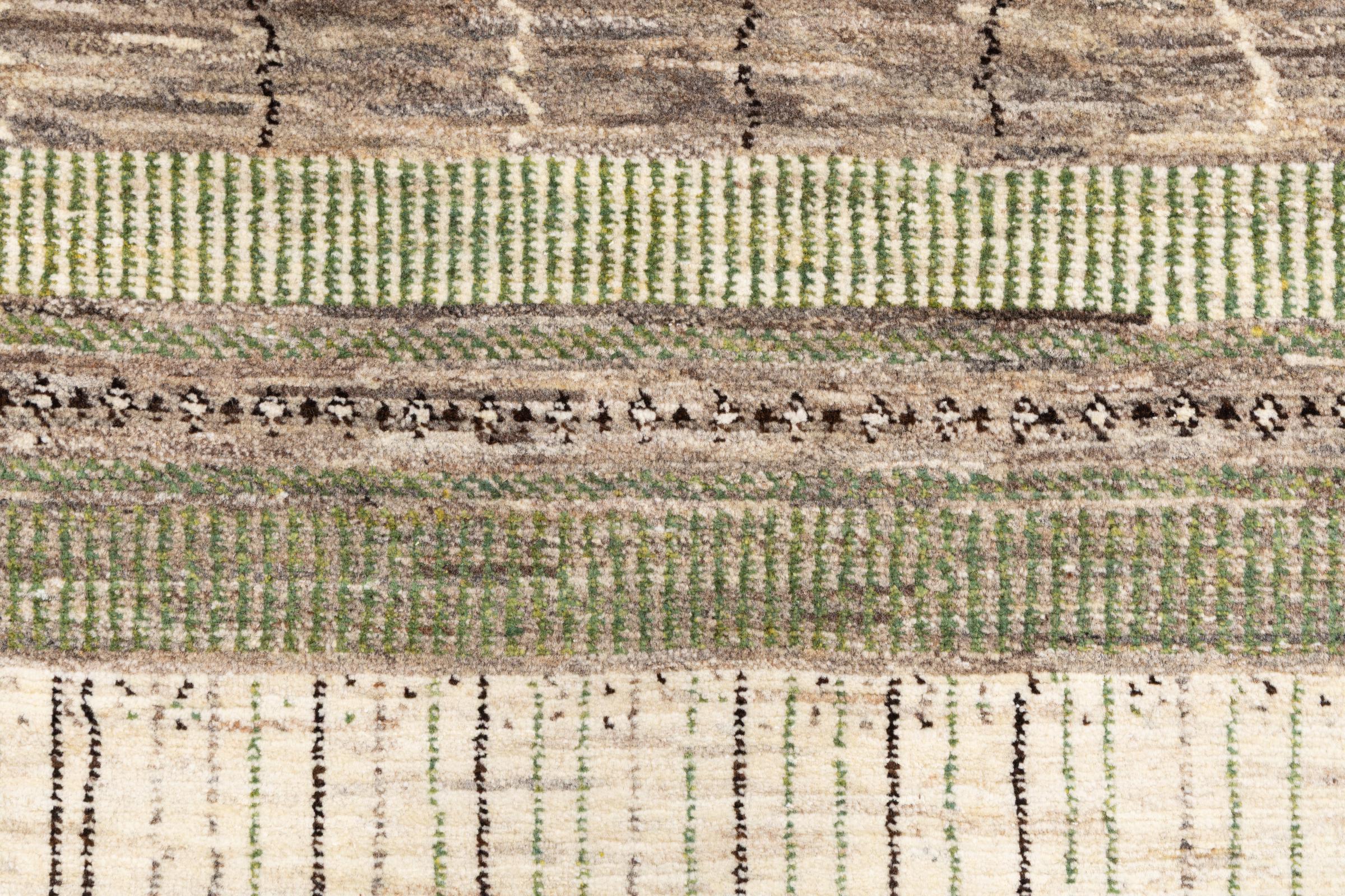 Ten piękny dywan jest perskim Gabbeh i dlatego należy do najwyższej jakości dywanów Gabbeh. Dywany są wiązane przez nomadów lub pół-nomadzi w Iranie zgodnie z tradycyjnym rzemiosłem. Proste motywy i wzory są w większości inspirowane bezpośrednim otoczeniem nomadów. Na przykład wielbłądy, drzewa lub krzewy można znaleźć na tradycyjnych dywanach. Perskie dywany Gabbeh wykonane są z wełny pochodzącej z lokalnie hodowanych stad owiec. Wełna jest więc w większości przypadków nadal obracana ręcznie. Tak więc każdy z tych orientalnych dywanów uosabia unikalny charakter wielowiekowej kultury.