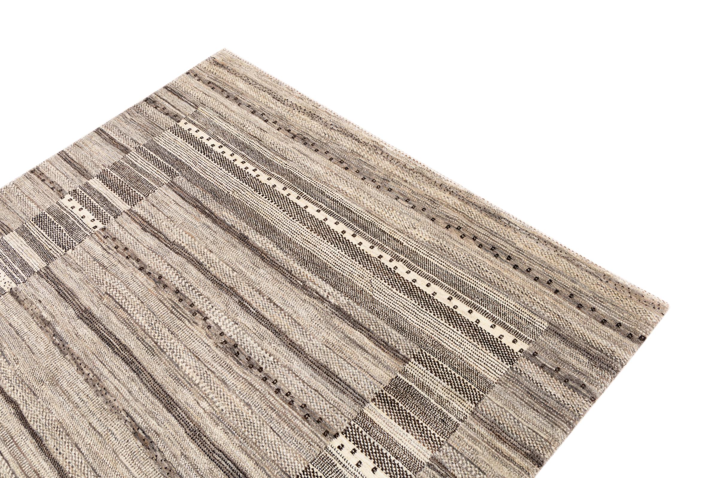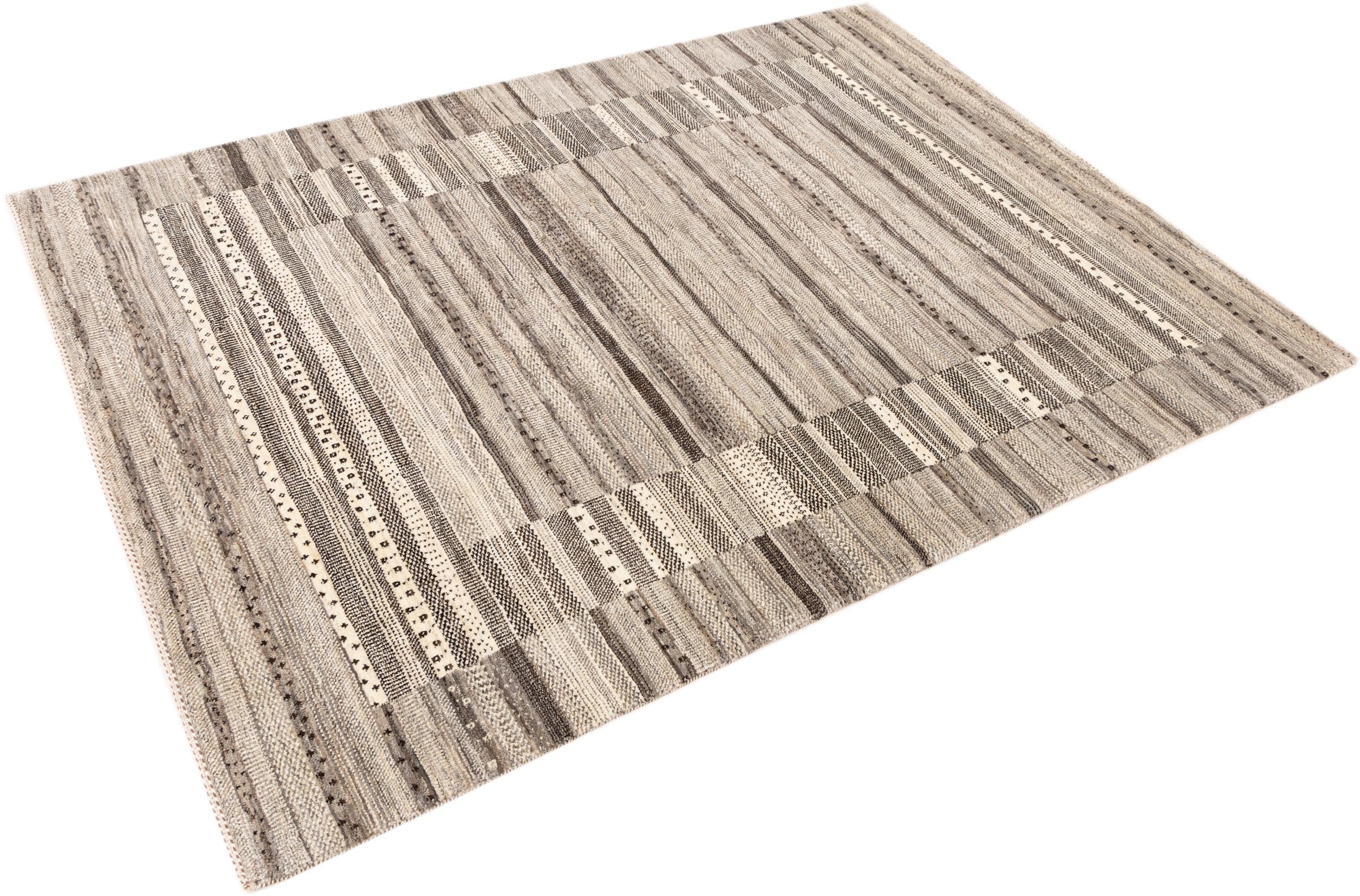 Ten piękny dywan jest perskim Gabbeh i dlatego należy do najwyższej jakości dywanów Gabbeh. Dywany są wiązane przez nomadów lub pół-nomadzi w Iranie zgodnie z tradycyjnym rzemiosłem. Proste motywy i wzory są w większości inspirowane bezpośrednim otoczeniem nomadów. Na przykład wielbłądy, drzewa lub krzewy można znaleźć na tradycyjnych dywanach. Perskie dywany Gabbeh wykonane są z wełny pochodzącej z lokalnie hodowanych stad owiec. Wełna jest więc w większości przypadków nadal obracana ręcznie. Tak więc każdy z tych orientalnych dywanów uosabia unikalny charakter wielowiekowej kultury.