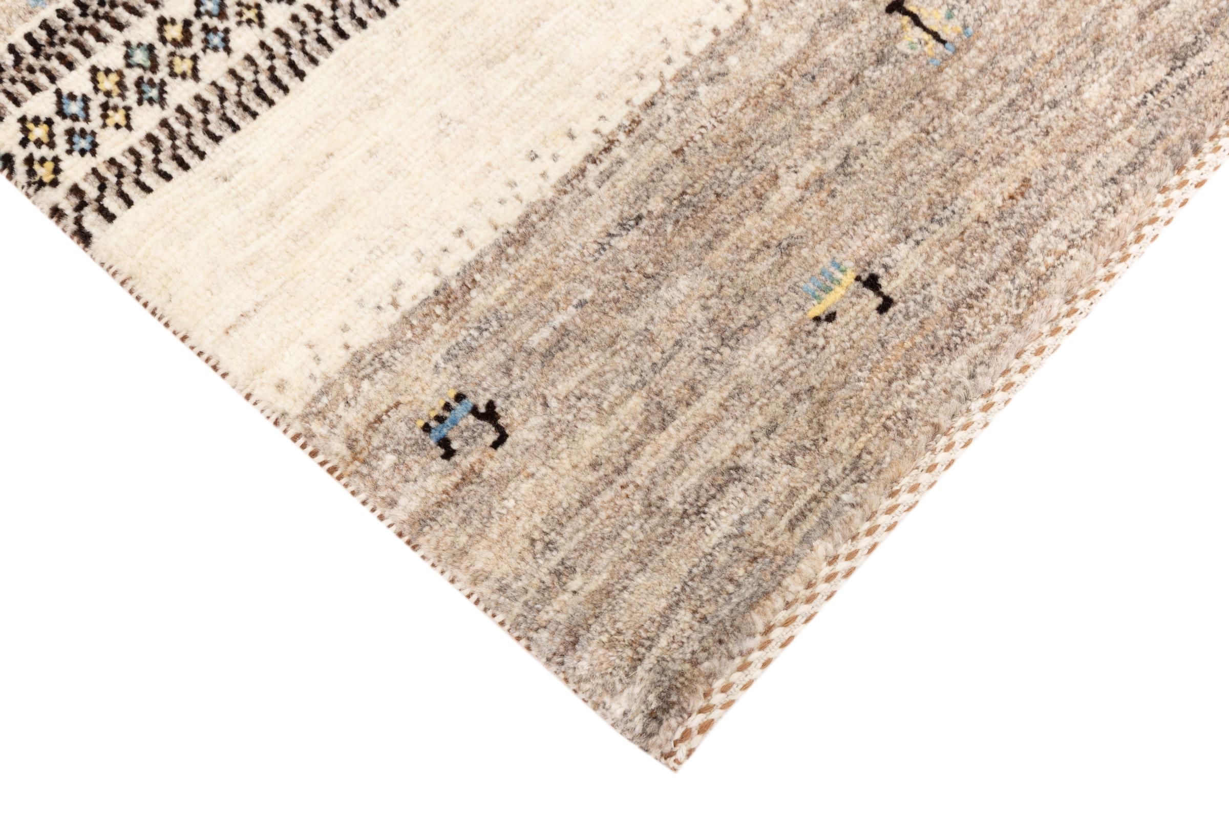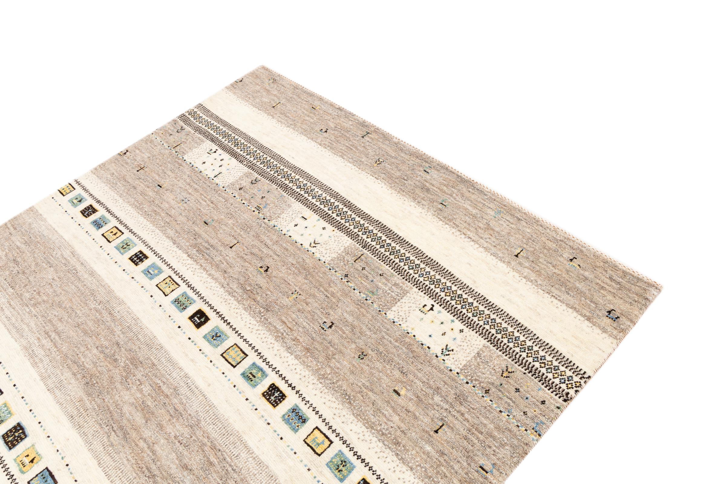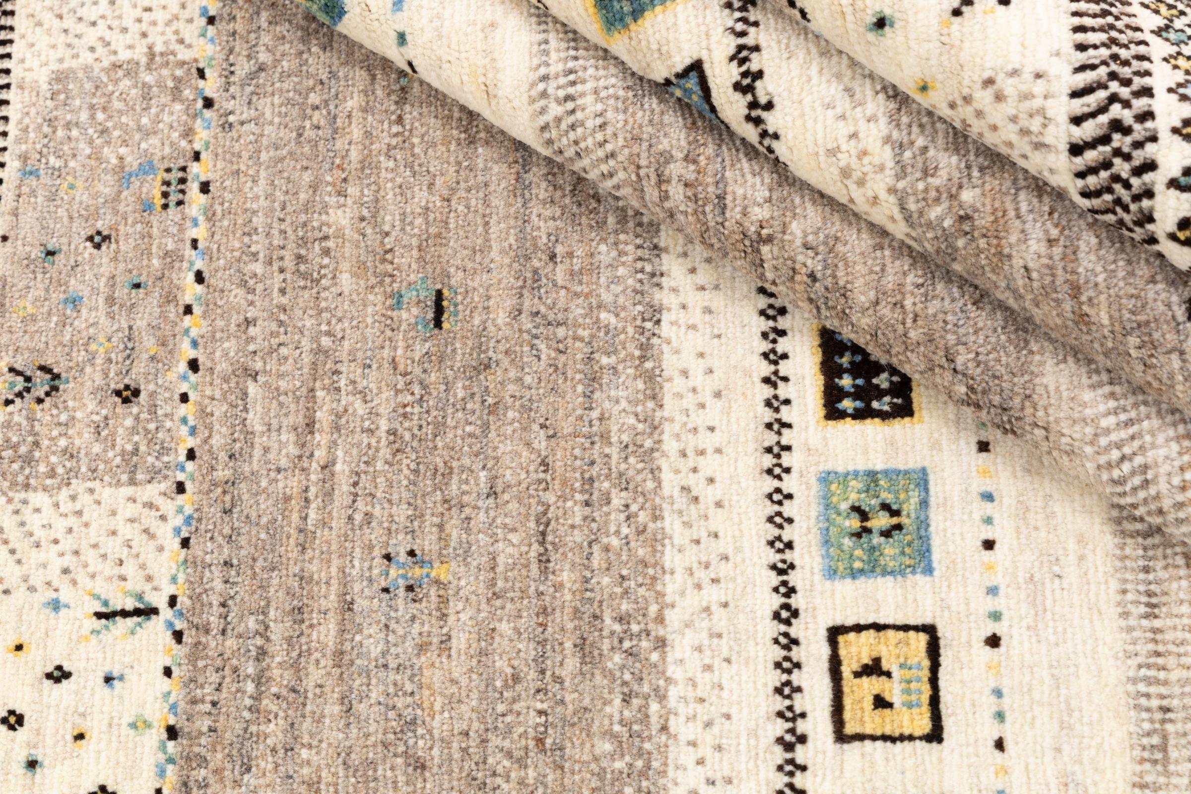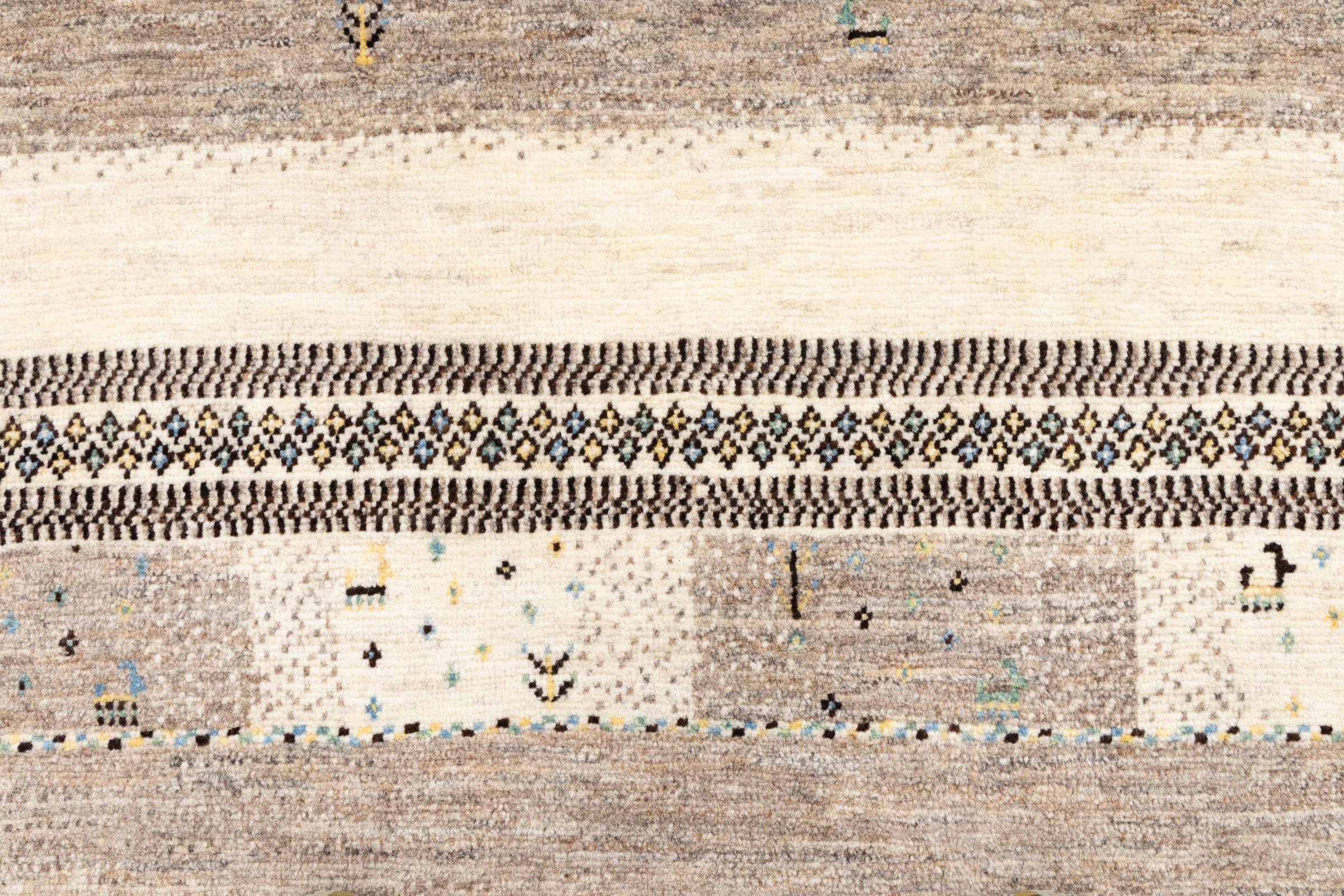 Ten piękny dywan jest perskim Gabbeh i dlatego należy do najwyższej jakości dywanów Gabbeh. Dywany są wiązane przez nomadów lub pół-nomadzi w Iranie zgodnie z tradycyjnym rzemiosłem. Proste motywy i wzory są w większości inspirowane bezpośrednim otoczeniem nomadów. Na przykład wielbłądy, drzewa lub krzewy można znaleźć na tradycyjnych dywanach. Perskie dywany Gabbeh wykonane są z wełny pochodzącej z lokalnie hodowanych stad owiec. Wełna jest więc w większości przypadków nadal obracana ręcznie. Tak więc każdy z tych orientalnych dywanów uosabia unikalny charakter wielowiekowej kultury.