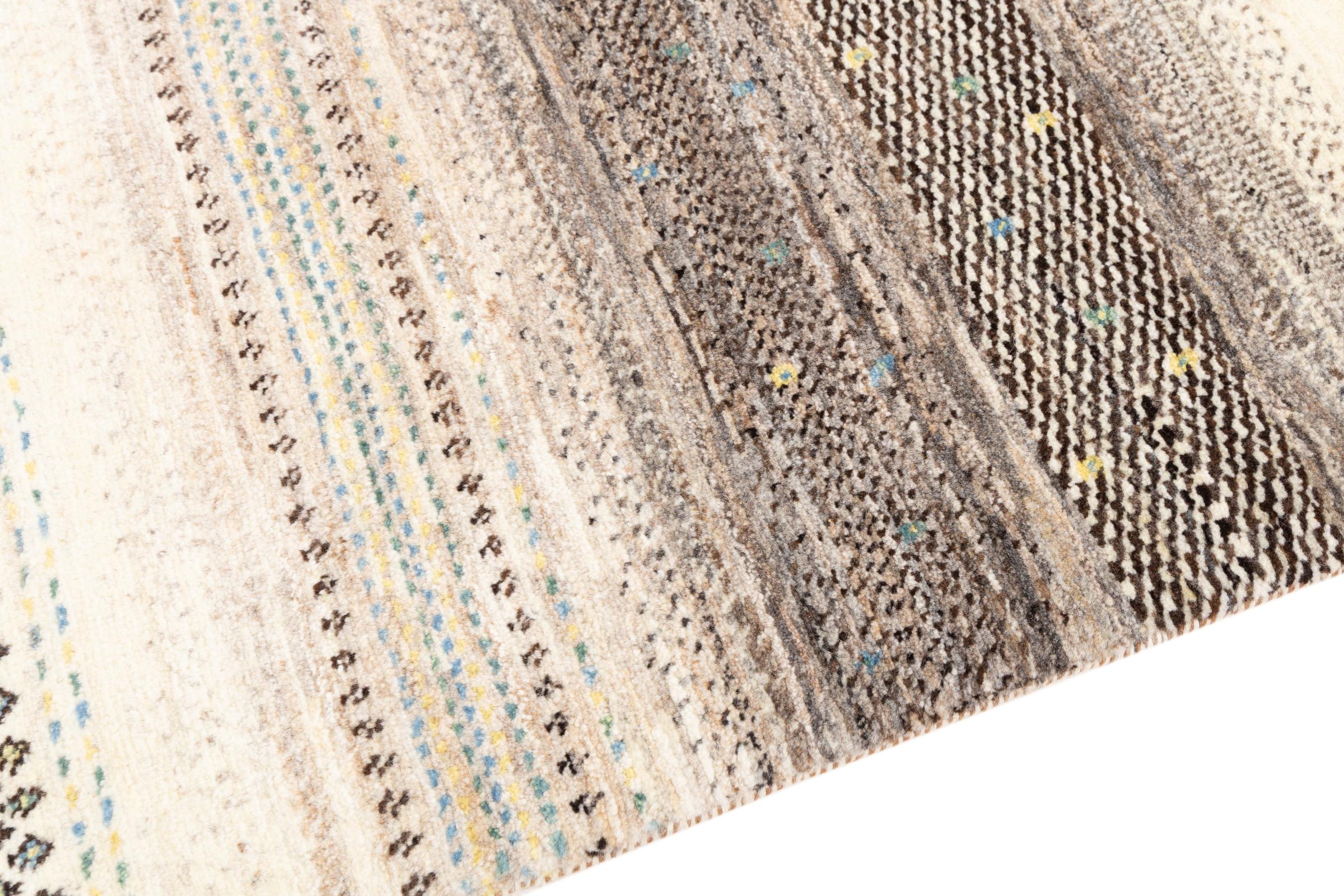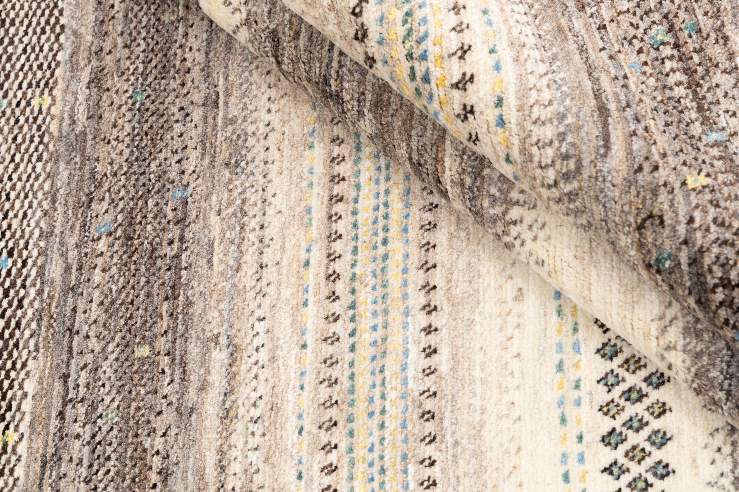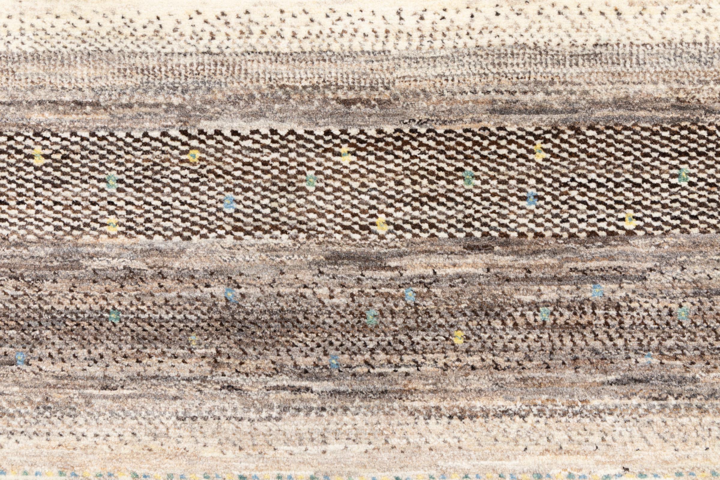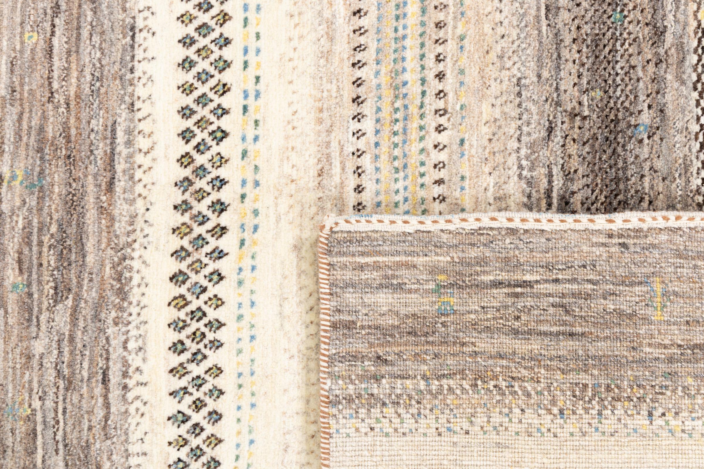 Ten piękny dywan jest perskim Gabbeh i dlatego należy do najwyższej jakości dywanów Gabbeh. Dywany są wiązane przez nomadów lub pół-nomadzi w Iranie zgodnie z tradycyjnym rzemiosłem. Proste motywy i wzory są w większości inspirowane bezpośrednim otoczeniem nomadów. Na przykład wielbłądy, drzewa lub krzewy można znaleźć na tradycyjnych dywanach. Perskie dywany Gabbeh wykonane są z wełny pochodzącej z lokalnie hodowanych stad owiec. Wełna jest więc w większości przypadków nadal obracana ręcznie. Tak więc każdy z tych orientalnych dywanów uosabia unikalny charakter wielowiekowej kultury.