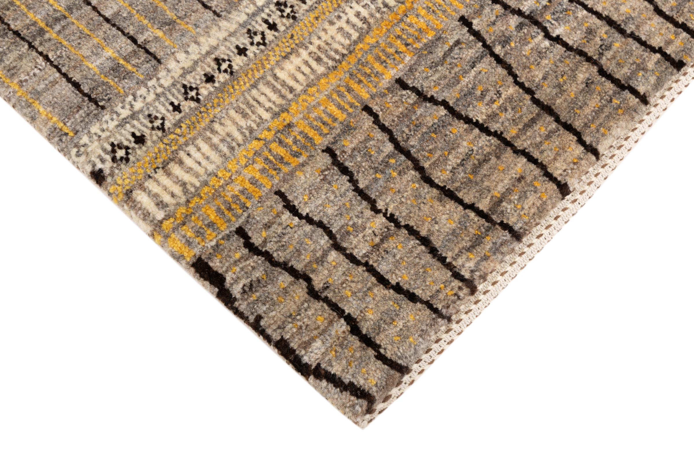 Ten piękny dywan jest perskim Gabbeh i dlatego należy do najwyższej jakości dywanów Gabbeh. Dywany są wiązane przez nomadów lub pół-nomadzi w Iranie zgodnie z tradycyjnym rzemiosłem. Proste motywy i wzory są w większości inspirowane bezpośrednim otoczeniem nomadów. Na przykład wielbłądy, drzewa lub krzewy można znaleźć na tradycyjnych dywanach. Perskie dywany Gabbeh wykonane są z wełny pochodzącej z lokalnie hodowanych stad owiec. Wełna jest więc w większości przypadków nadal obracana ręcznie. Tak więc każdy z tych orientalnych dywanów uosabia unikalny charakter wielowiekowej kultury.