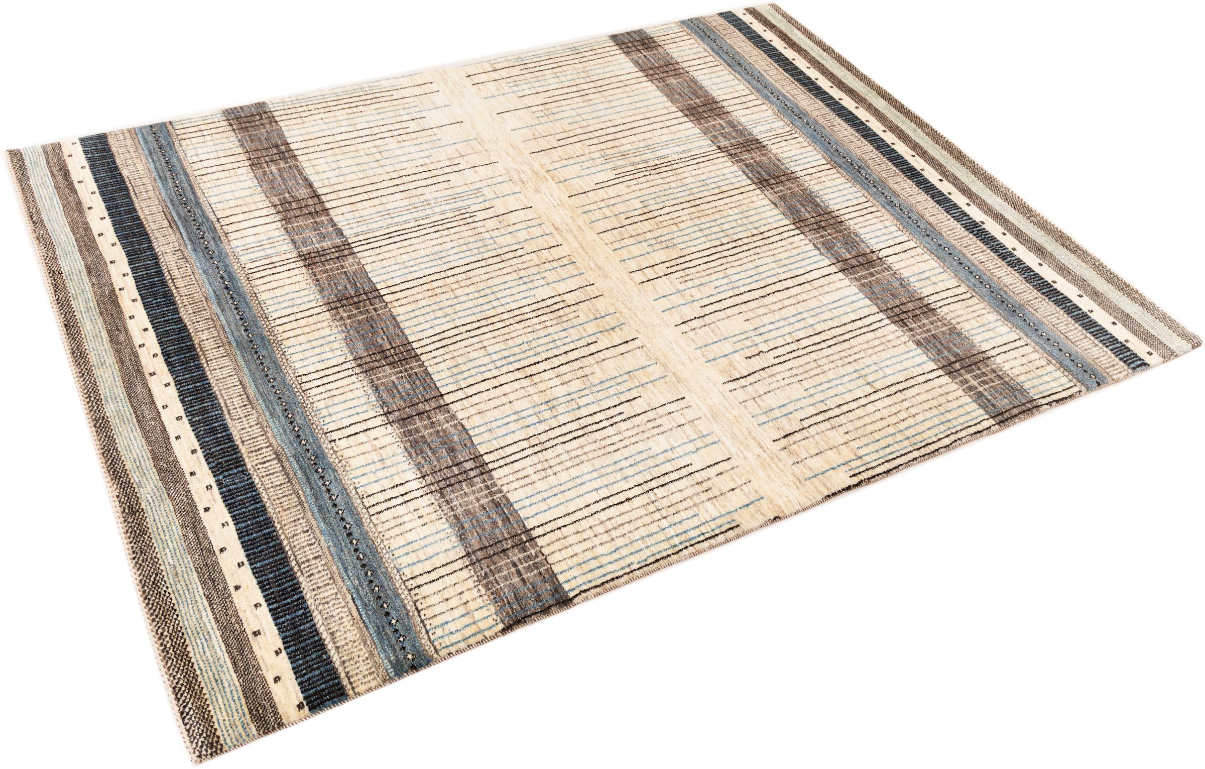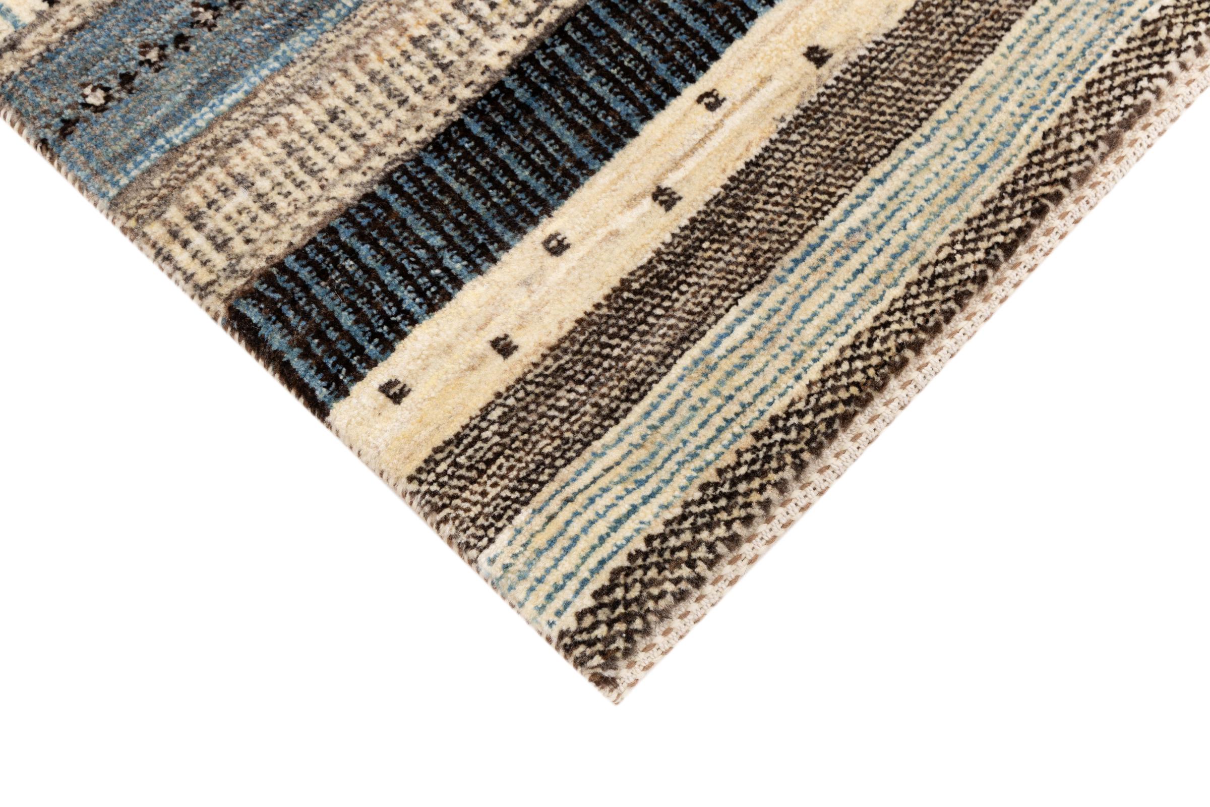 Ten piękny dywan jest perskim Gabbeh i dlatego należy do najwyższej jakości dywanów Gabbeh. Dywany są wiązane przez nomadów lub pół-nomadzi w Iranie zgodnie z tradycyjnym rzemiosłem. Proste motywy i wzory są w większości inspirowane bezpośrednim otoczeniem nomadów. Na przykład wielbłądy, drzewa lub krzewy można znaleźć na tradycyjnych dywanach. Perskie dywany Gabbeh wykonane są z wełny pochodzącej z lokalnie hodowanych stad owiec. Wełna jest więc w większości przypadków nadal obracana ręcznie. Tak więc każdy z tych orientalnych dywanów uosabia unikalny charakter wielowiekowej kultury.