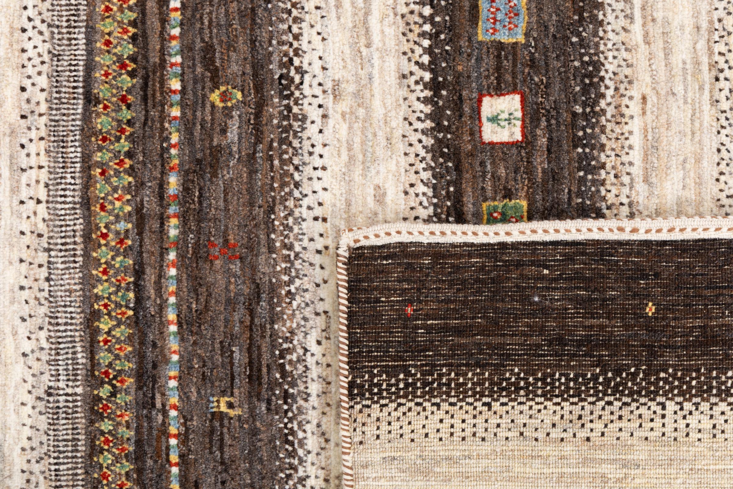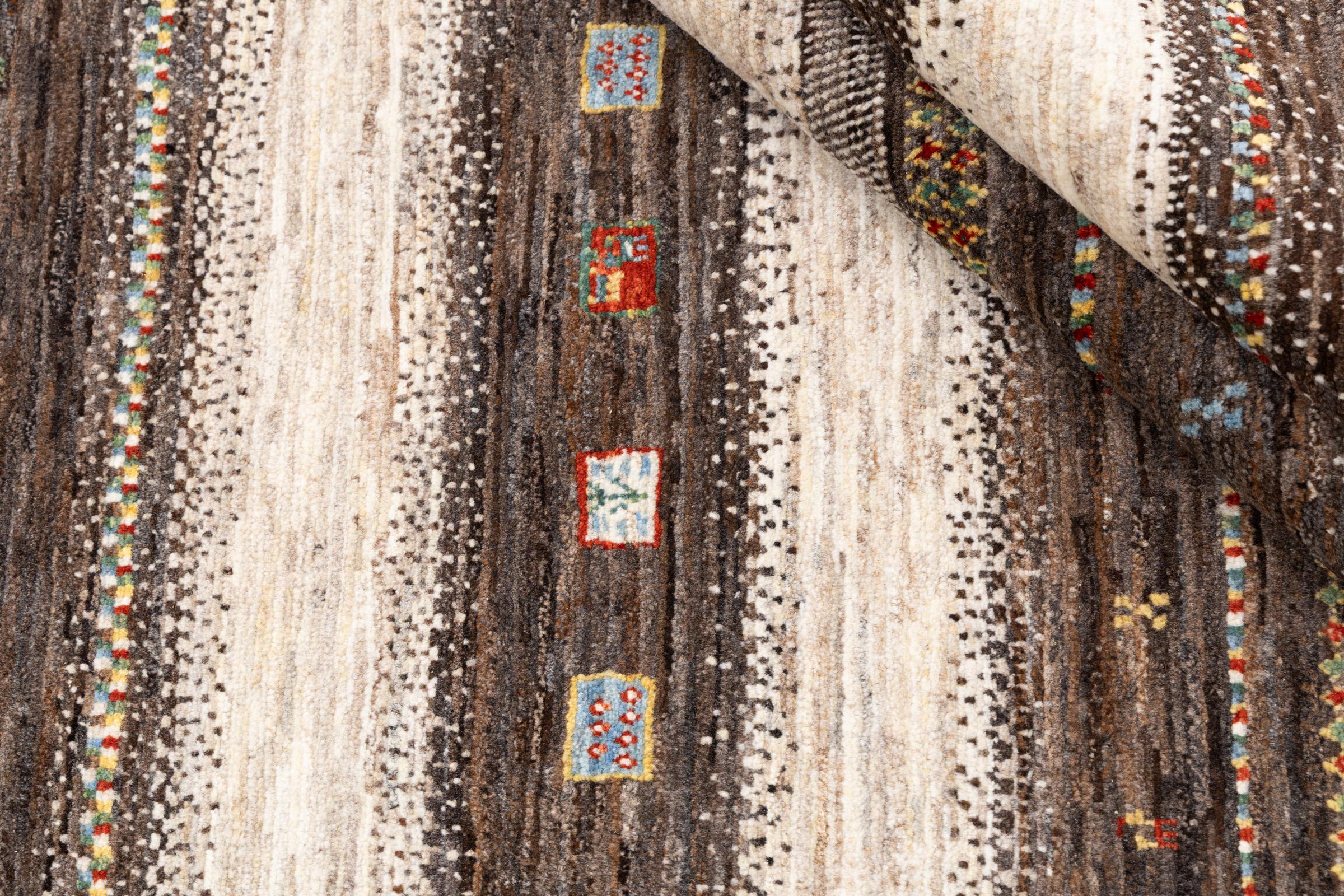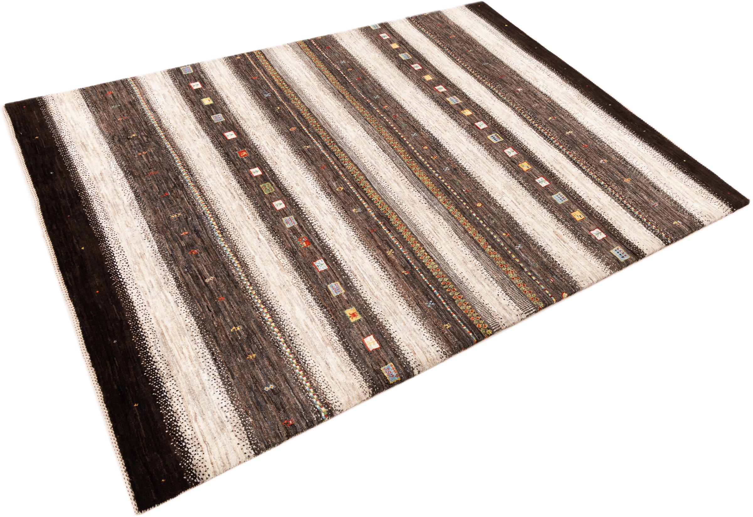 Ten piękny dywan jest perskim Gabbeh i dlatego należy do najwyższej jakości dywanów Gabbeh. Dywany są wiązane przez nomadów lub pół-nomadzi w Iranie zgodnie z tradycyjnym rzemiosłem. Proste motywy i wzory są w większości inspirowane bezpośrednim otoczeniem nomadów. Na przykład wielbłądy, drzewa lub krzewy można znaleźć na tradycyjnych dywanach. Perskie dywany Gabbeh wykonane są z wełny pochodzącej z lokalnie hodowanych stad owiec. Wełna jest więc w większości przypadków nadal obracana ręcznie. Tak więc każdy z tych orientalnych dywanów uosabia unikalny charakter wielowiekowej kultury.