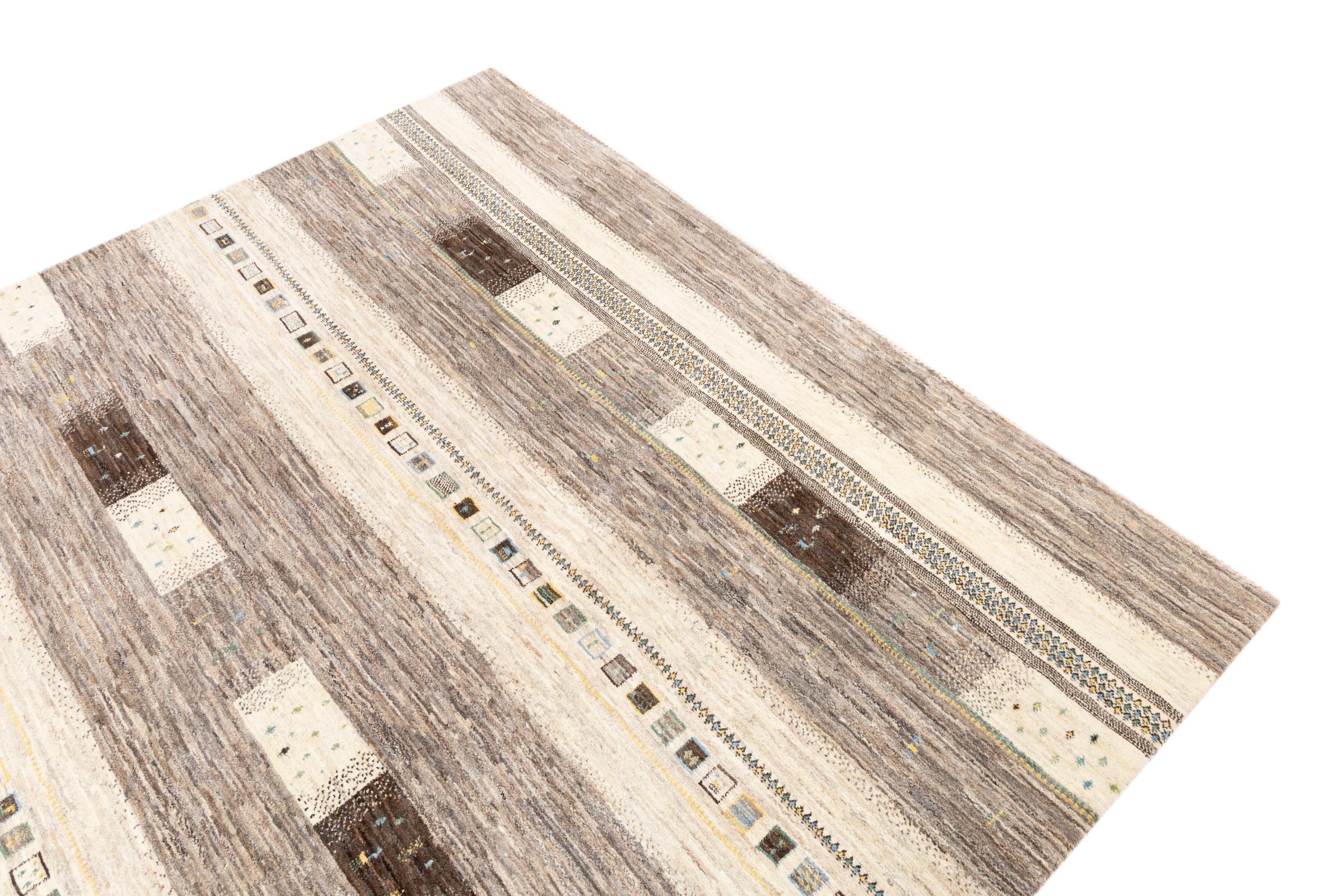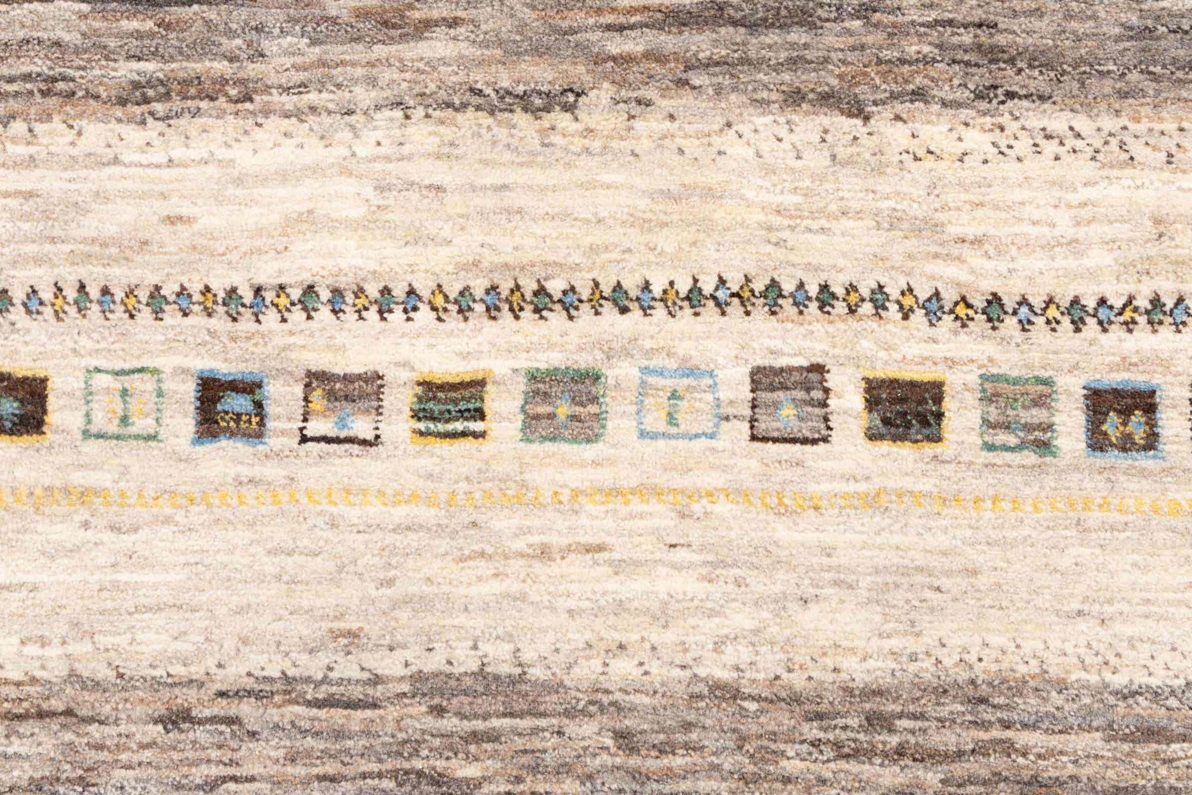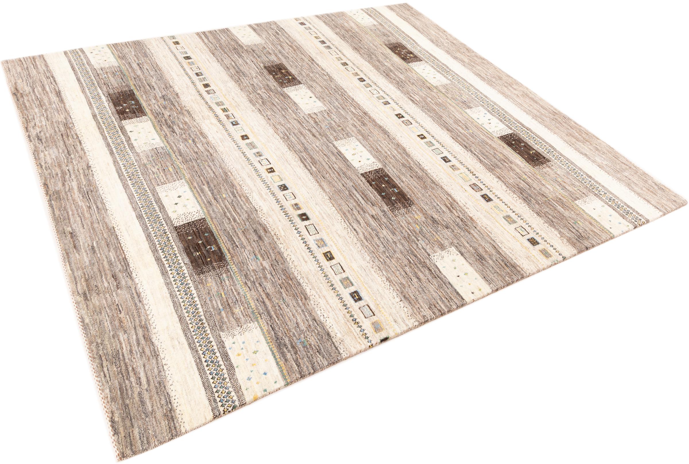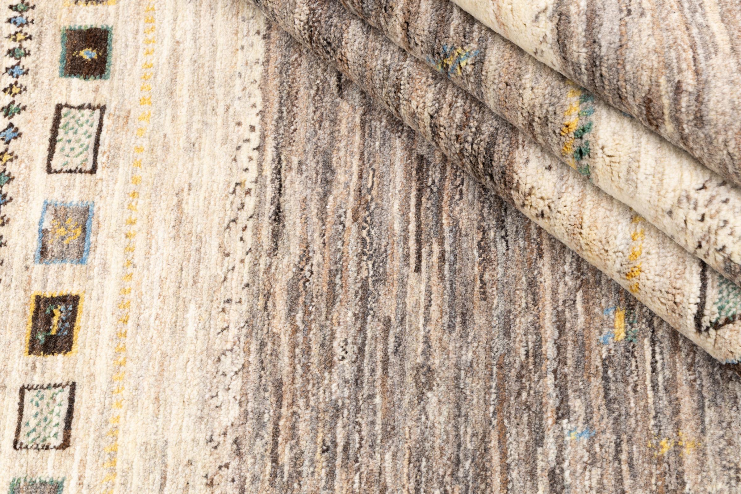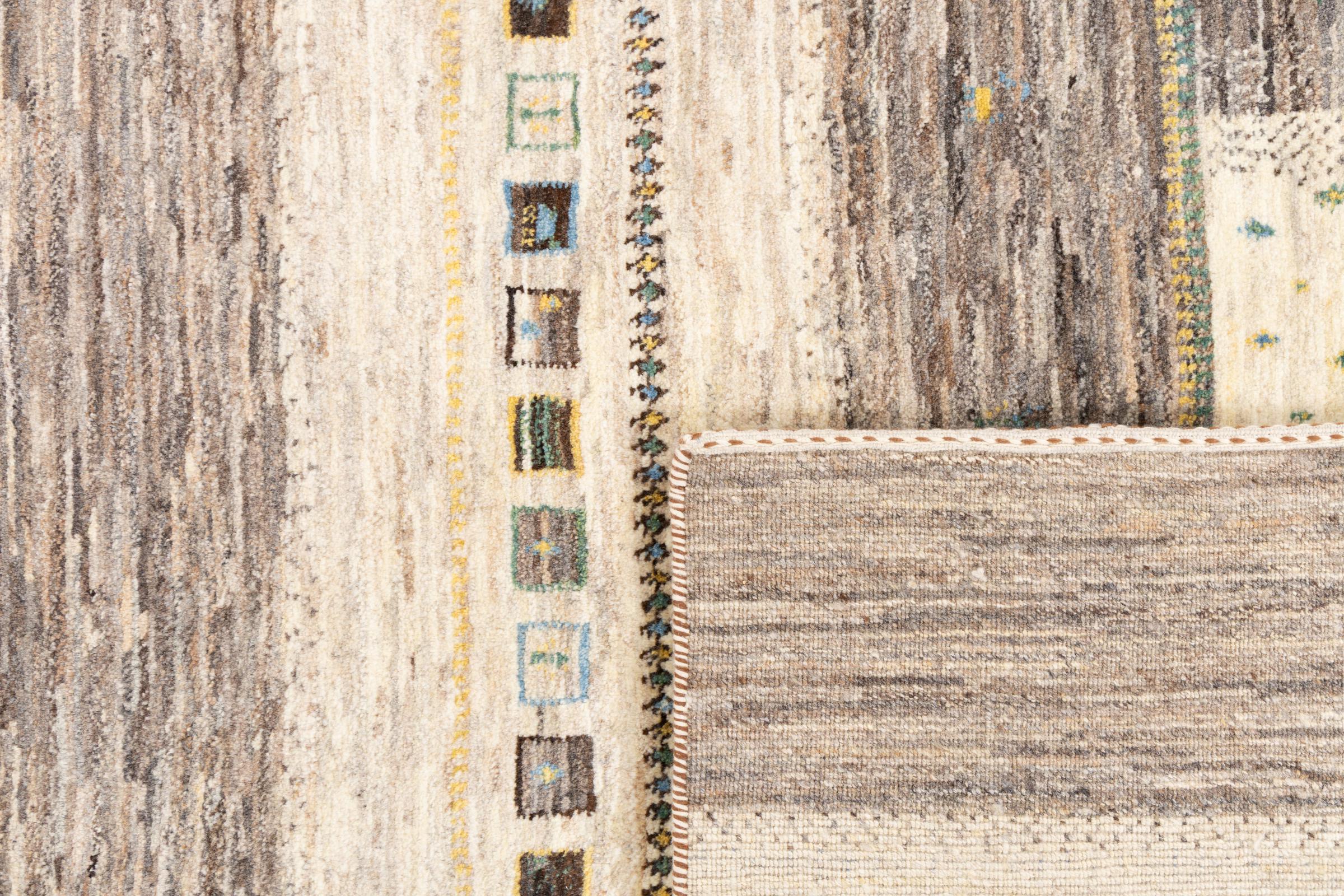 Ten piękny dywan jest perskim Gabbeh i dlatego należy do najwyższej jakości dywanów Gabbeh. Dywany są wiązane przez nomadów lub pół-nomadzi w Iranie zgodnie z tradycyjnym rzemiosłem. Proste motywy i wzory są w większości inspirowane bezpośrednim otoczeniem nomadów. Na przykład wielbłądy, drzewa lub krzewy można znaleźć na tradycyjnych dywanach. Perskie dywany Gabbeh wykonane są z wełny pochodzącej z lokalnie hodowanych stad owiec. Wełna jest więc w większości przypadków nadal obracana ręcznie. Tak więc każdy z tych orientalnych dywanów uosabia unikalny charakter wielowiekowej kultury.