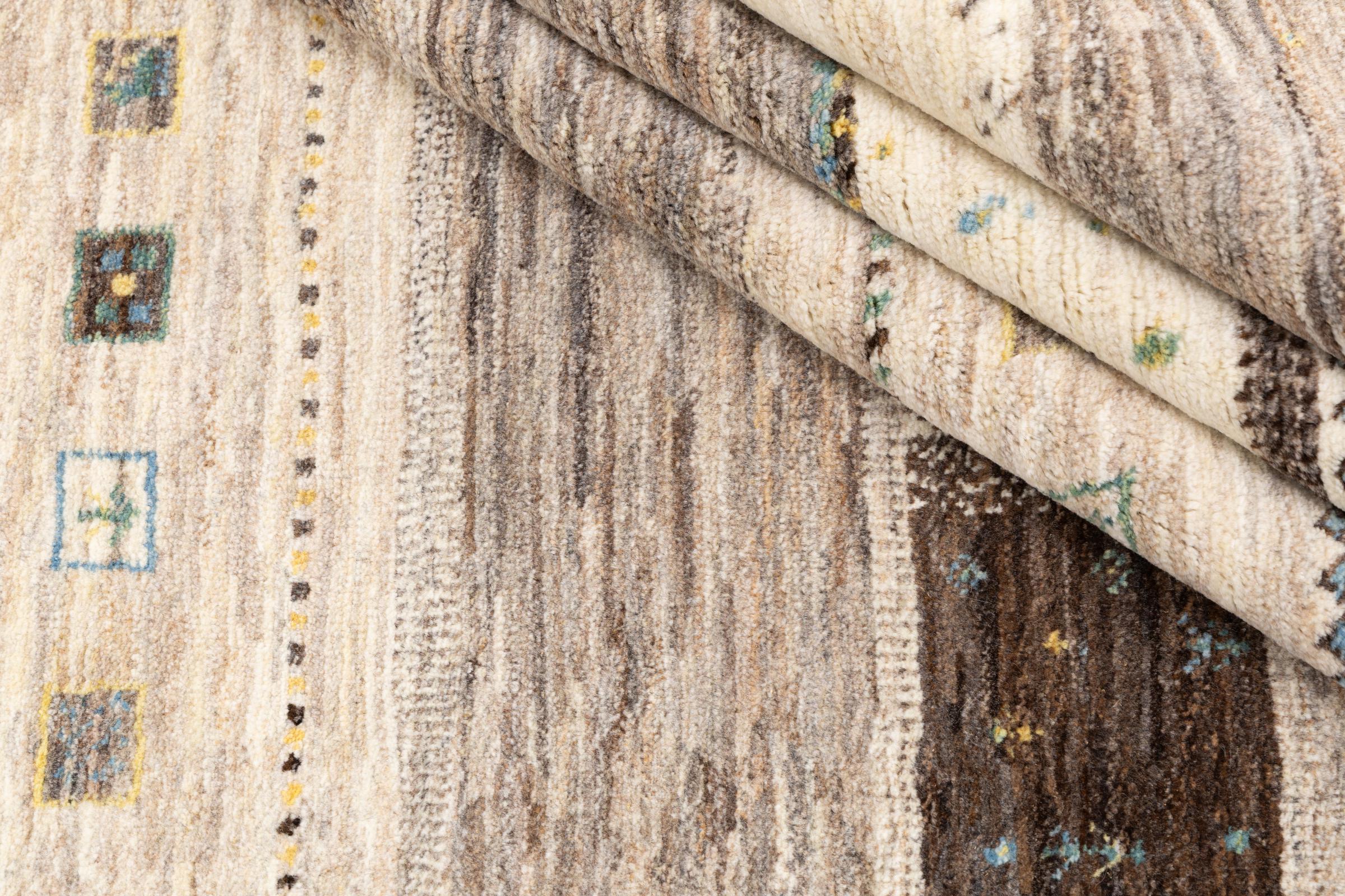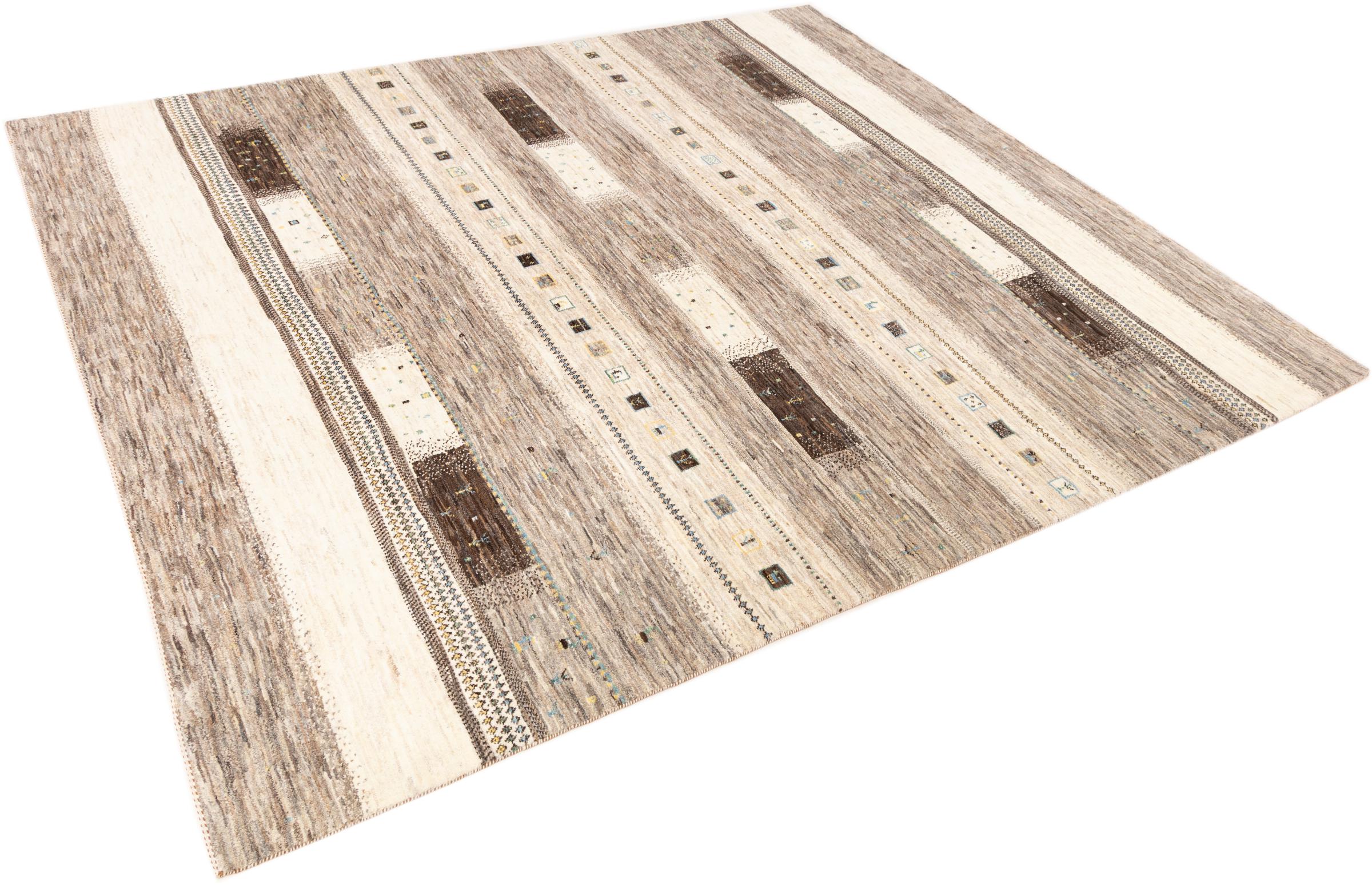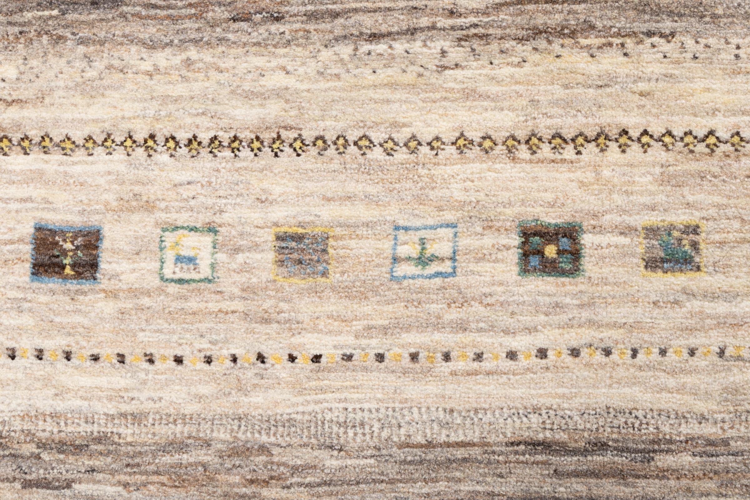 Ten piękny dywan jest perskim Gabbeh i dlatego należy do najwyższej jakości dywanów Gabbeh. Dywany są wiązane przez nomadów lub pół-nomadzi w Iranie zgodnie z tradycyjnym rzemiosłem. Proste motywy i wzory są w większości inspirowane bezpośrednim otoczeniem nomadów. Na przykład wielbłądy, drzewa lub krzewy można znaleźć na tradycyjnych dywanach. Perskie dywany Gabbeh wykonane są z wełny pochodzącej z lokalnie hodowanych stad owiec. Wełna jest więc w większości przypadków nadal obracana ręcznie. Tak więc każdy z tych orientalnych dywanów uosabia unikalny charakter wielowiekowej kultury.