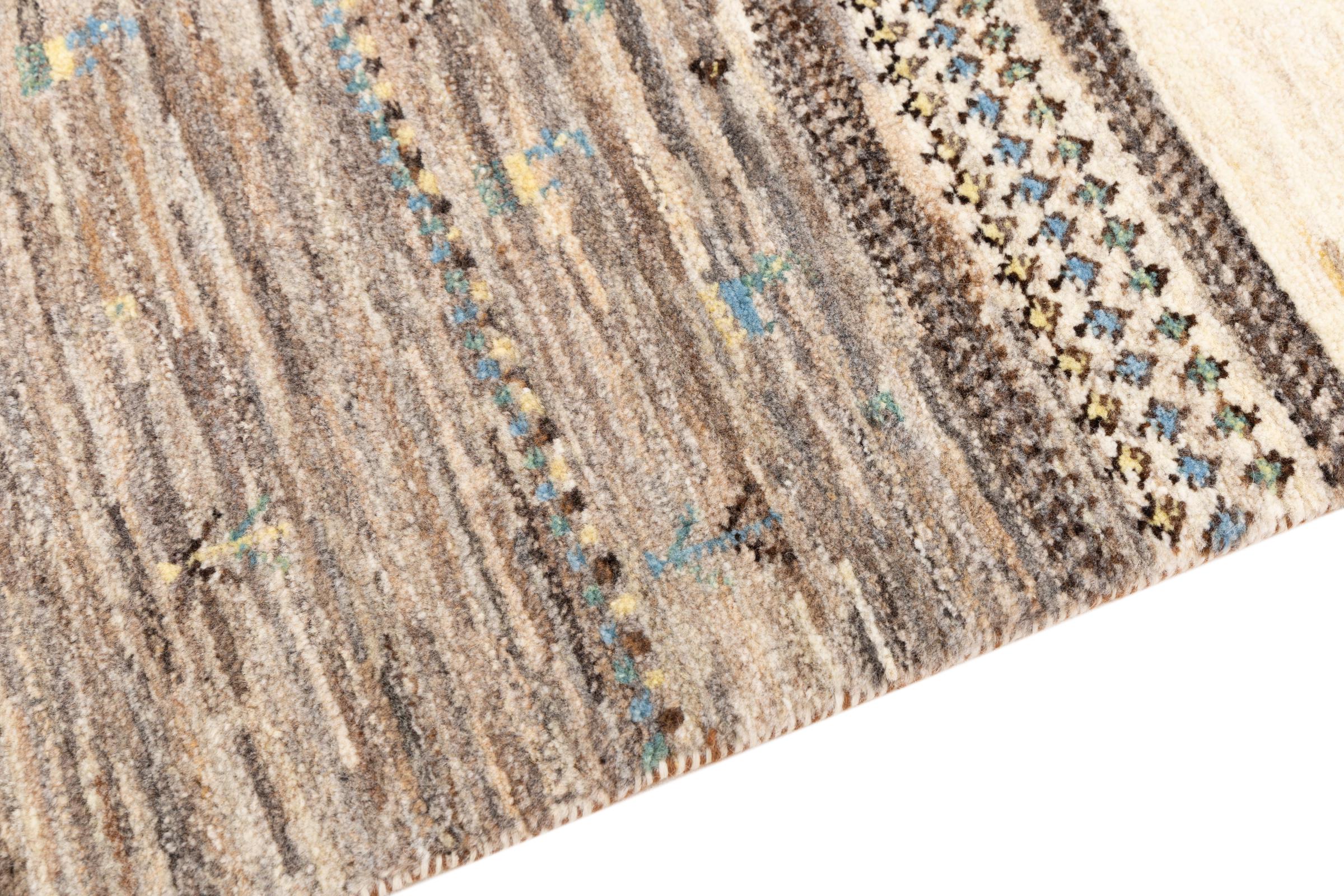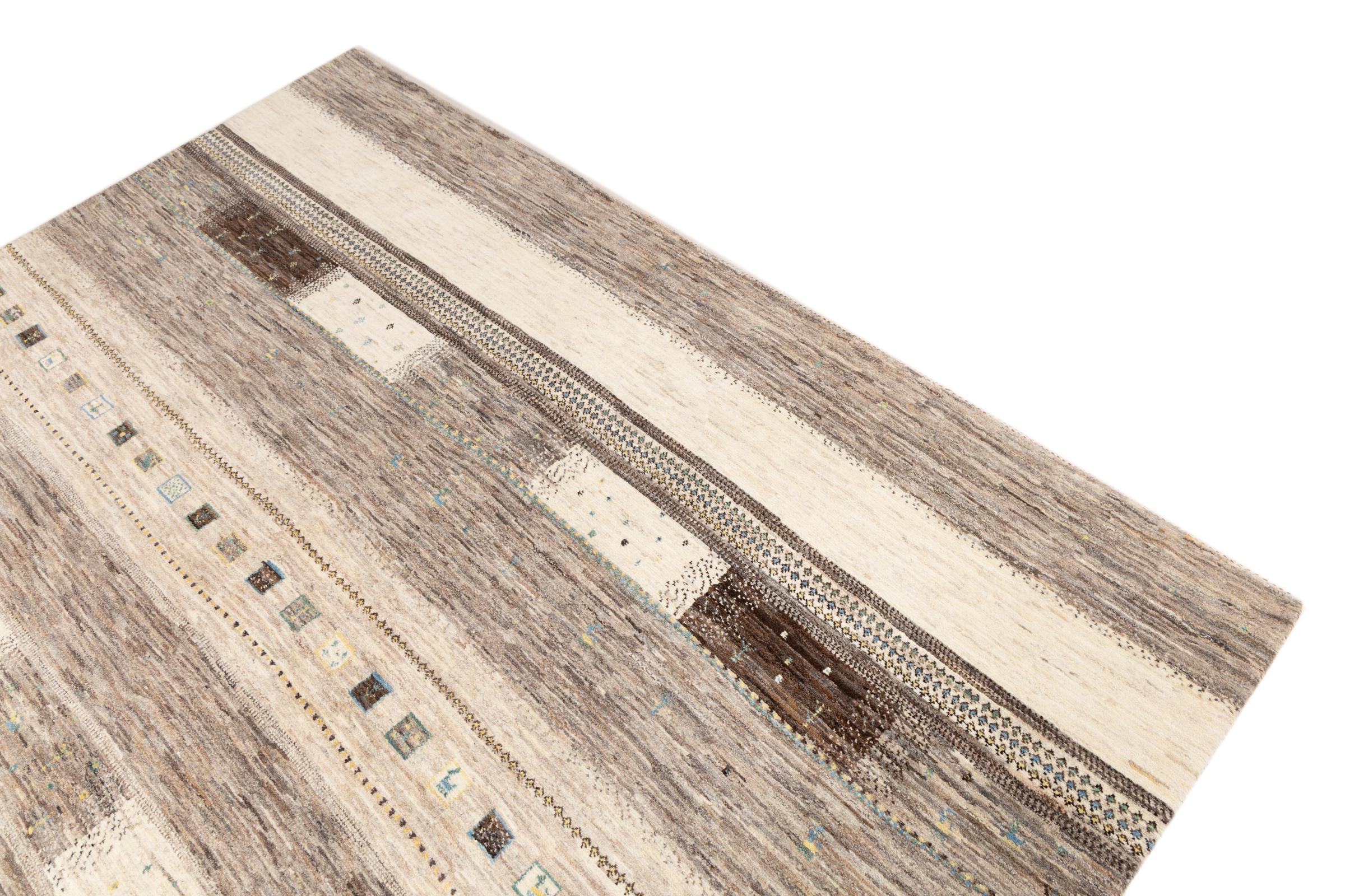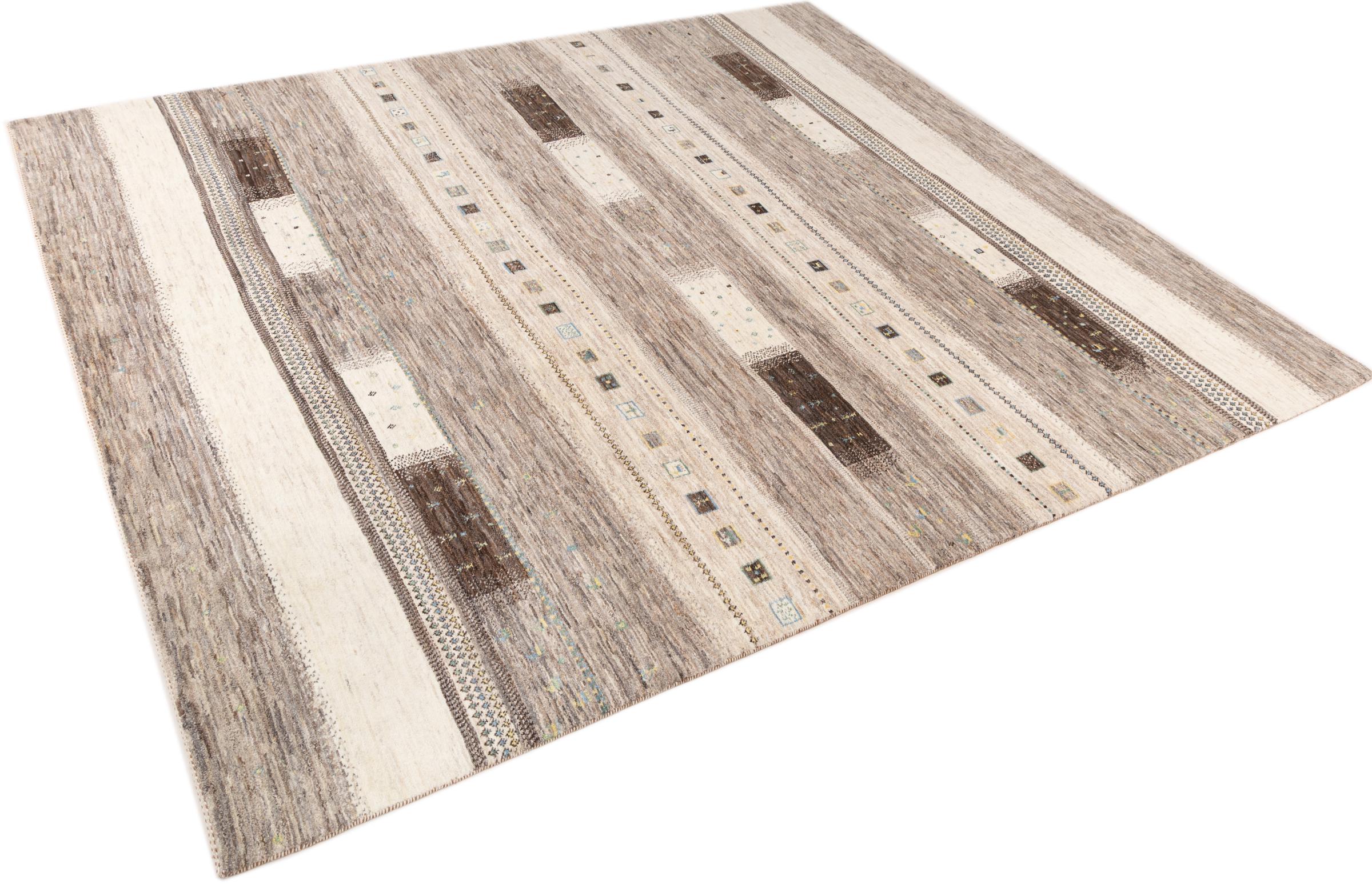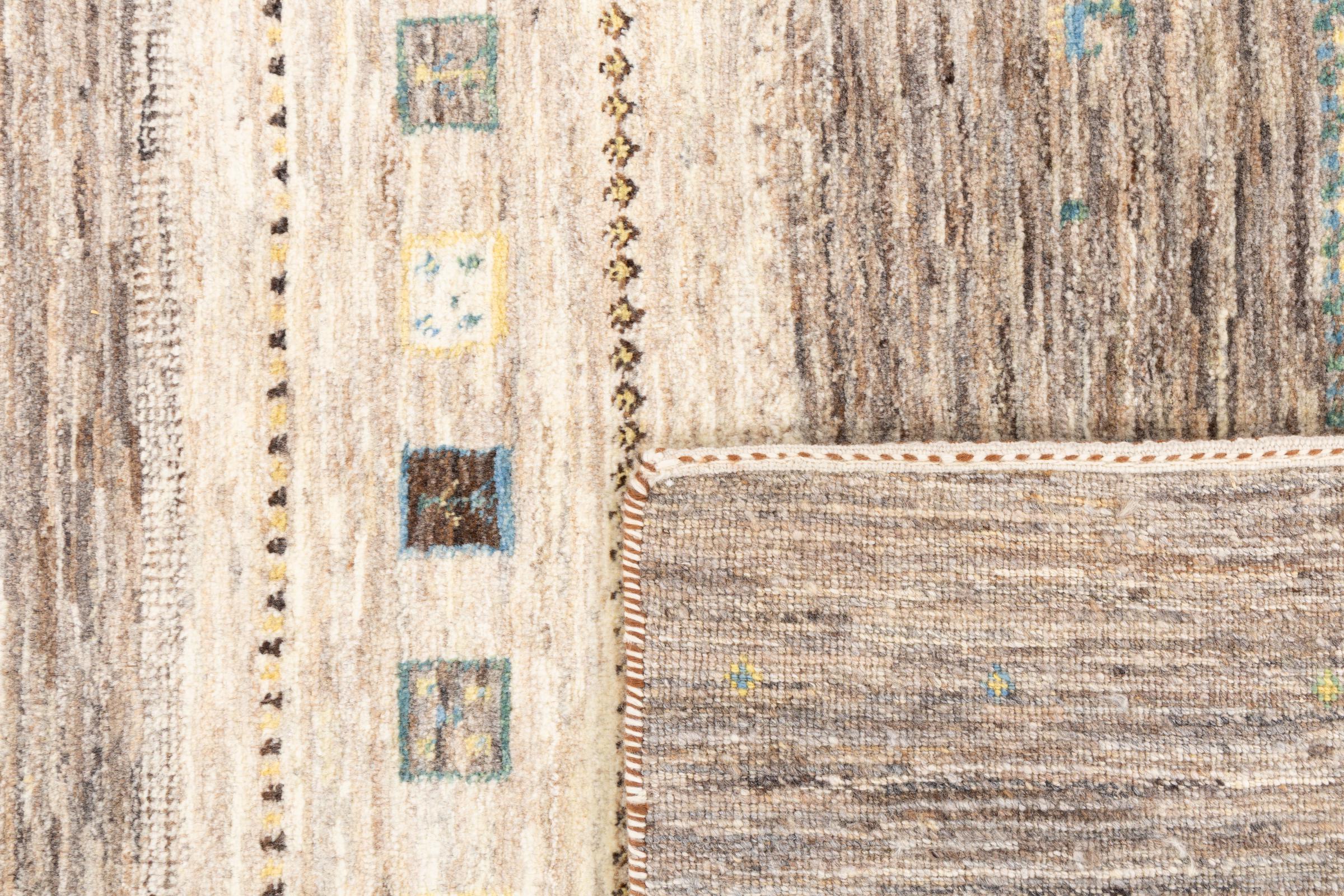 Ten piękny dywan jest perskim Gabbeh i dlatego należy do najwyższej jakości dywanów Gabbeh. Dywany są wiązane przez nomadów lub pół-nomadzi w Iranie zgodnie z tradycyjnym rzemiosłem. Proste motywy i wzory są w większości inspirowane bezpośrednim otoczeniem nomadów. Na przykład wielbłądy, drzewa lub krzewy można znaleźć na tradycyjnych dywanach. Perskie dywany Gabbeh wykonane są z wełny pochodzącej z lokalnie hodowanych stad owiec. Wełna jest więc w większości przypadków nadal obracana ręcznie. Tak więc każdy z tych orientalnych dywanów uosabia unikalny charakter wielowiekowej kultury.