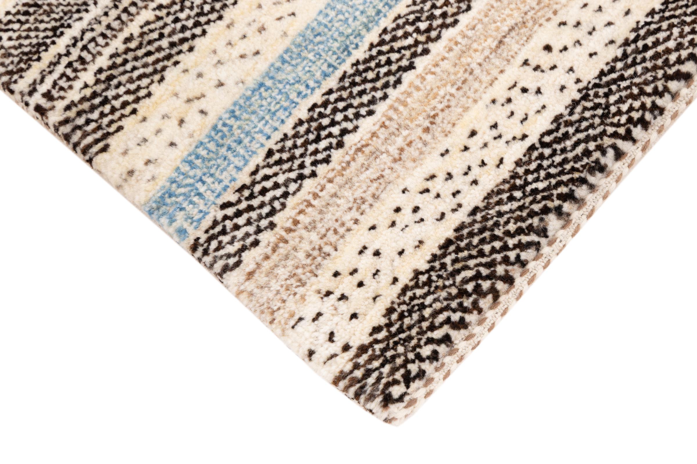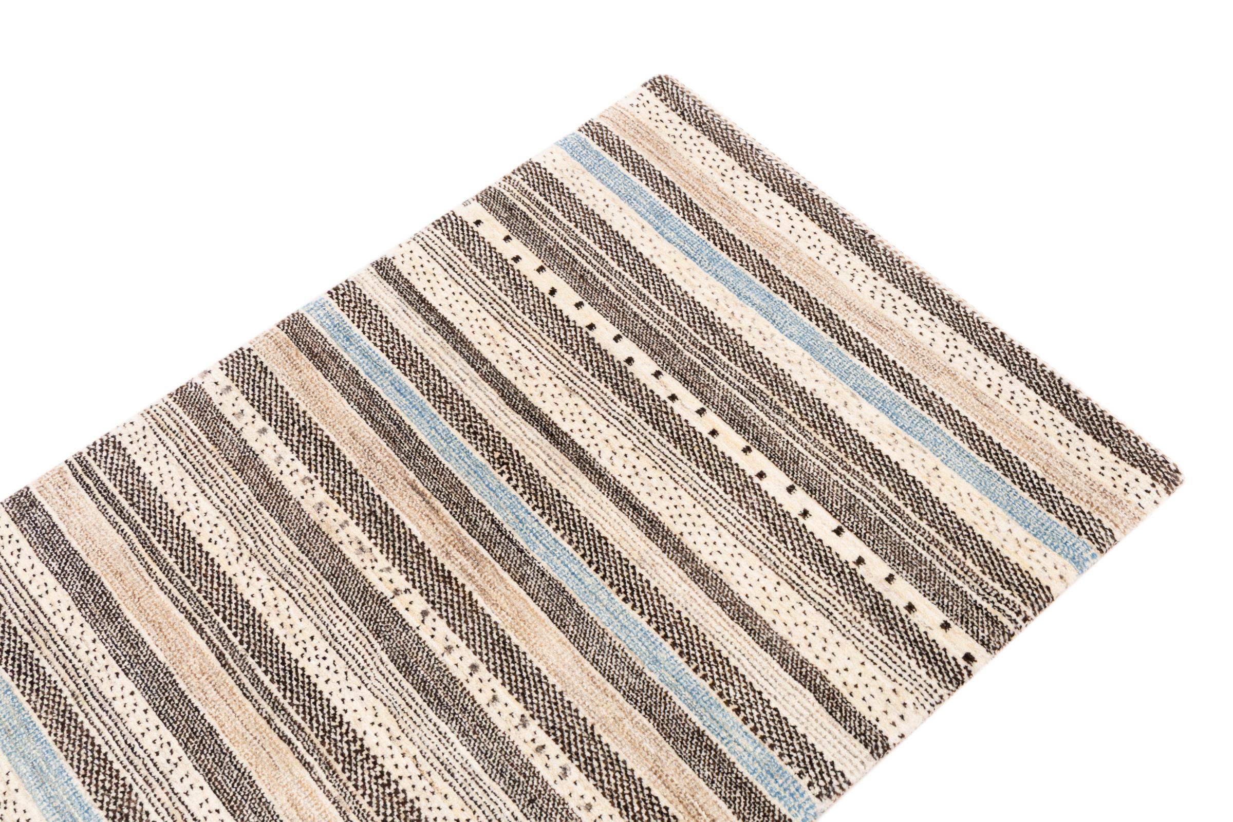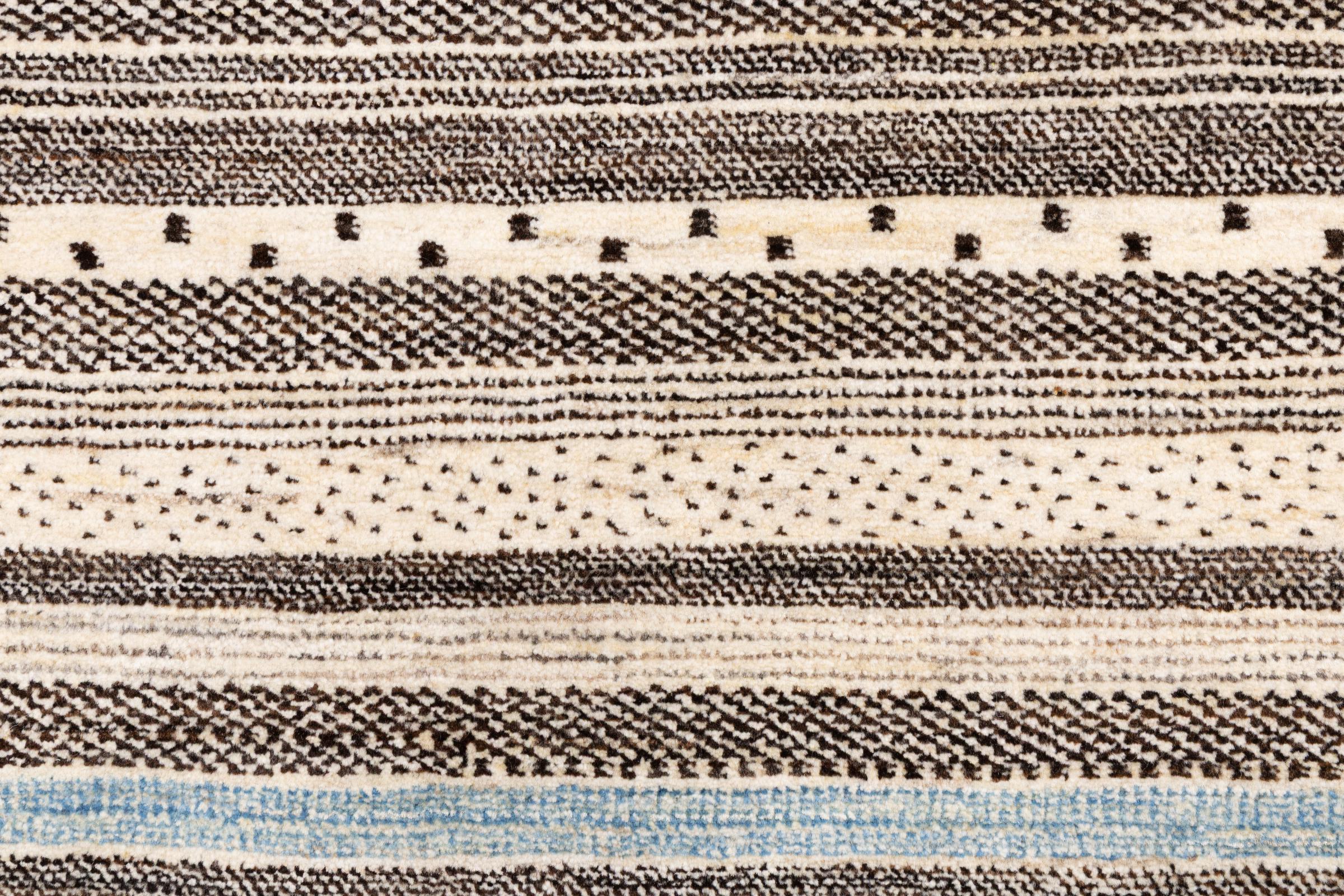 Ten piękny dywan jest perskim Gabbeh i dlatego należy do najwyższej jakości dywanów Gabbeh. Dywany są wiązane przez nomadów lub pół-nomadzi w Iranie zgodnie z tradycyjnym rzemiosłem. Proste motywy i wzory są w większości inspirowane bezpośrednim otoczeniem nomadów. Na przykład wielbłądy, drzewa lub krzewy można znaleźć na tradycyjnych dywanach. Perskie dywany Gabbeh wykonane są z wełny pochodzącej z lokalnie hodowanych stad owiec. Wełna jest więc w większości przypadków nadal obracana ręcznie. Tak więc każdy z tych orientalnych dywanów uosabia unikalny charakter wielowiekowej kultury.