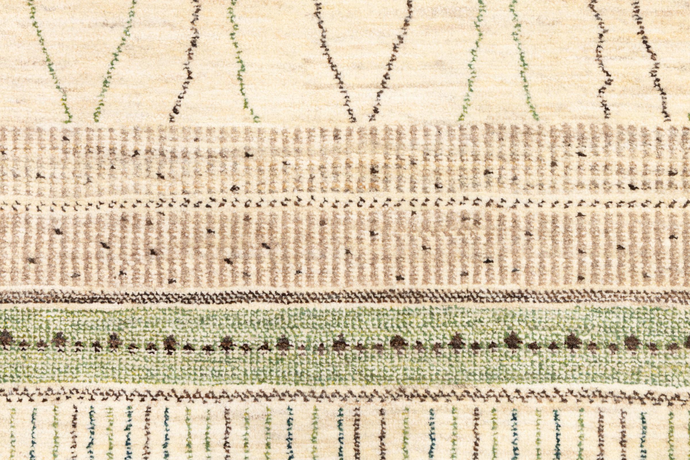 Dywan ten wykonany jest z ręcznie formowanej wełny owczej najwyższej jakości. Zwłaszcza w Iranie (była Persja), Afganistanie i Pakistanie wełna jest nadal ręcznie skręcana, zanim rozpocznie się faktyczne wiązanie dywanu. Wełna sprawdziła się jako naturalny i niezwykle wytrzymały materiał na przestrzeni wieków. Ma m.in. właściwości antybrudzące i termoizolacyjne. Jednocześnie wełna jest nieporównywalnie miękka i ma naturalny połysk.