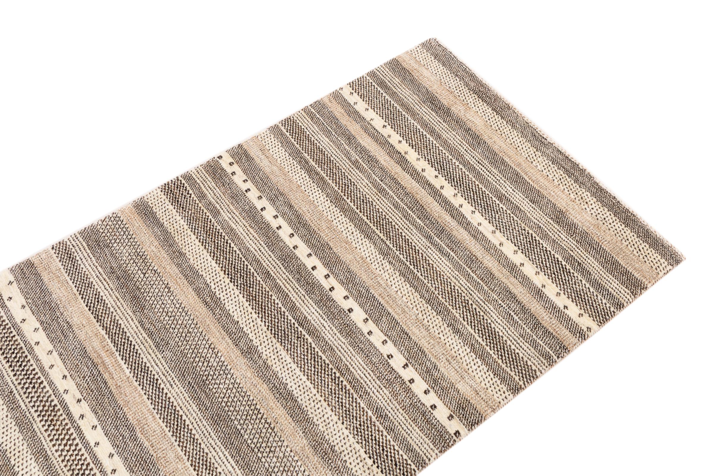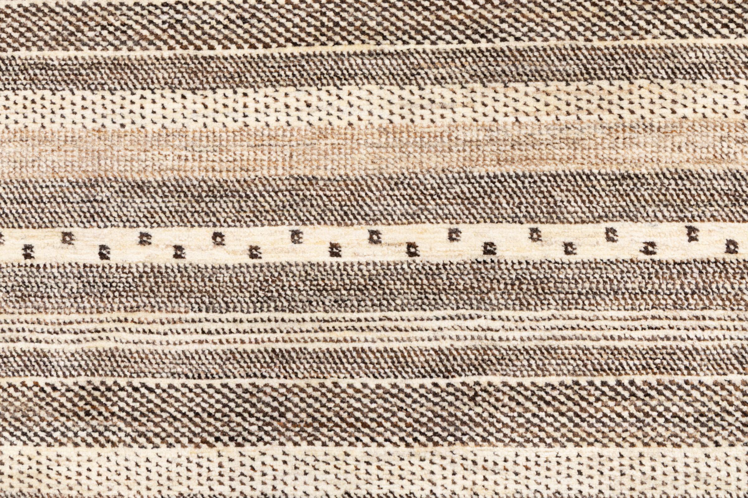 Ten piękny dywan jest perskim Gabbeh i dlatego należy do najwyższej jakości dywanów Gabbeh. Dywany są wiązane przez nomadów lub pół-nomadzi w Iranie zgodnie z tradycyjnym rzemiosłem. Proste motywy i wzory są w większości inspirowane bezpośrednim otoczeniem nomadów. Na przykład wielbłądy, drzewa lub krzewy można znaleźć na tradycyjnych dywanach. Perskie dywany Gabbeh wykonane są z wełny pochodzącej z lokalnie hodowanych stad owiec. Wełna jest więc w większości przypadków nadal obracana ręcznie. Tak więc każdy z tych orientalnych dywanów uosabia unikalny charakter wielowiekowej kultury.