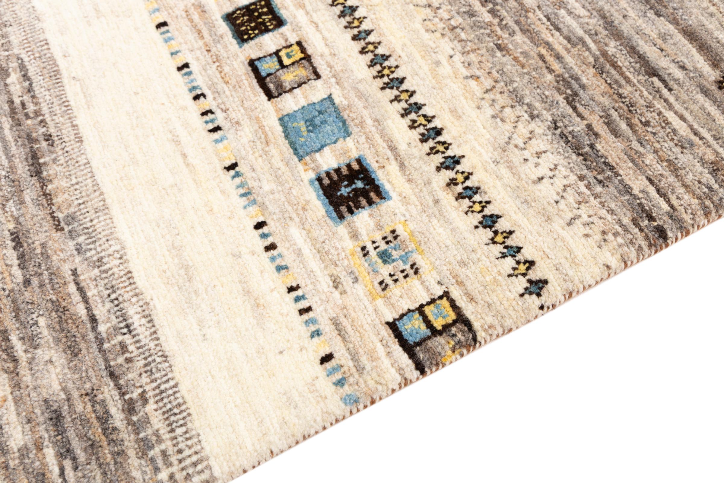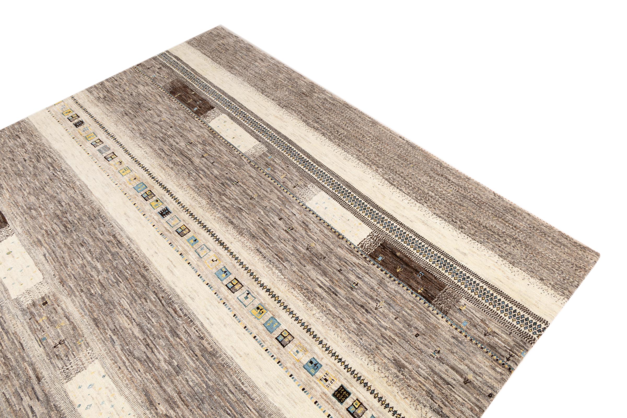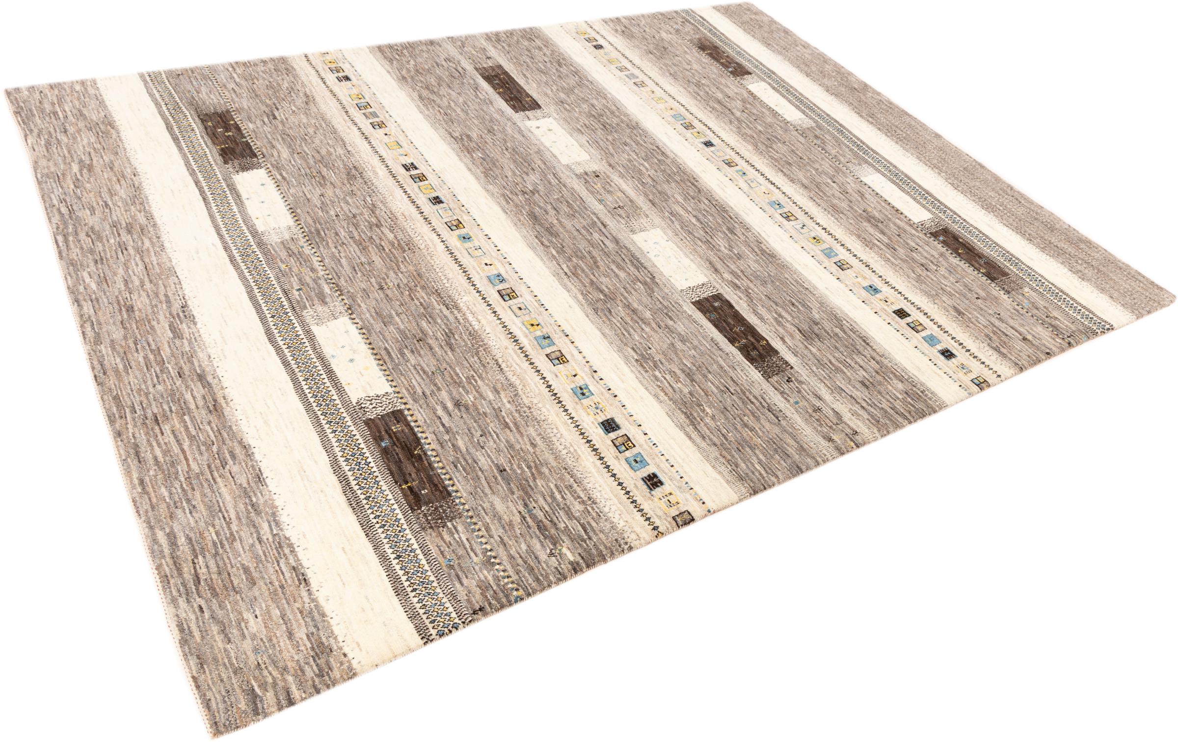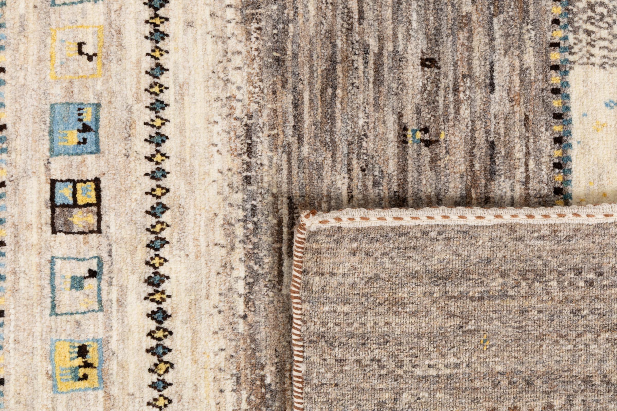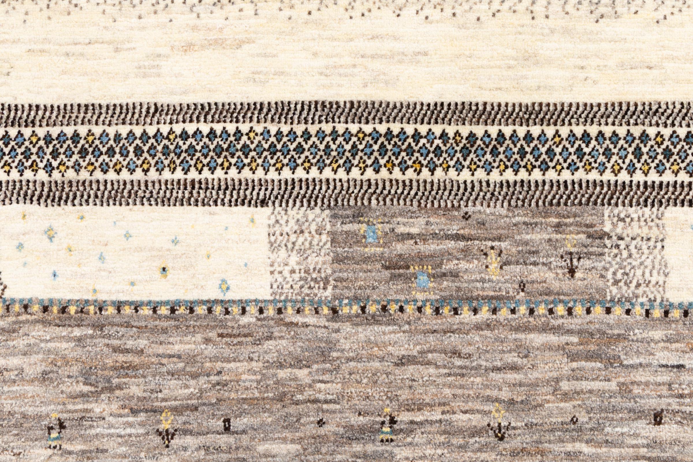 Ten piękny dywan jest perskim Gabbeh i dlatego należy do najwyższej jakości dywanów Gabbeh. Dywany są wiązane przez nomadów lub pół-nomadzi w Iranie zgodnie z tradycyjnym rzemiosłem. Proste motywy i wzory są w większości inspirowane bezpośrednim otoczeniem nomadów. Na przykład wielbłądy, drzewa lub krzewy można znaleźć na tradycyjnych dywanach. Perskie dywany Gabbeh wykonane są z wełny pochodzącej z lokalnie hodowanych stad owiec. Wełna jest więc w większości przypadków nadal obracana ręcznie. Tak więc każdy z tych orientalnych dywanów uosabia unikalny charakter wielowiekowej kultury.