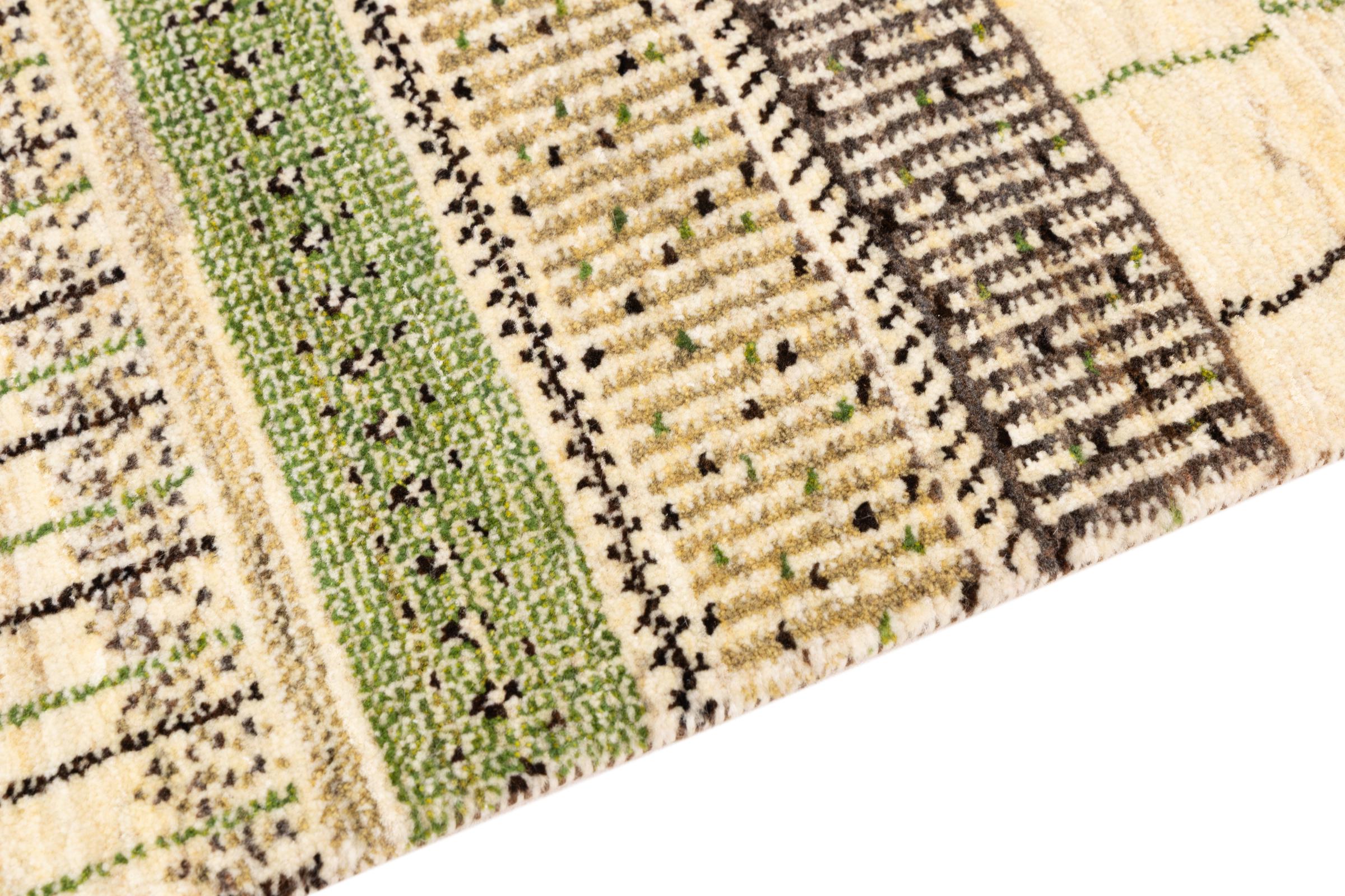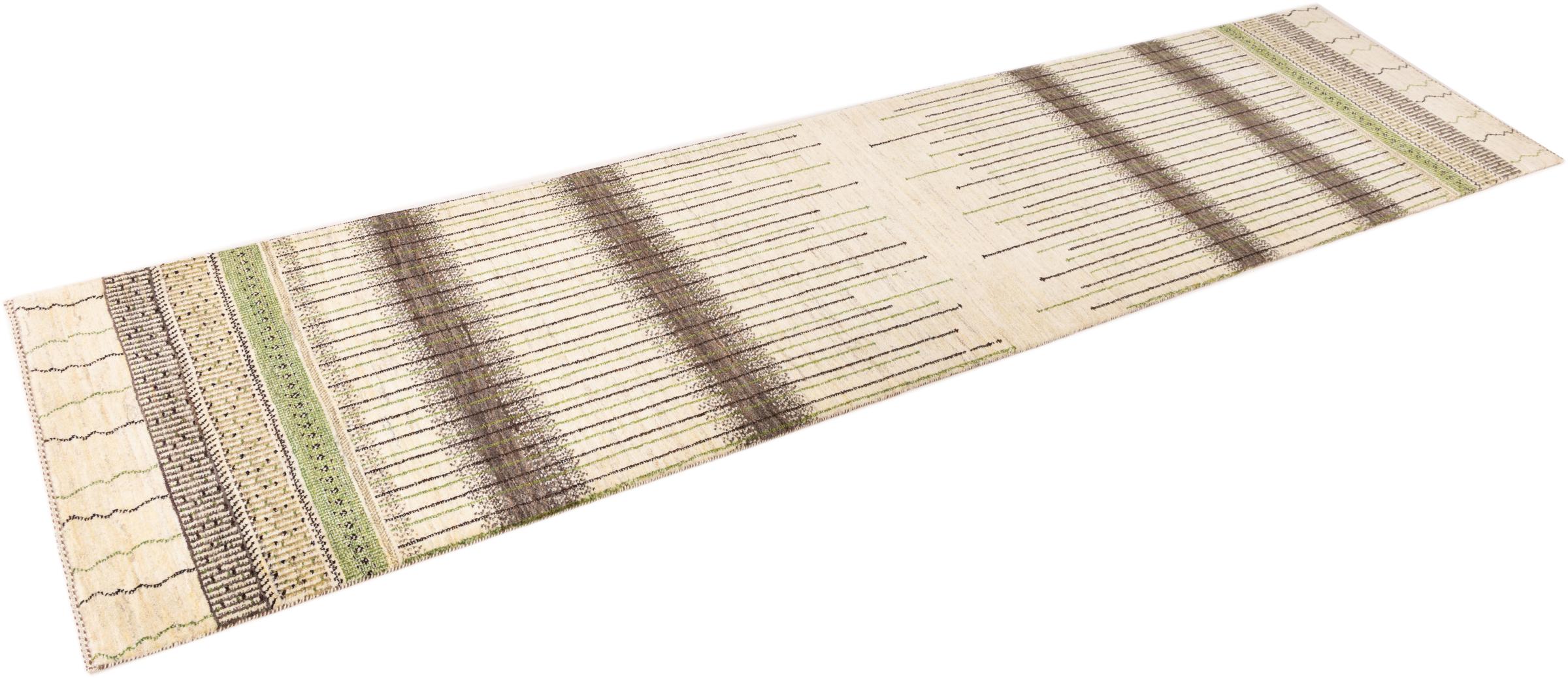 Ten piękny dywan jest perskim Gabbeh i dlatego należy do najwyższej jakości dywanów Gabbeh. Dywany są wiązane przez nomadów lub pół-nomadzi w Iranie zgodnie z tradycyjnym rzemiosłem. Proste motywy i wzory są w większości inspirowane bezpośrednim otoczeniem nomadów. Na przykład wielbłądy, drzewa lub krzewy można znaleźć na tradycyjnych dywanach. Perskie dywany Gabbeh wykonane są z wełny pochodzącej z lokalnie hodowanych stad owiec. Wełna jest więc w większości przypadków nadal obracana ręcznie. Tak więc każdy z tych orientalnych dywanów uosabia unikalny charakter wielowiekowej kultury.