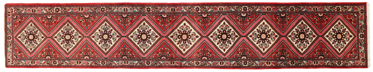 Nr.dywanu: 269220005066942 Wielkość: 409x75 cm Grubość: ok. 12 mm Gęstość tkania: 200 000 - 250 000 / m² Przetwarzanie: Ręcznie tkane Włosie: Wełna ręcznie przędzona Osnowa: Bawełna Pochodzenie: Persja / Iran Wiek: nowe Waga: ok. 11 kg Ilość w magazynie: Unikalny - Tylko 1 na składzie