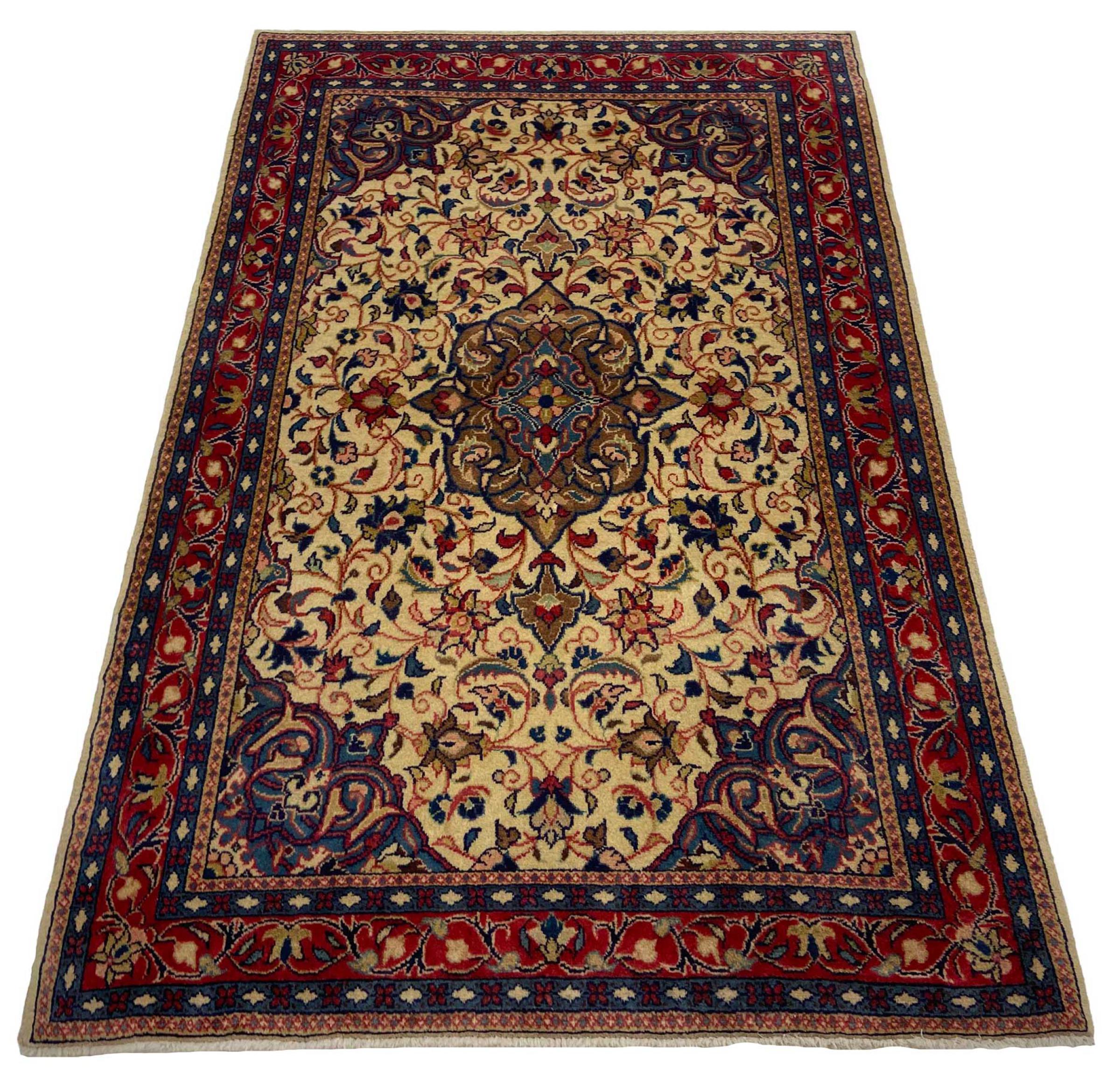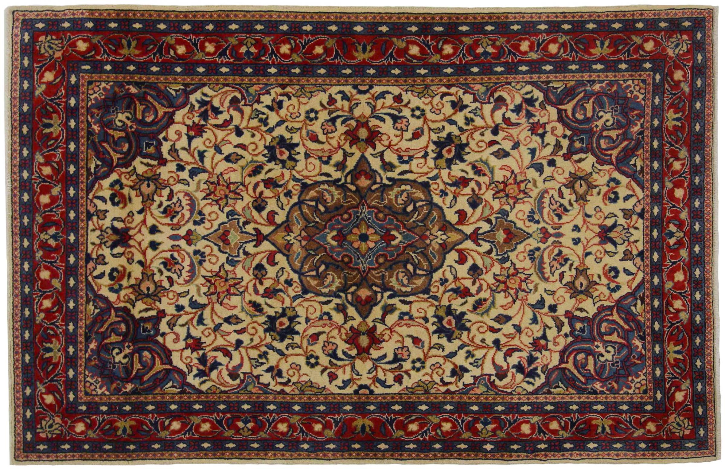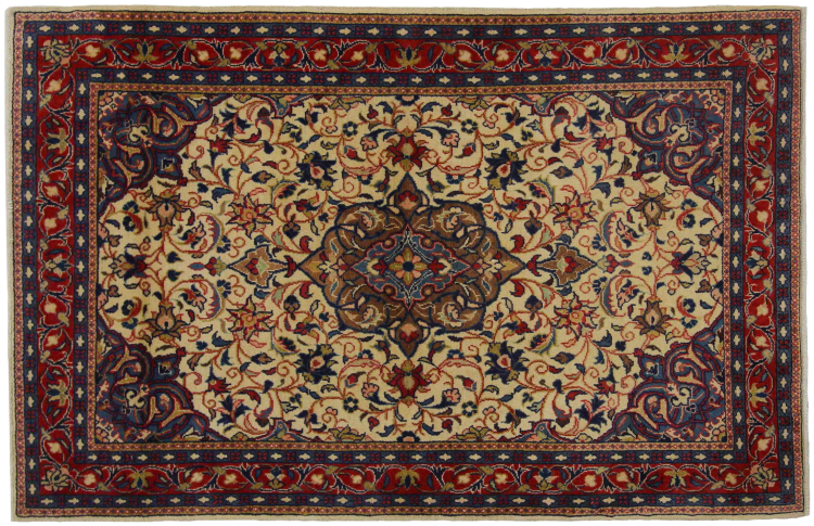 Nr.dywanu: 318329009754972 Wielkość: 171x109 cm Grubość: ok. 12 mm Gęstość tkania: 200 000 - 250 000 / m² Przetwarzanie: Ręcznie tkane Włosie: Wełna ręcznie przędzona Osnowa: Bawełna Pochodzenie: Persja / Iran Wiek: nowe Waga: ok. 7 kg Znany także jako Arak , Sarough, Sarouk, Saruk, Saroq, Sultanabad Ilość w magazynie: Unikalny - Tylko 1 na składzie