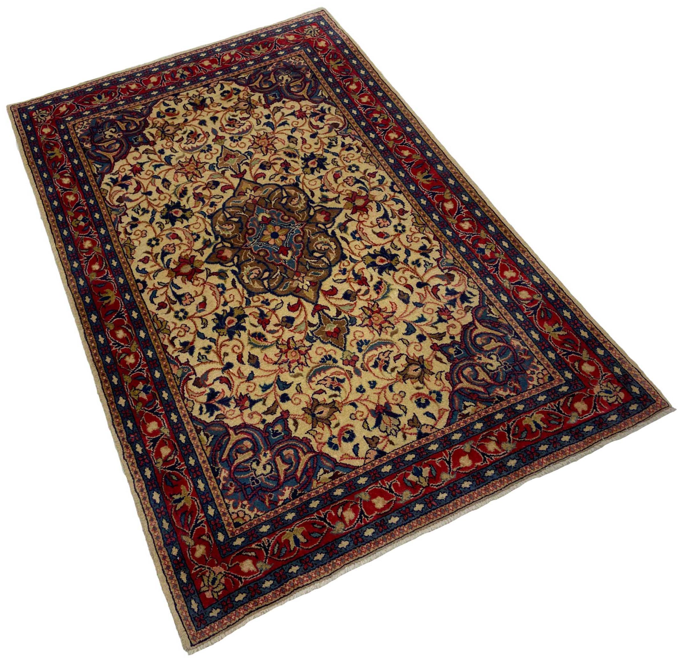 Dywan ten wykonany jest z ręcznie formowanej wełny owczej najwyższej jakości. Zwłaszcza w Iranie (była Persja), Afganistanie i Pakistanie wełna jest nadal ręcznie skręcana, zanim rozpocznie się faktyczne wiązanie dywanu. Wełna sprawdziła się jako naturalny i niezwykle wytrzymały materiał na przestrzeni wieków. Ma m.in. właściwości antybrudzące i termoizolacyjne. Jednocześnie wełna jest nieporównywalnie miękka i ma naturalny połysk.