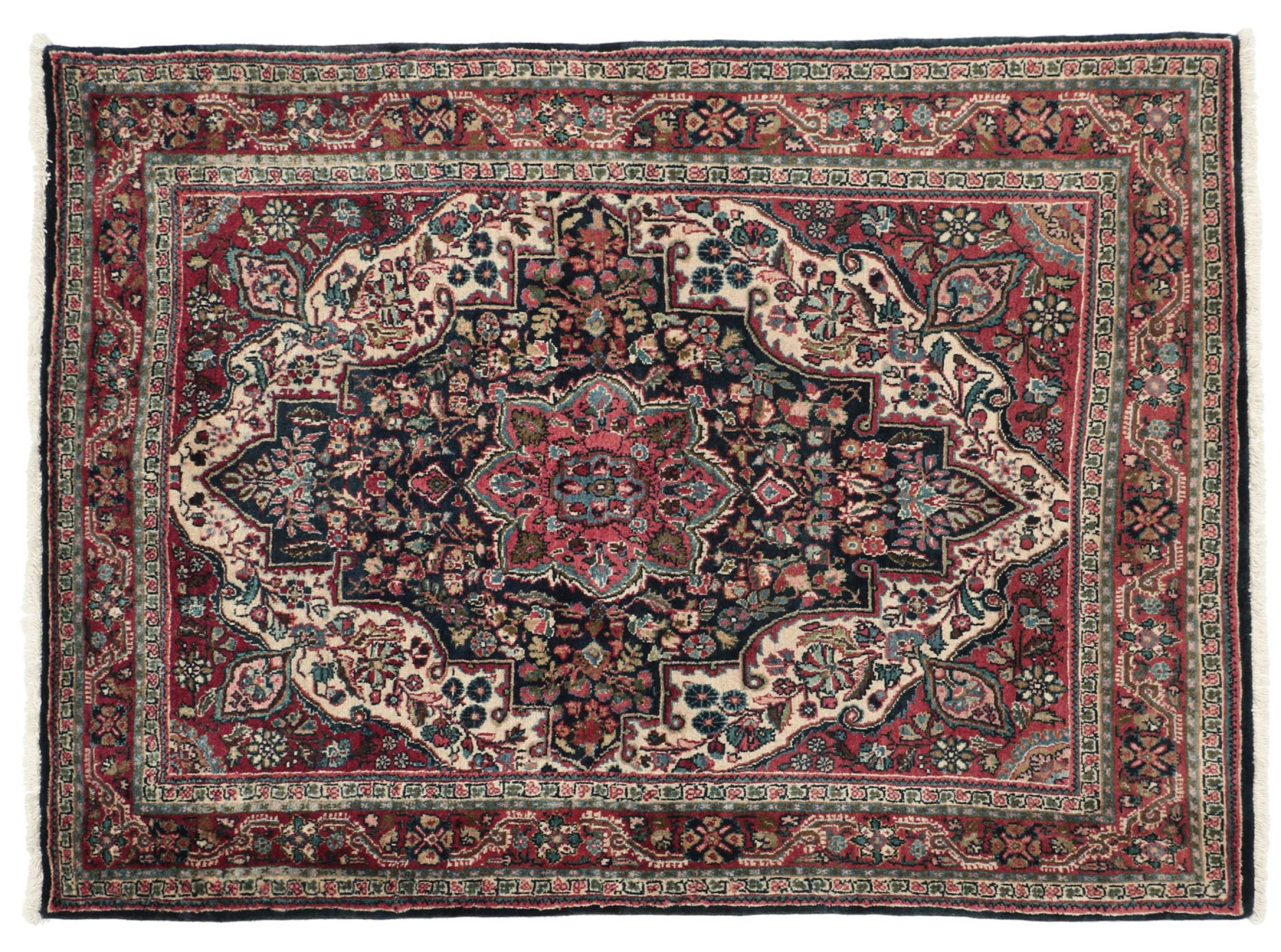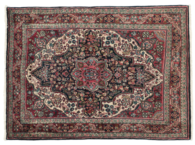 Nr.dywanu: 309142007023776 Wielkość: 144x103 cm Grubość: ok. 10 mm Gęstość tkania: 200 000 - 250 000 / m² Przetwarzanie: Ręcznie tkane Włosie: Wełna ręcznie przędzona Osnowa: Bawełna Pochodzenie: Persja / Iran Wiek: stare/antyczne, starsze niż 50 lat Waga: ok. 5 kg Ilość w magazynie: Unikalny - Tylko 1 na składzie