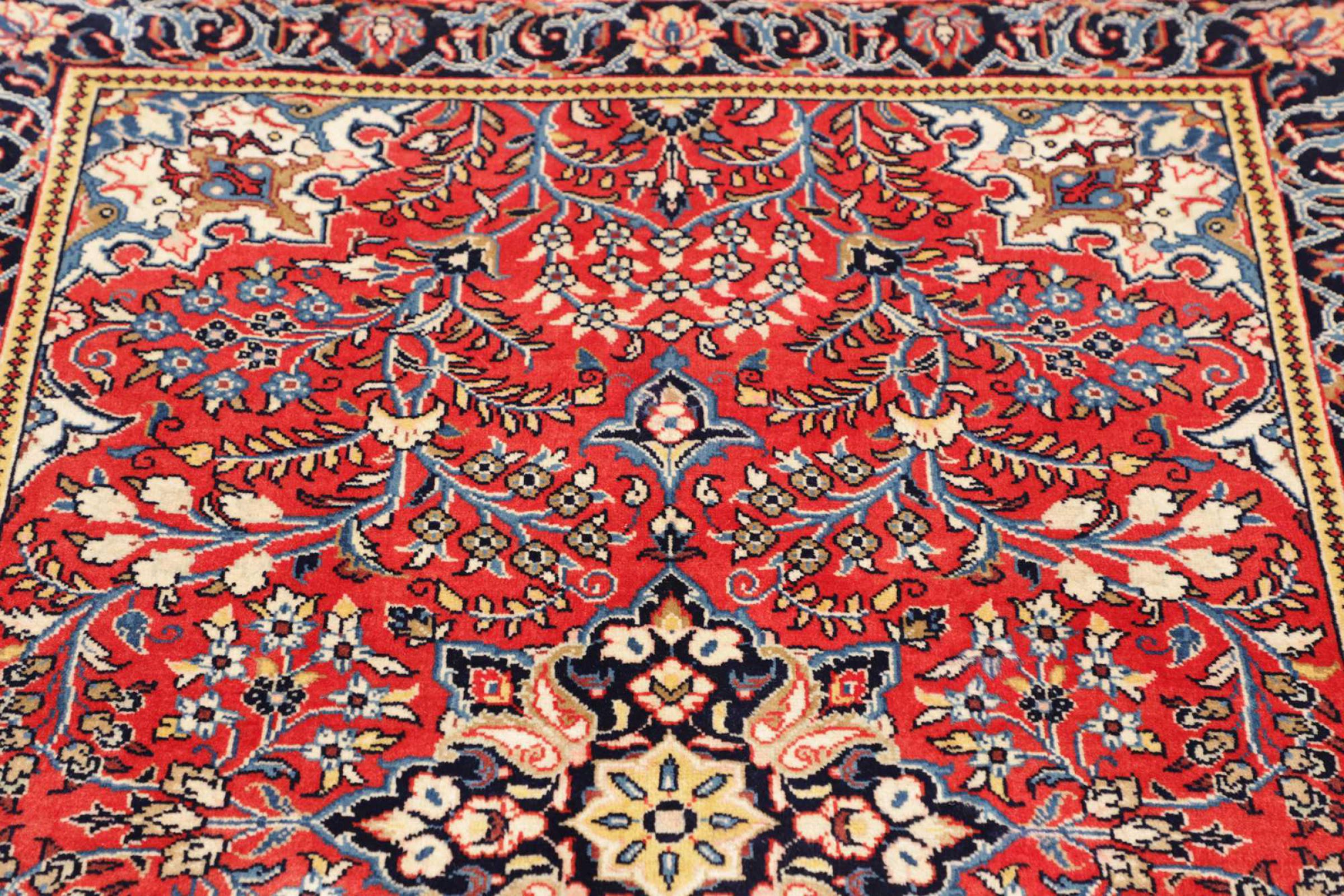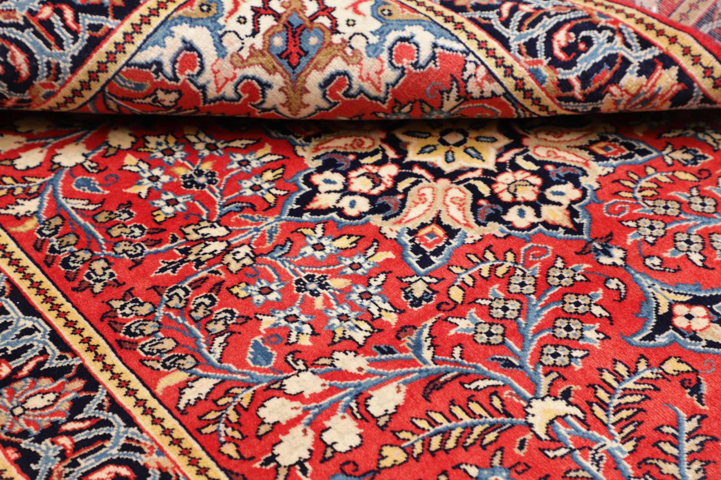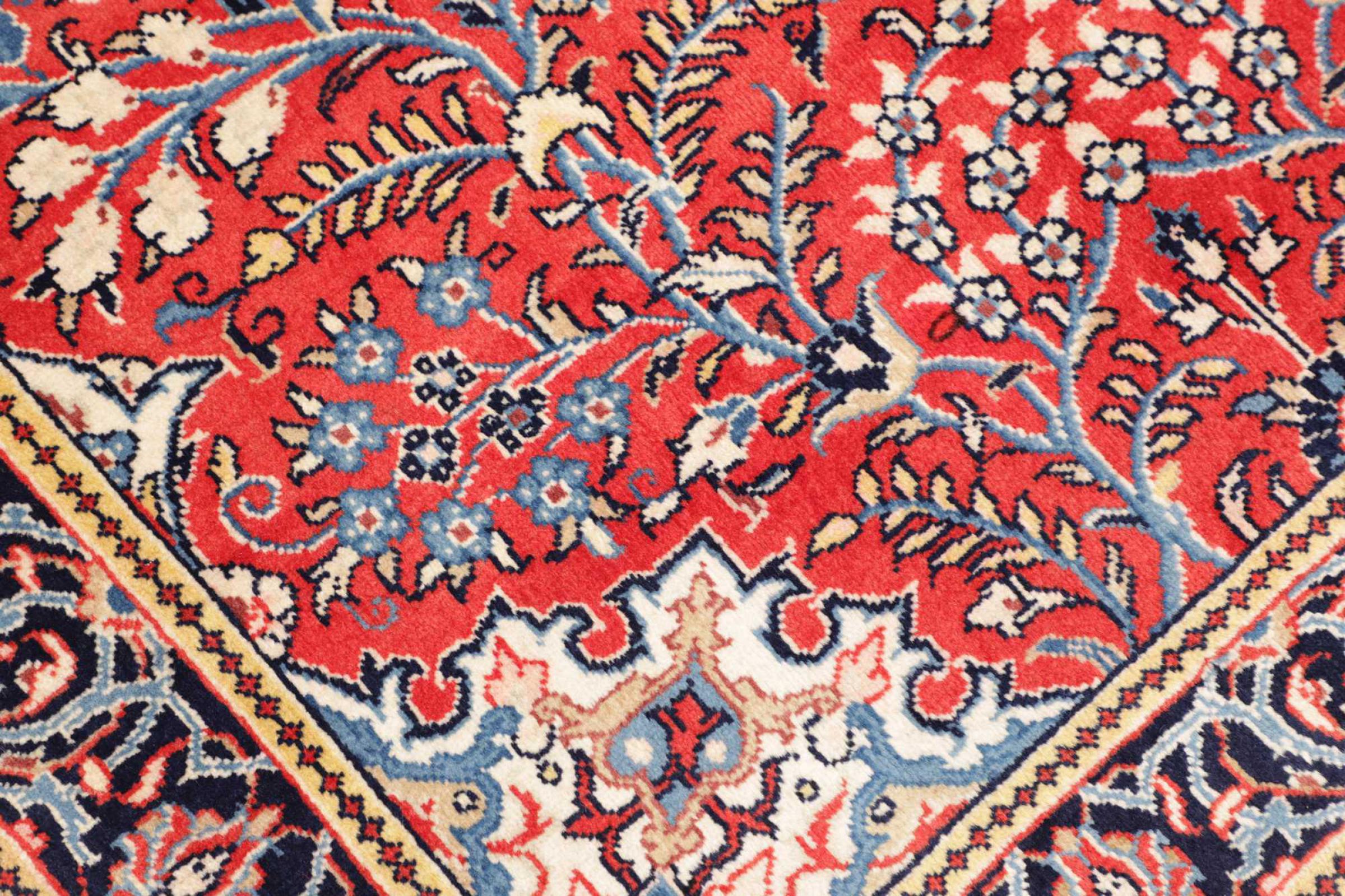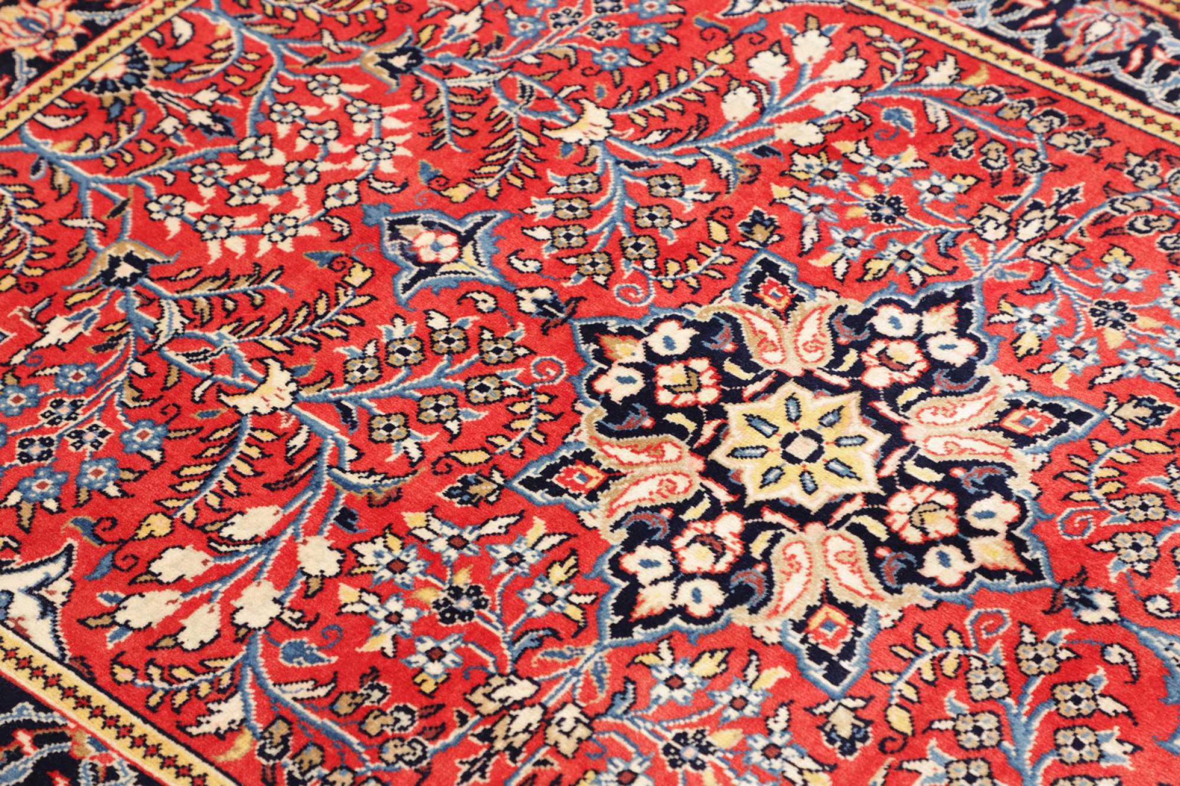 Dywan ten wykonany jest z ręcznie formowanej wełny owczej najwyższej jakości. Zwłaszcza w Iranie (była Persja), Afganistanie i Pakistanie wełna jest nadal ręcznie skręcana, zanim rozpocznie się faktyczne wiązanie dywanu. Wełna sprawdziła się jako naturalny i niezwykle wytrzymały materiał na przestrzeni wieków. Ma m.in. właściwości antybrudzące i termoizolacyjne. Jednocześnie wełna jest nieporównywalnie miękka i ma naturalny połysk.