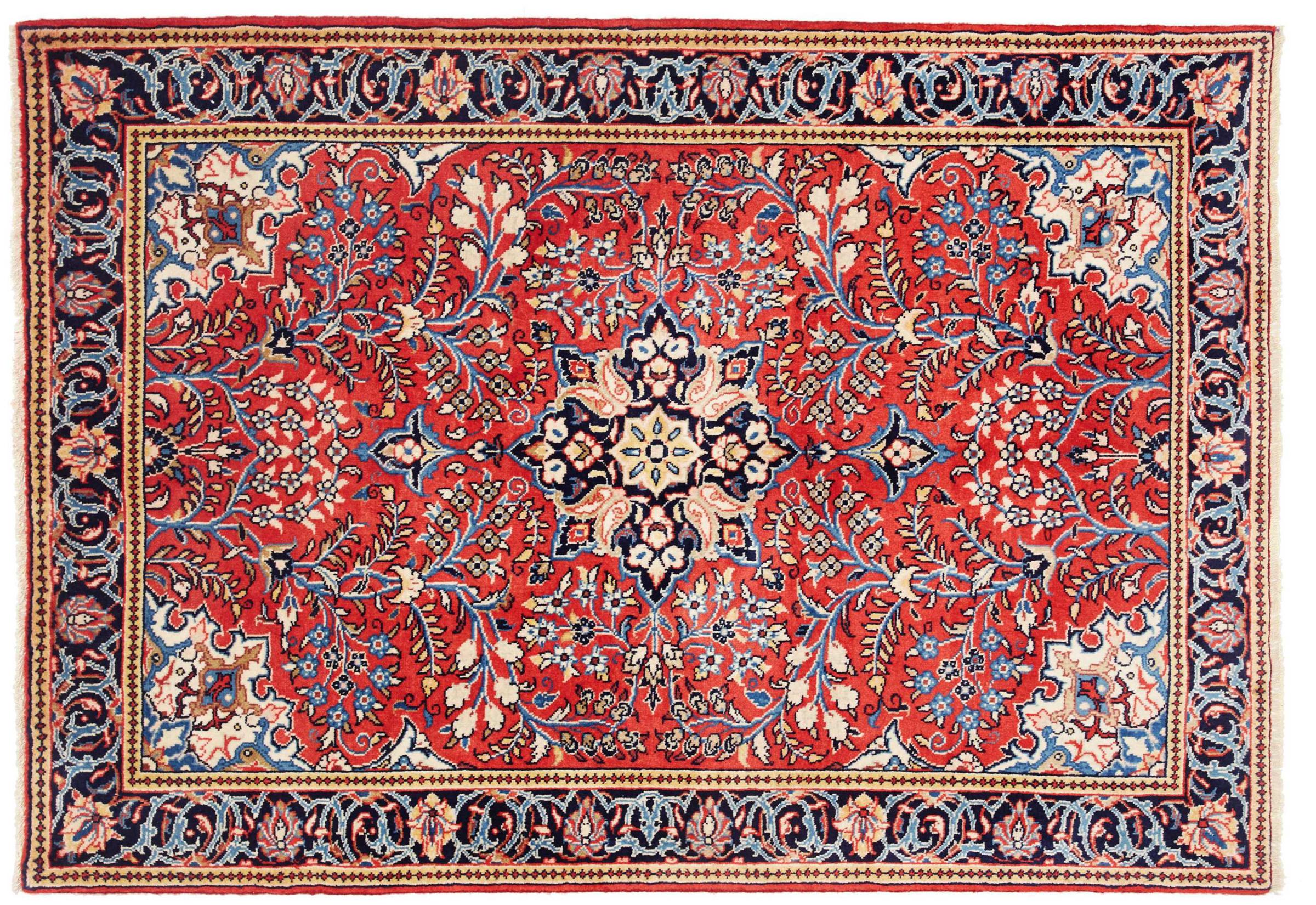 Nr.dywanu: 306370002369239 Wielkość: 151x108 cm Grubość: ok. 12 mm Gęstość tkania: 128 000 - 160 000 / m² Przetwarzanie: Ręcznie tkane Włosie: Wełna ręcznie przędzona Osnowa: Bawełna Pochodzenie: Persja / Iran Wiek: nowe Waga: ok. 6 kg Znany także jako Arak , Sarough, Sarouk, Saruk, Saroq, Sultanabad Ilość w magazynie: Unikalny - Tylko 1 na składzie