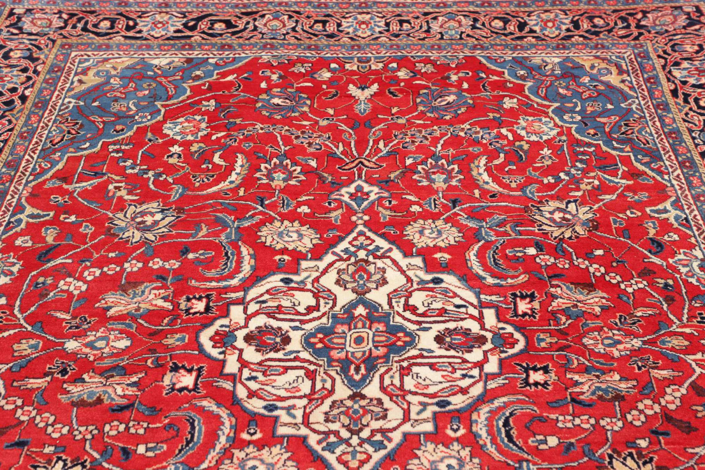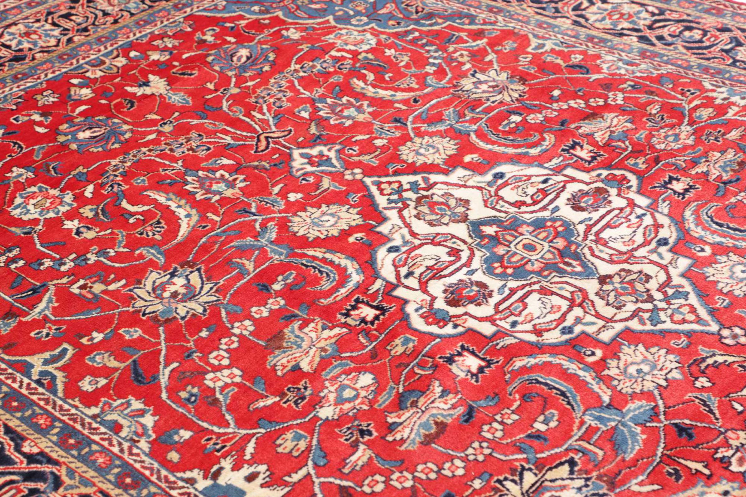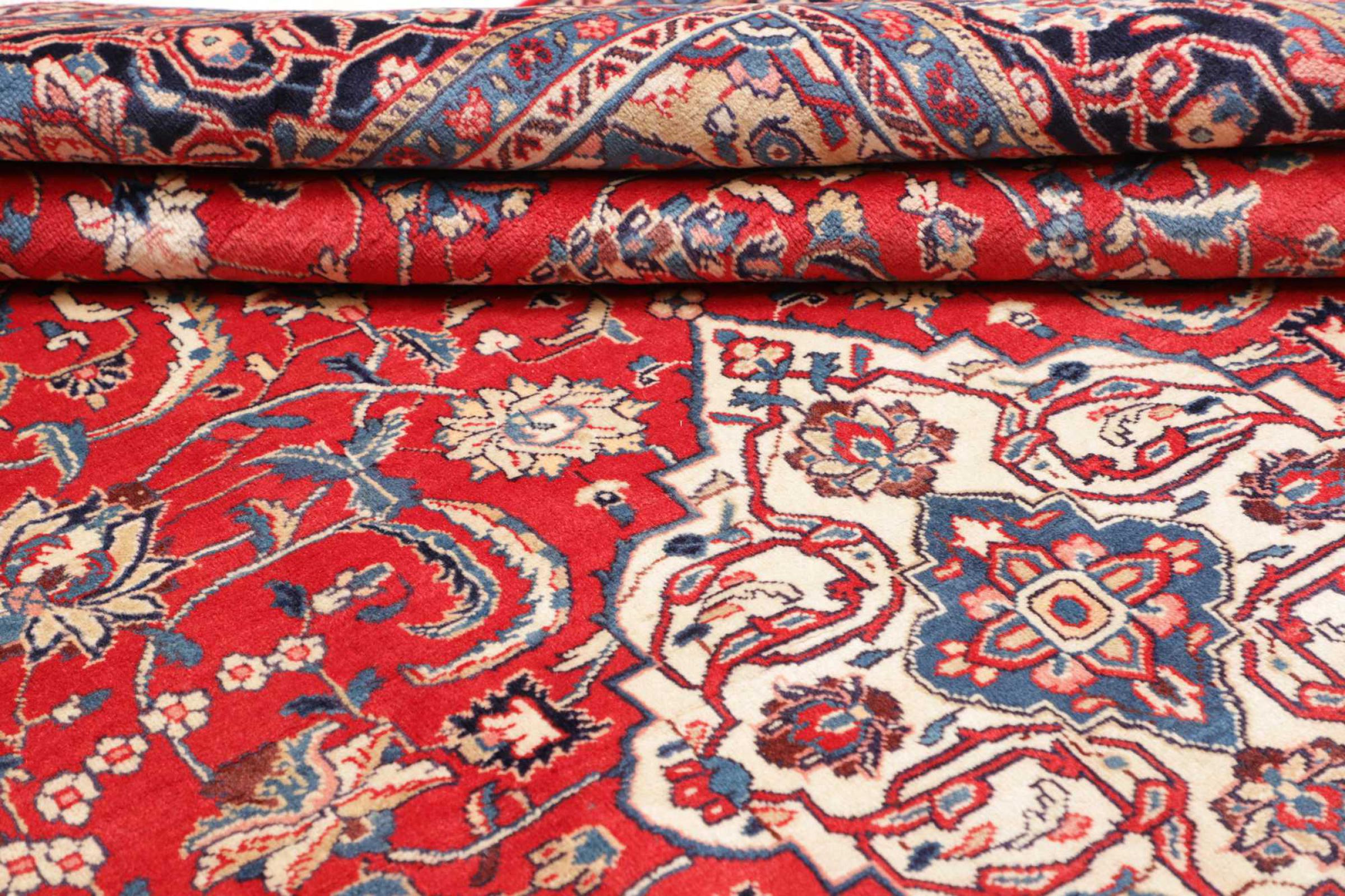 Dywan ten wykonany jest z ręcznie formowanej wełny owczej najwyższej jakości. Zwłaszcza w Iranie (była Persja), Afganistanie i Pakistanie wełna jest nadal ręcznie skręcana, zanim rozpocznie się faktyczne wiązanie dywanu. Wełna sprawdziła się jako naturalny i niezwykle wytrzymały materiał na przestrzeni wieków. Ma m.in. właściwości antybrudzące i termoizolacyjne. Jednocześnie wełna jest nieporównywalnie miękka i ma naturalny połysk.