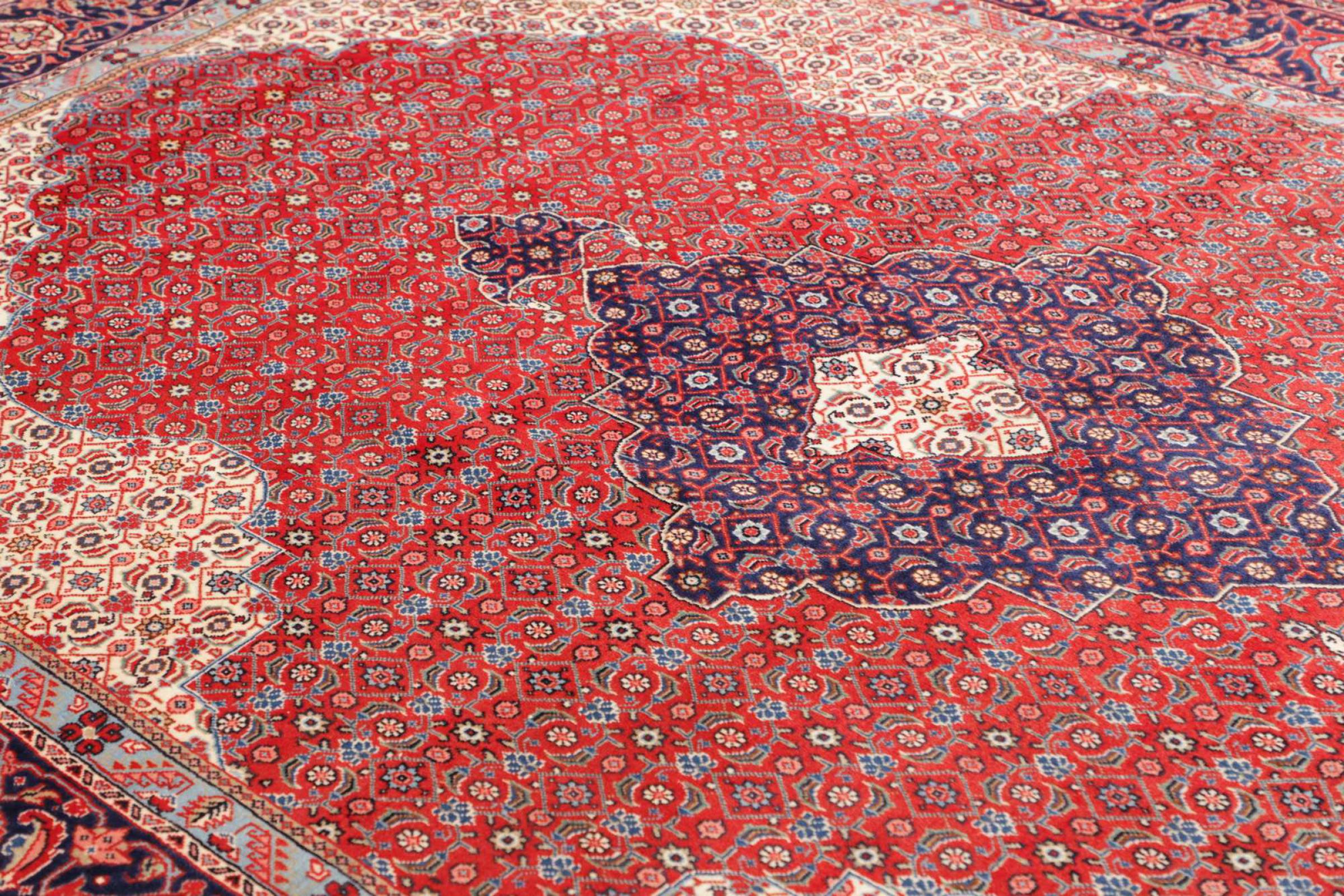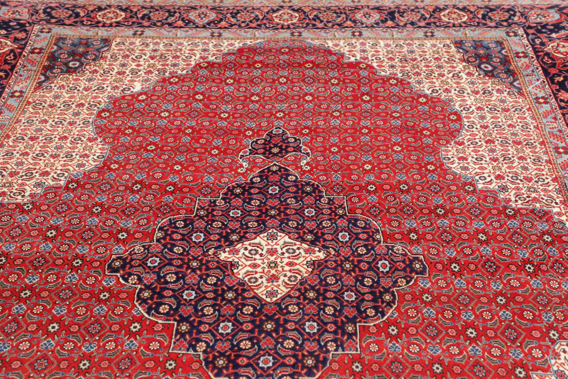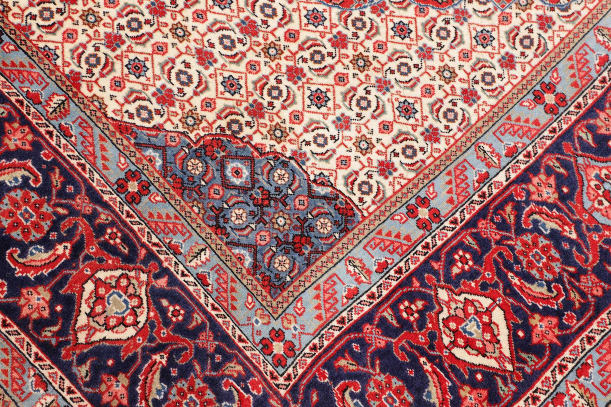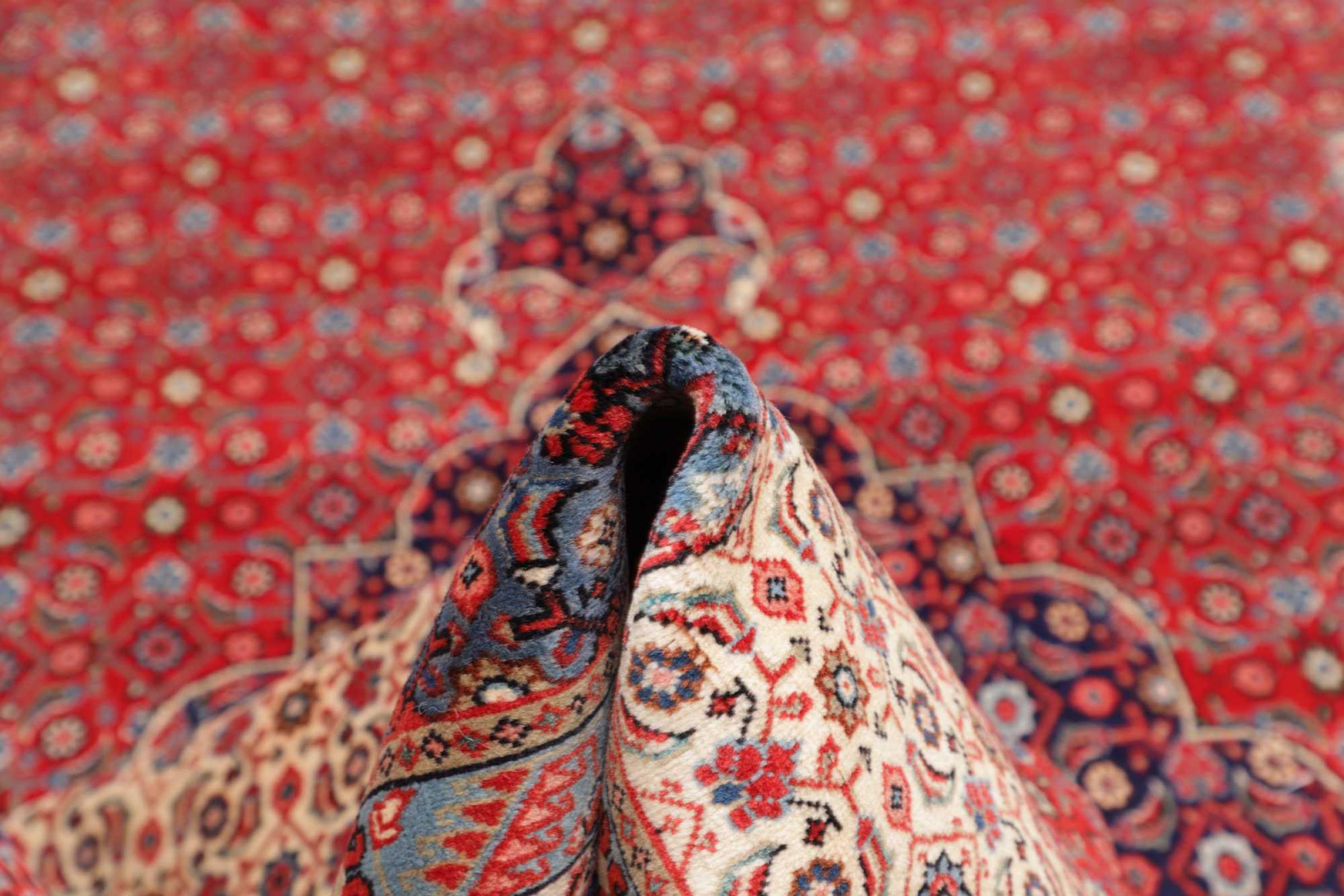 Dywan ten wykonany jest z ręcznie formowanej wełny owczej najwyższej jakości. Zwłaszcza w Iranie (była Persja), Afganistanie i Pakistanie wełna jest nadal ręcznie skręcana, zanim rozpocznie się faktyczne wiązanie dywanu. Wełna sprawdziła się jako naturalny i niezwykle wytrzymały materiał na przestrzeni wieków. Ma m.in. właściwości antybrudzące i termoizolacyjne. Jednocześnie wełna jest nieporównywalnie miękka i ma naturalny połysk.